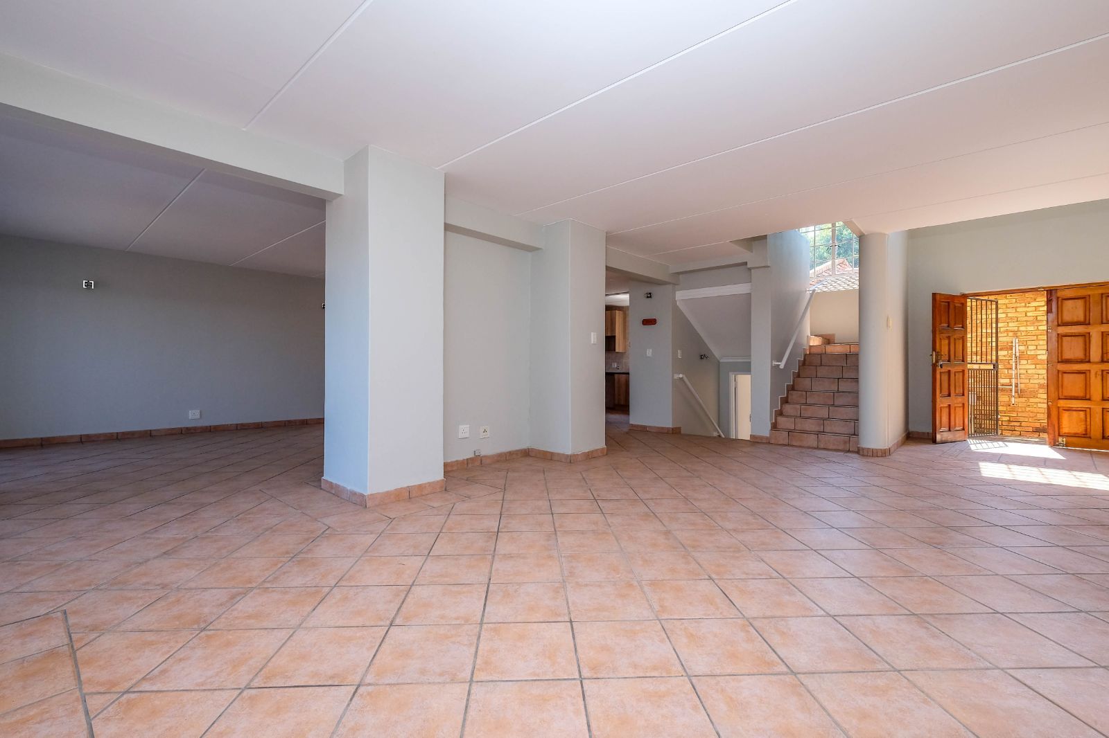 Grand Entrance: Double wooden doors welcome you into a spacious entrance hall, setting a tone of elegance.