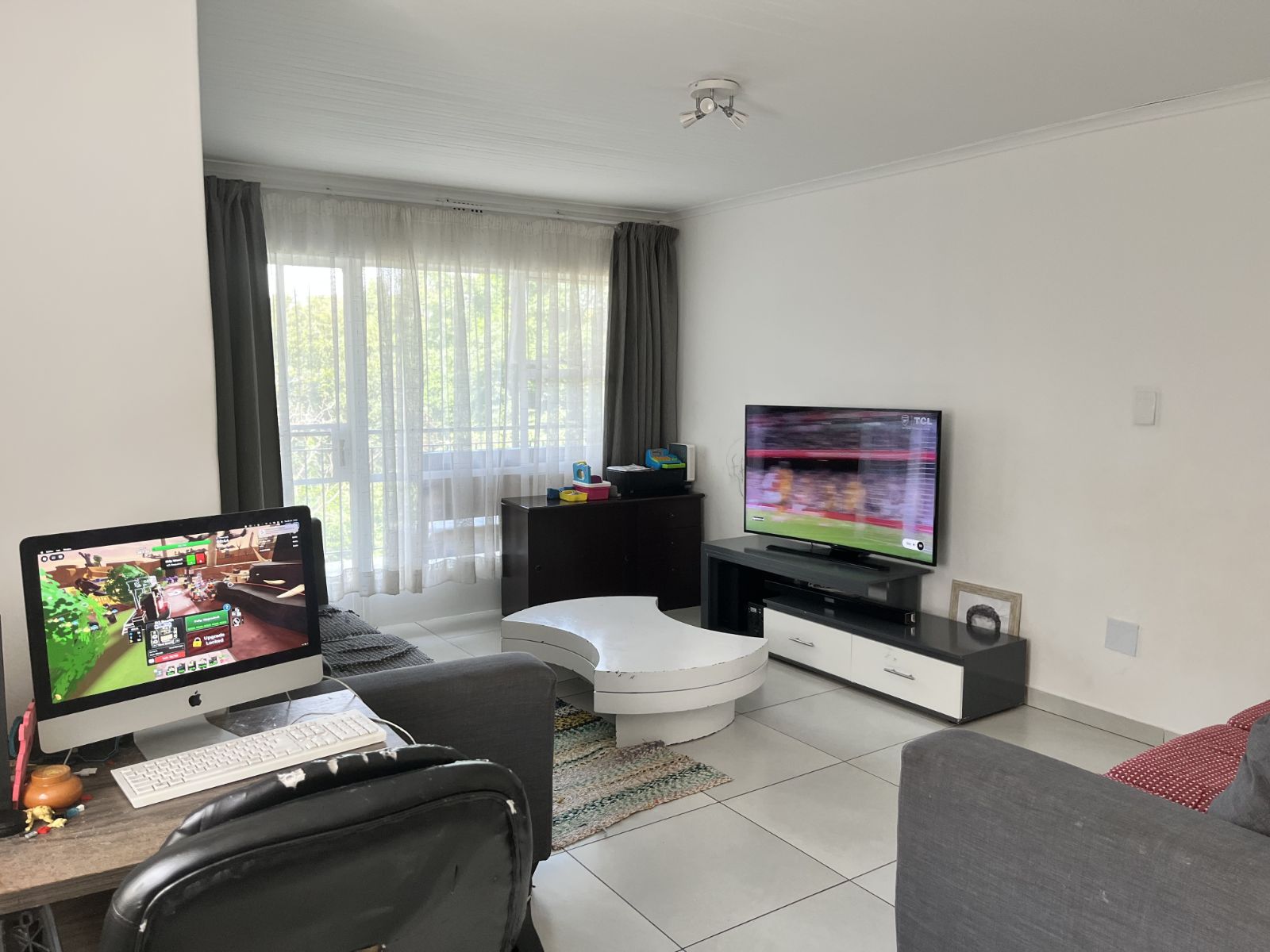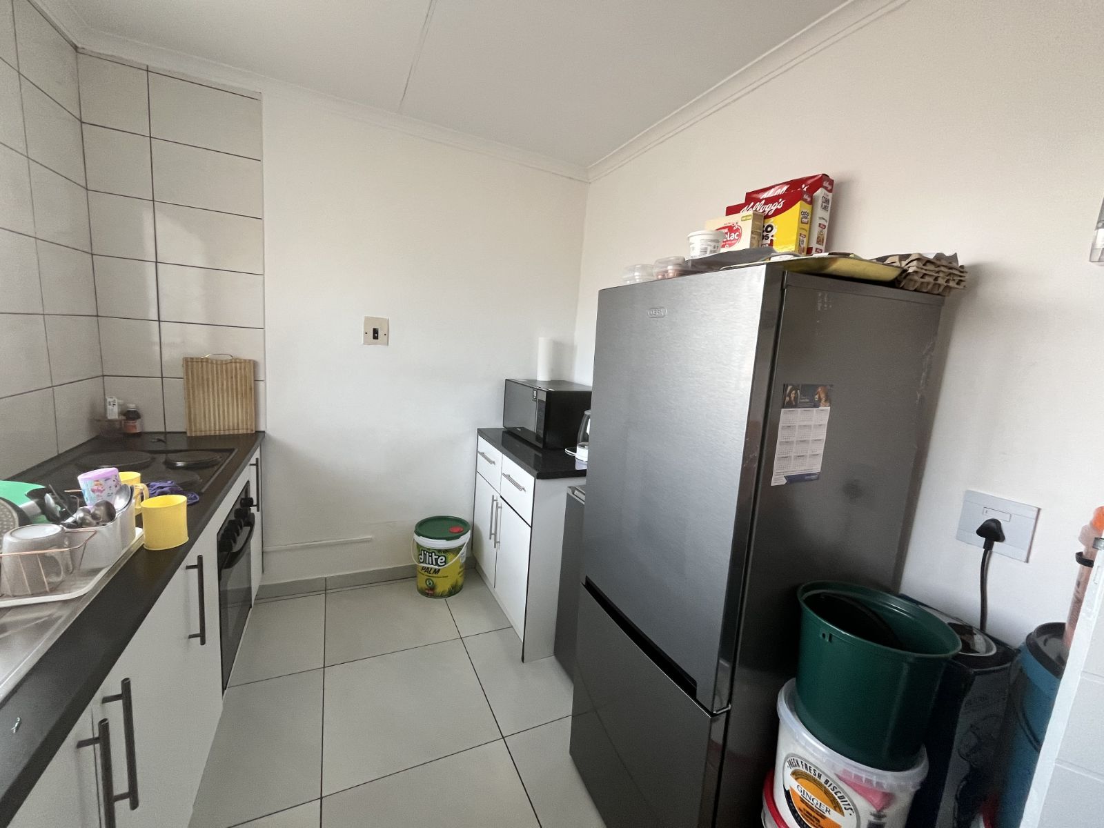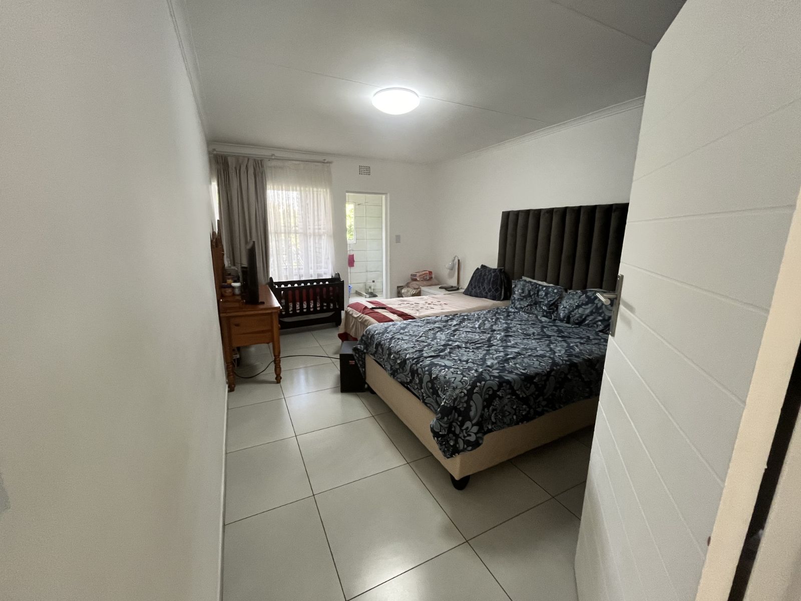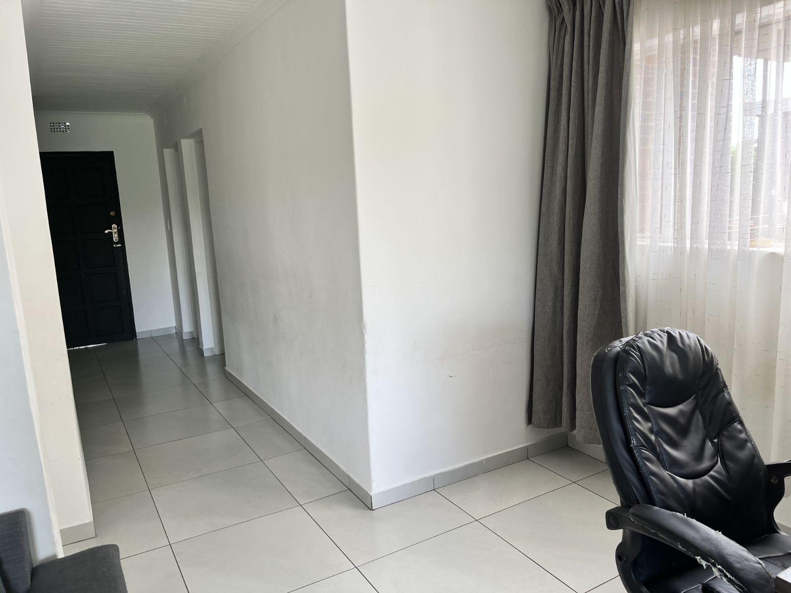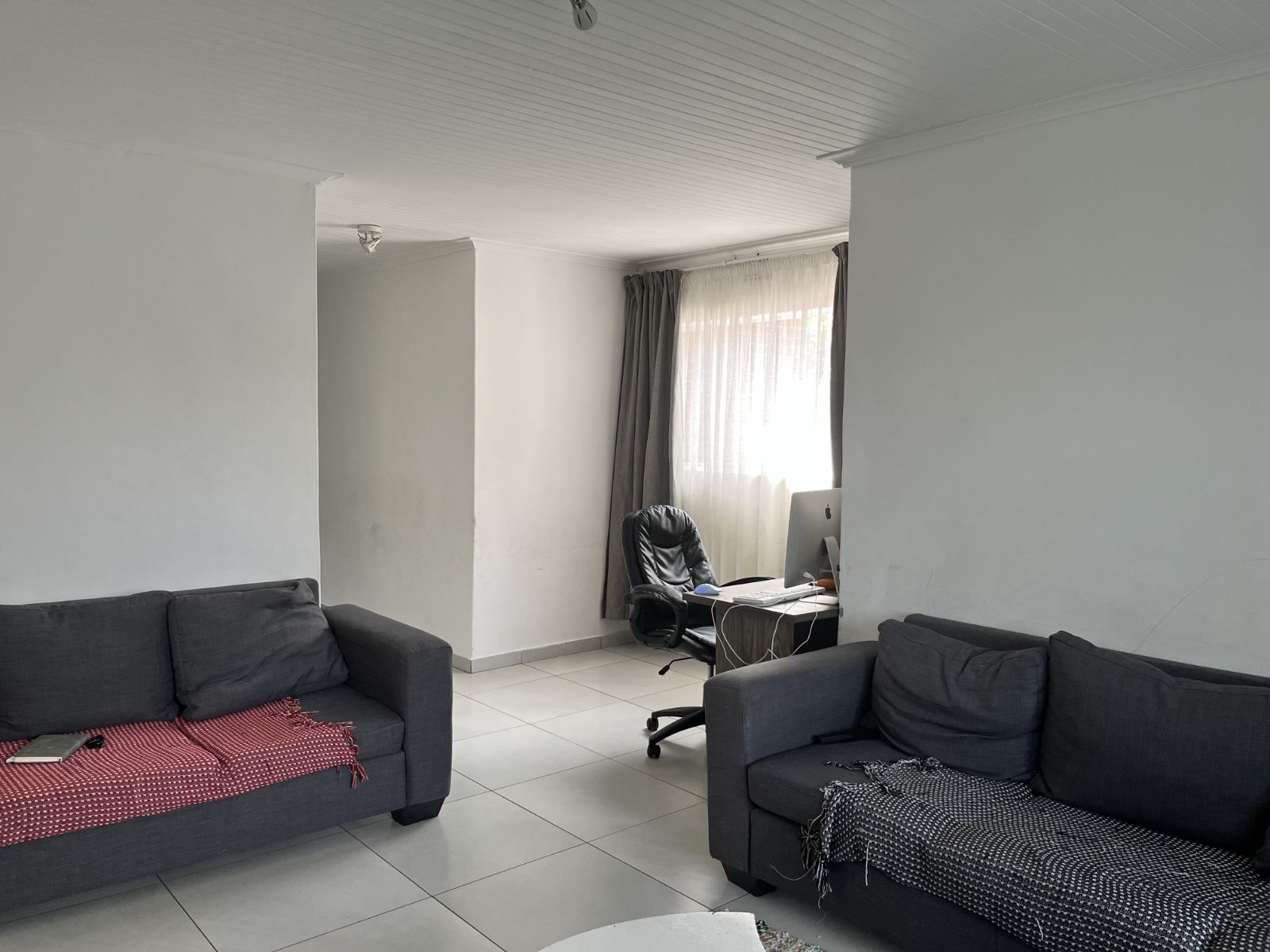 The open-plan lounge and dining area is bright and welcoming, flowing seamlessly onto a well-maintained kitchen with ample cupboard space. Large windows allow for plenty of natural light, creating a warm and airy atmosphere throughout the home.