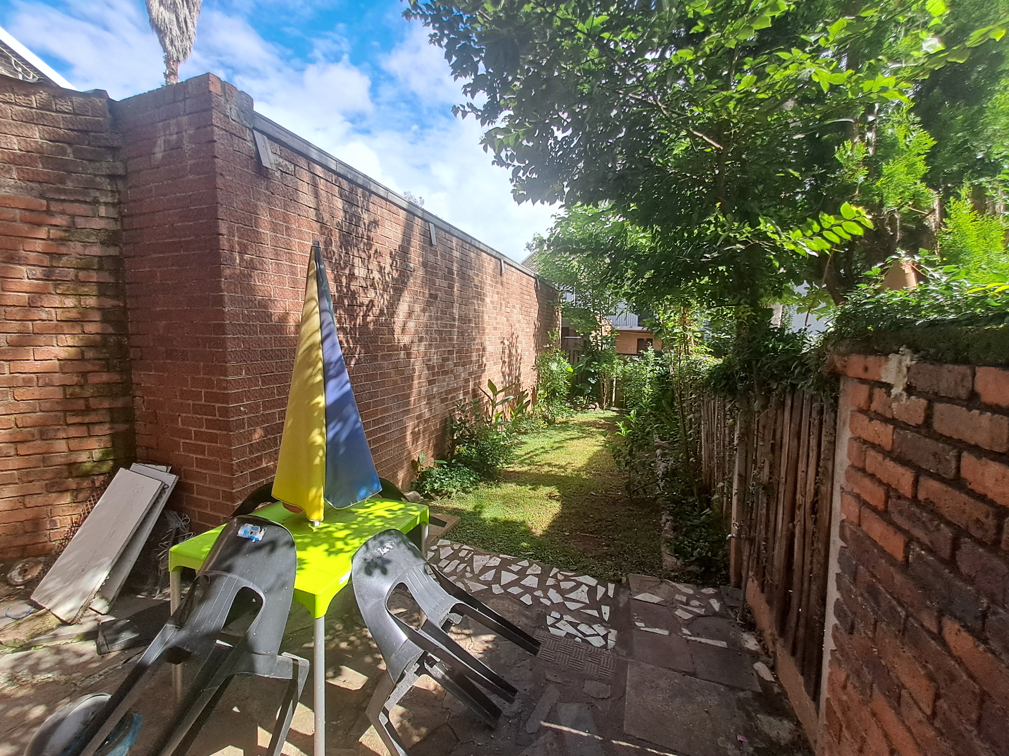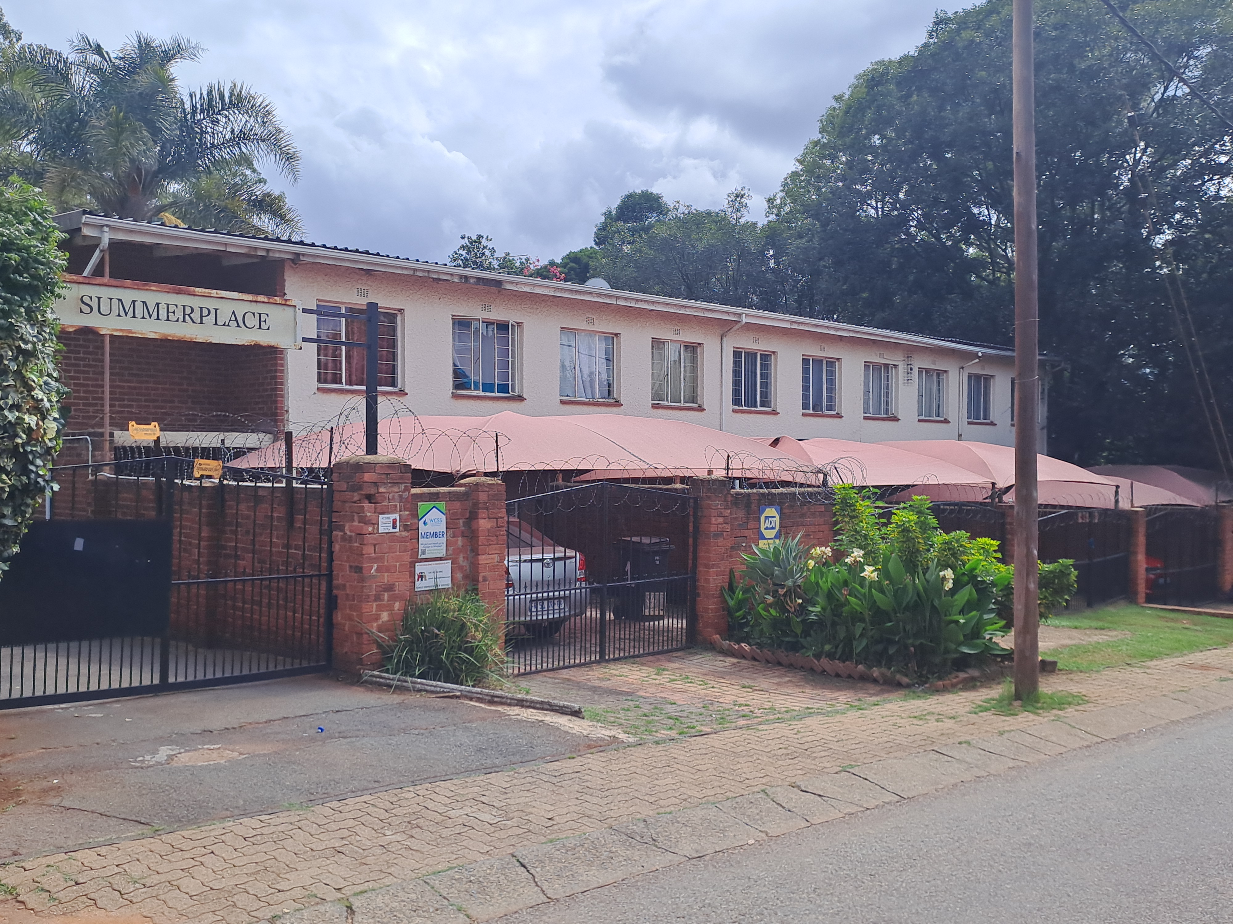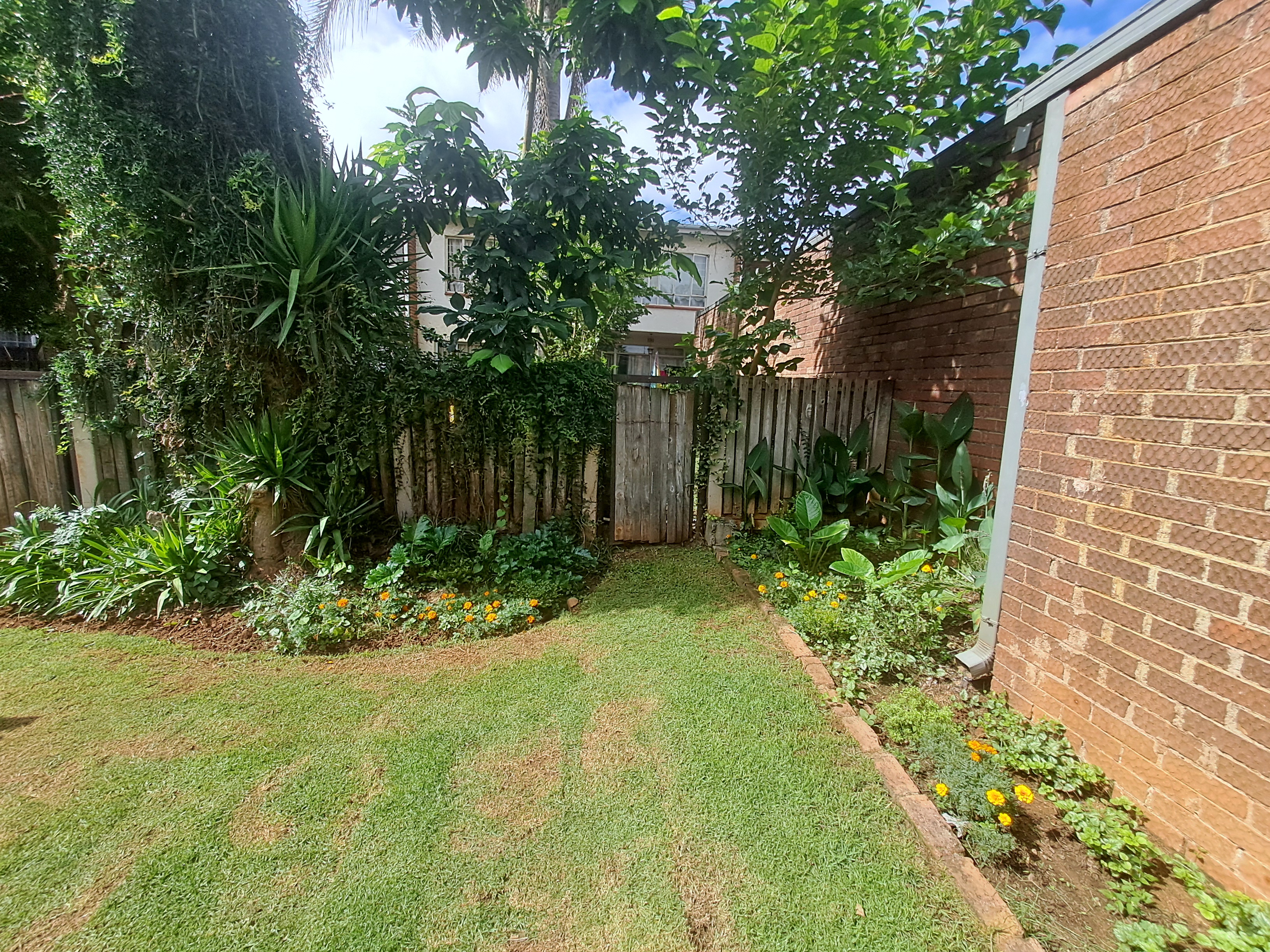 The bedrooms are upstairs while the lounge leads out to the garden and access to the communal swimming pool. Double gated parking at the front with space for visitors.