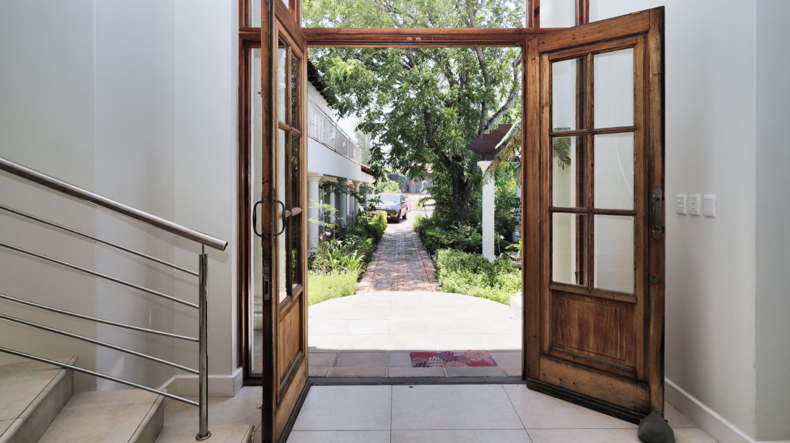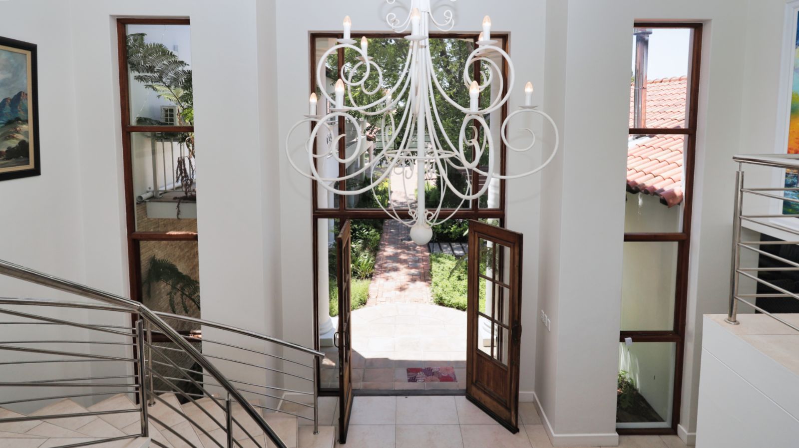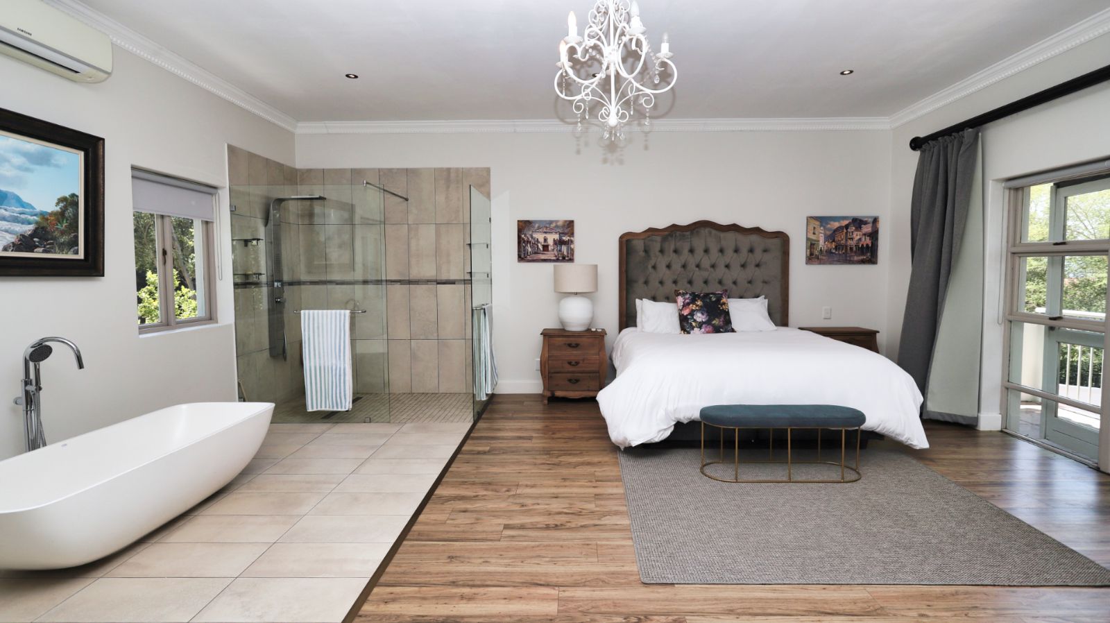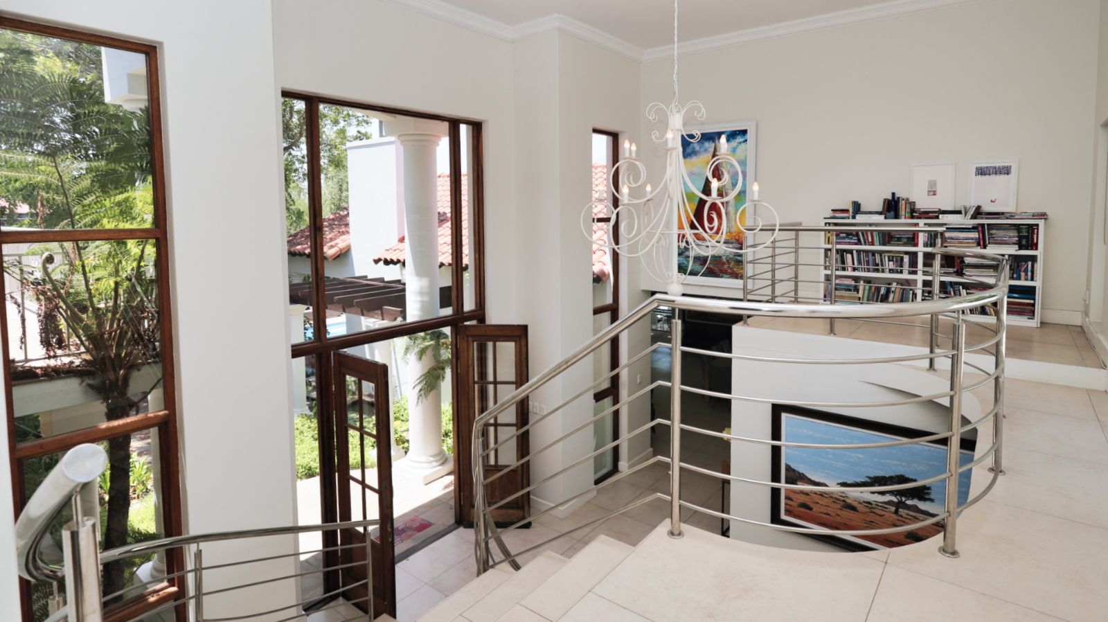 Outdoor living is a standout feature of this home. Two swimming pools, generous entertainment areas, and an upstairs balcony overlooking the garden offer a variety of spaces to enjoy the surroundings and make the most of the Winelands lifestyle.