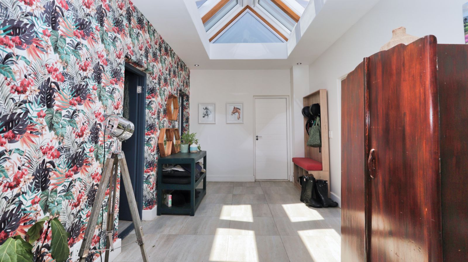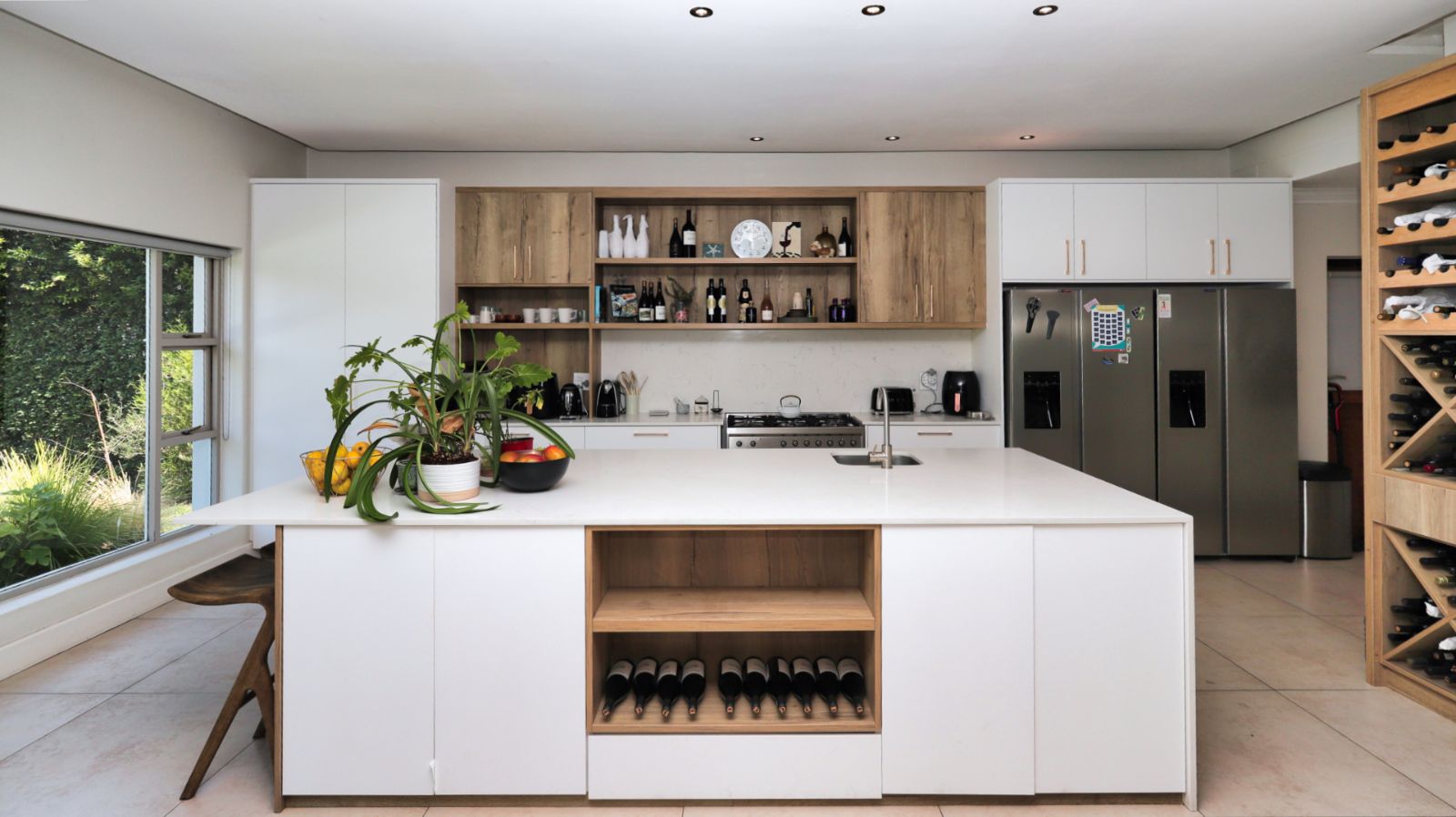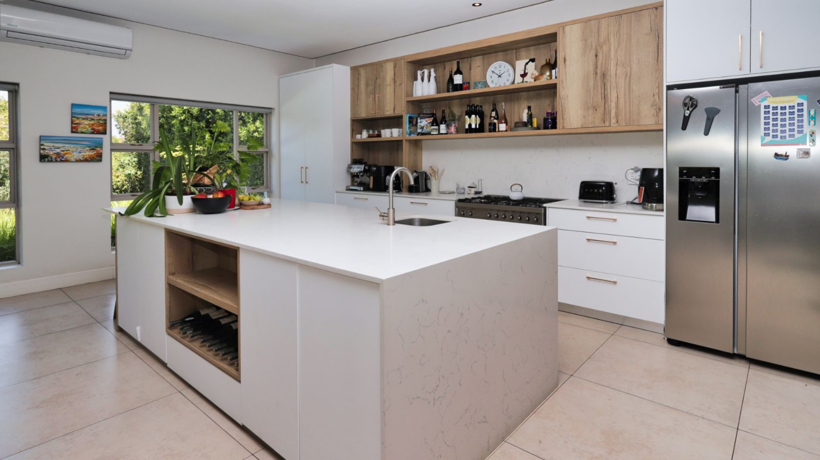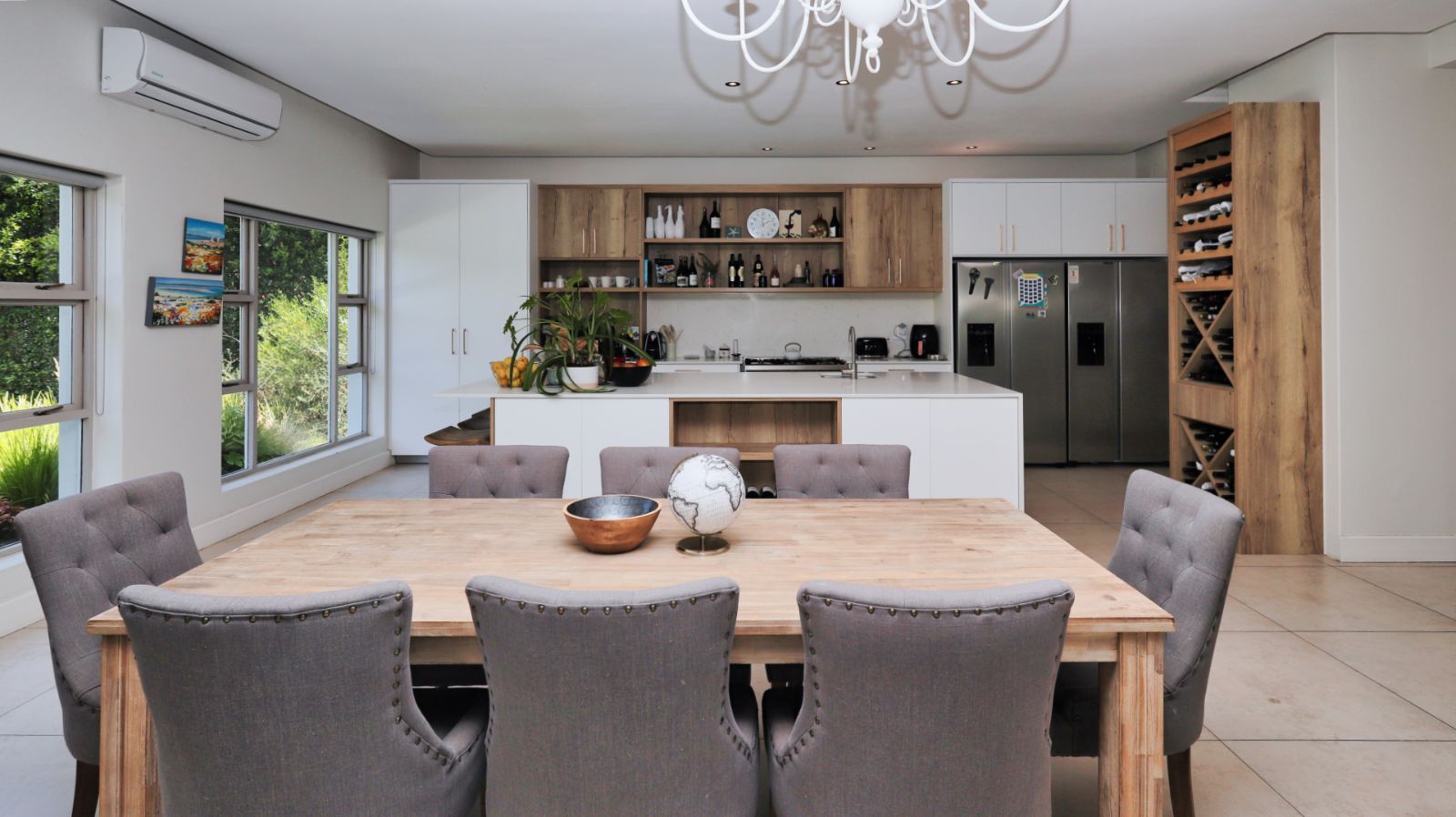 The main residence is thoughtfully designed for both family life and entertaining, offering generous proportions throughout. Light-filled living areas flow easily from one space to the next, creating a relaxed and welcoming atmosphere. The kitchen sits at the heart of the home, offering ample cupboard space and functionality, with a separate scullery and laundry.
