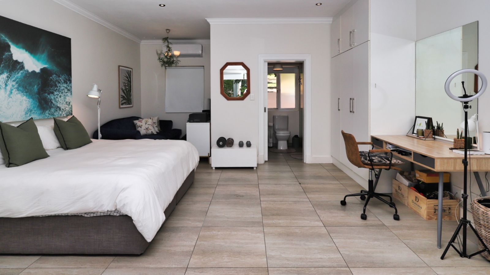 In addition to the main residence, the property includes two separately accessed, self-contained living units. One apartment offers two bedrooms with en-suite bathrooms, a kitchen, and a spacious living area, making it ideal for extended family or guests. The second unit is a separate open-plan studio with a kitchenette, well suited for independent living or to generate additional rental income.