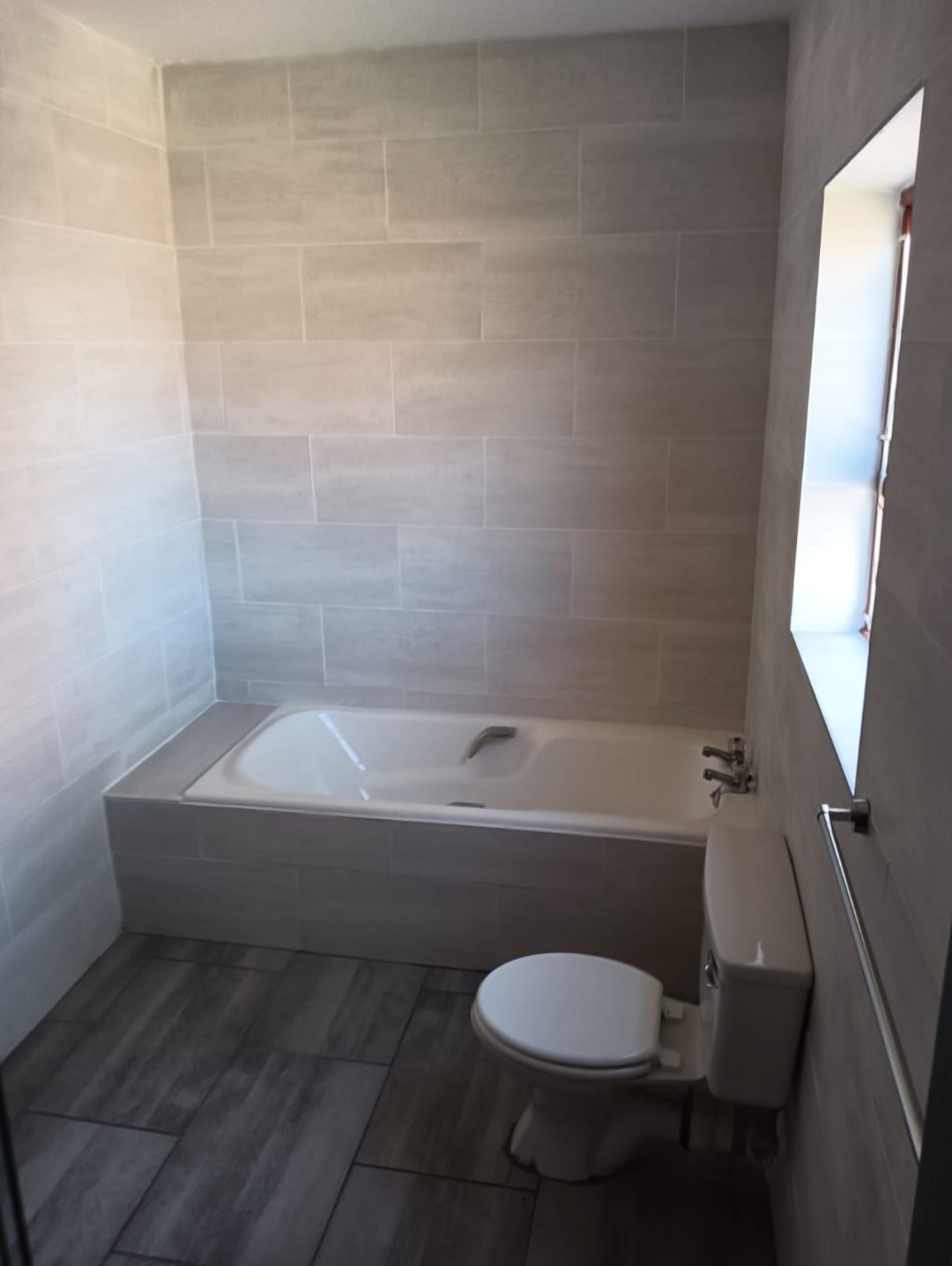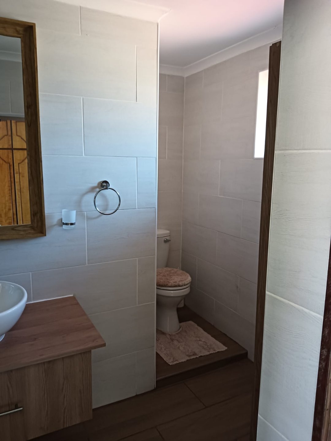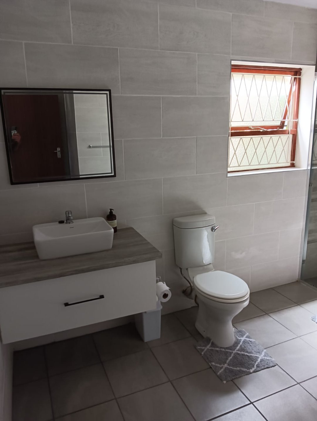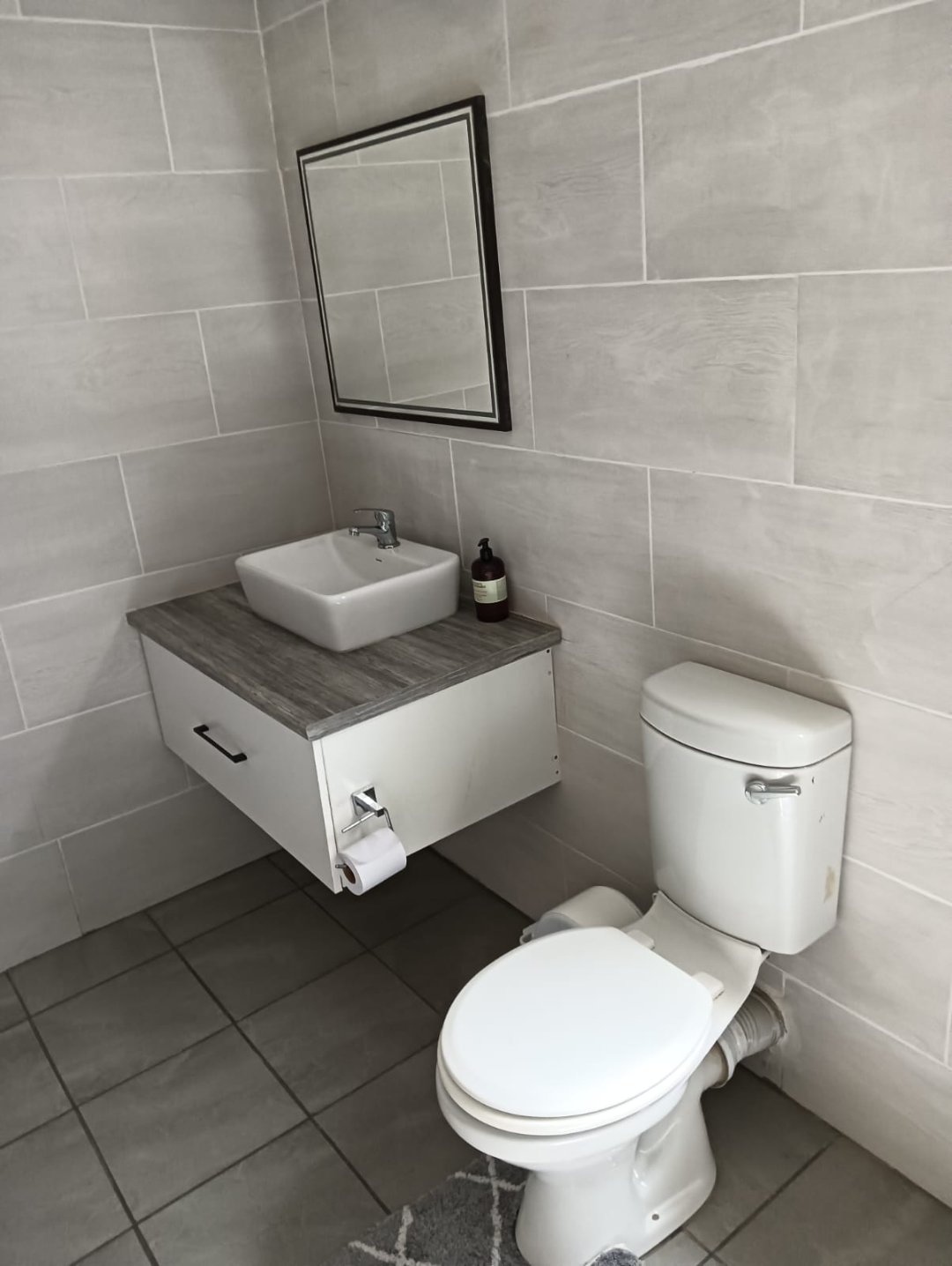 A fully tiled guest bathroom with a shower, toilet, and basin adds to the convenience.
