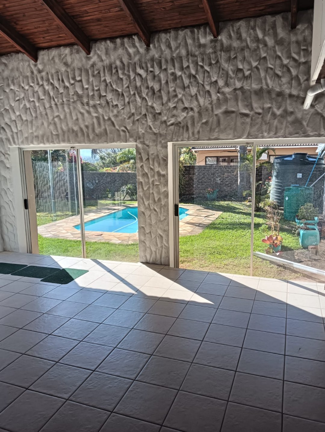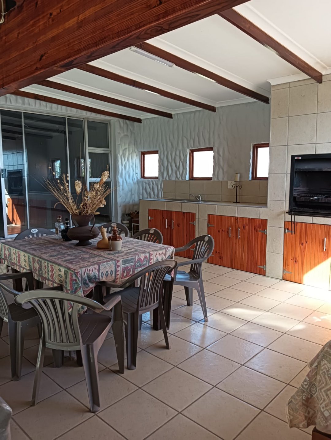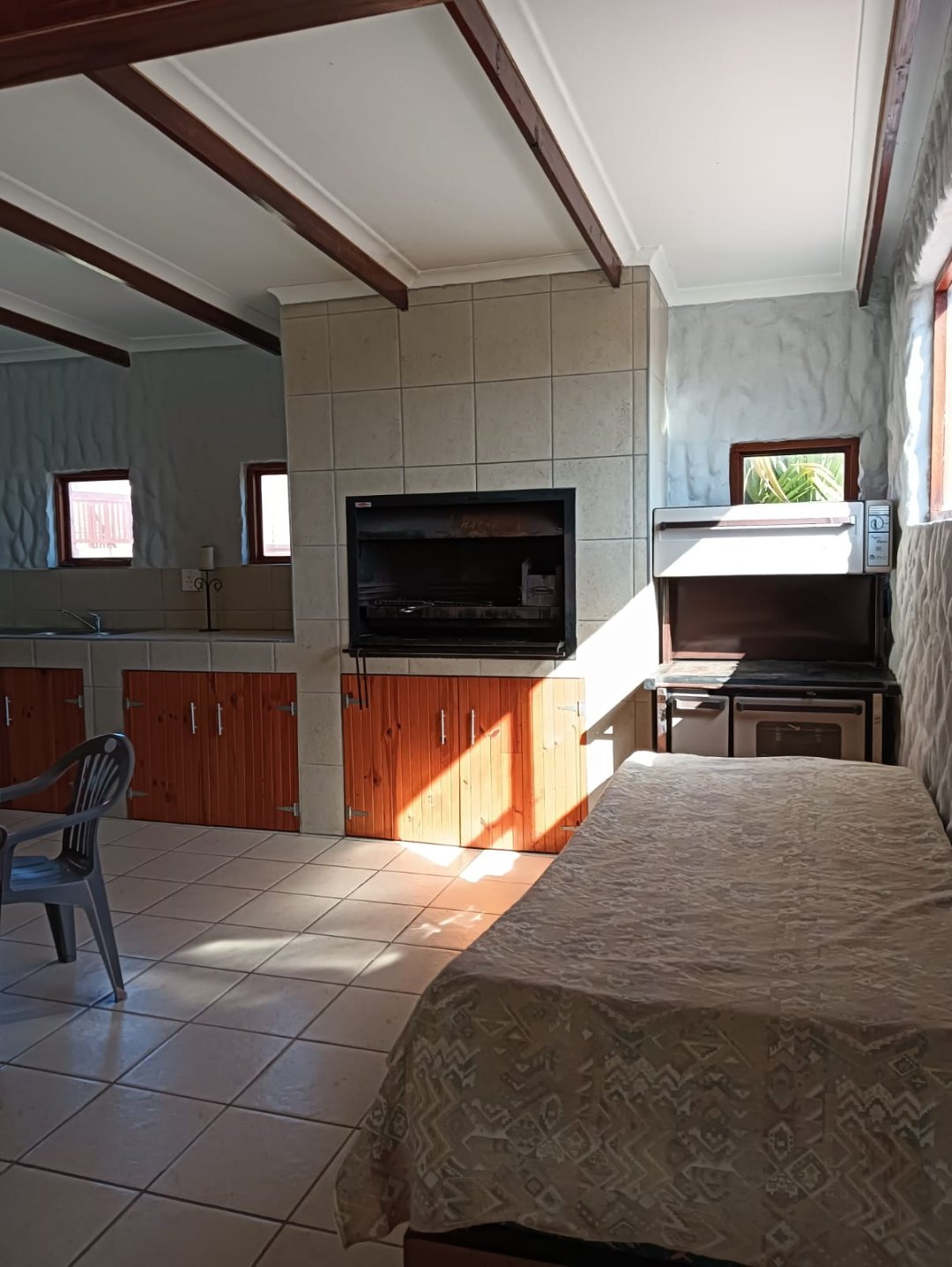An outdoor braai provides the perfect setting for those hot summer days to relax next to the pool.
