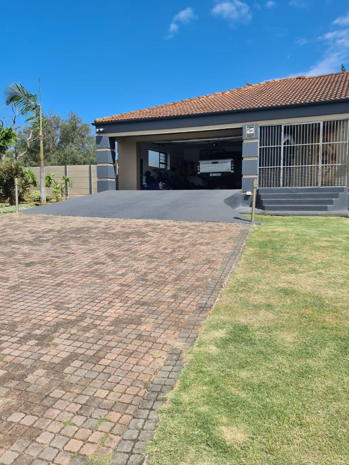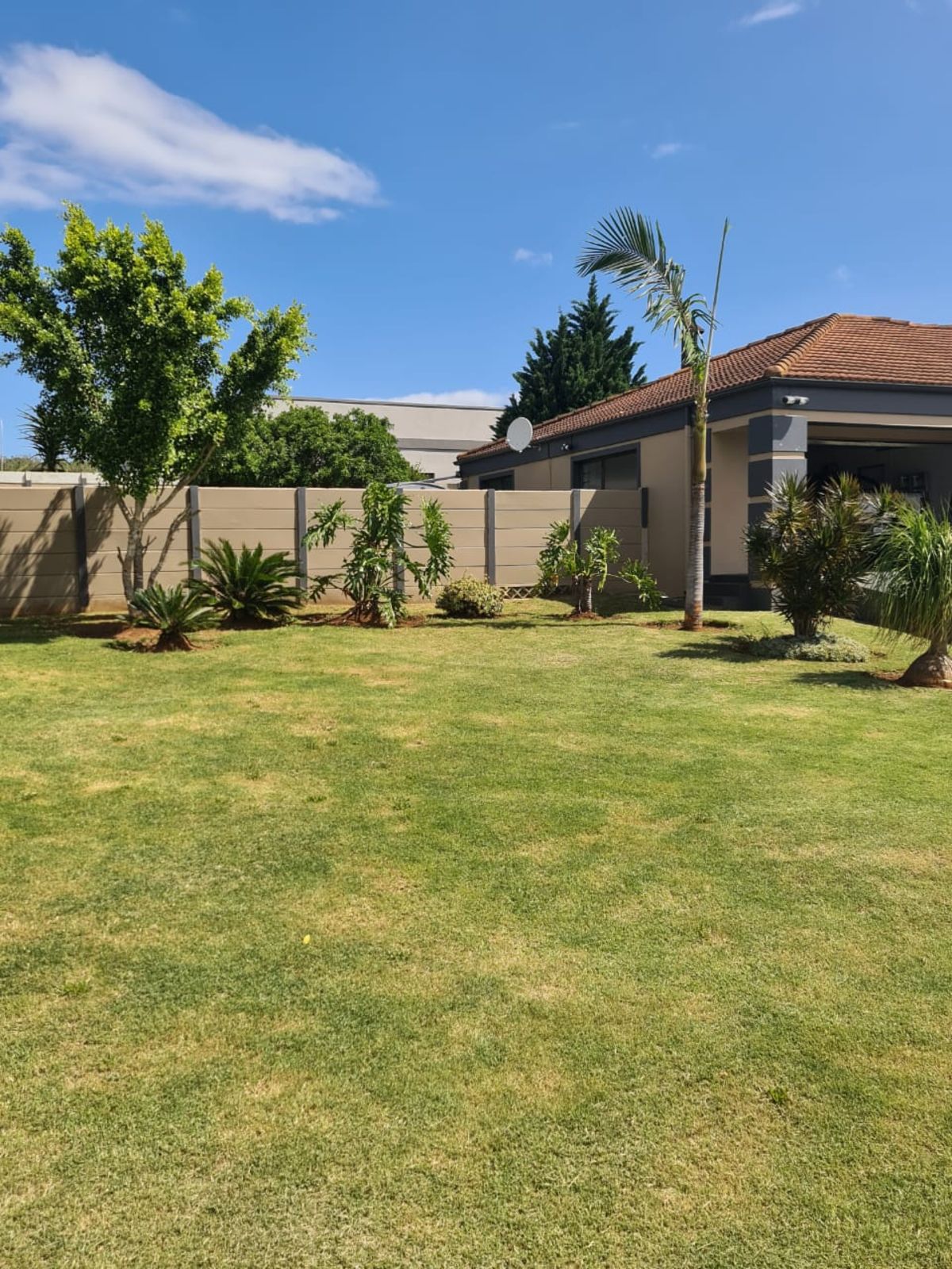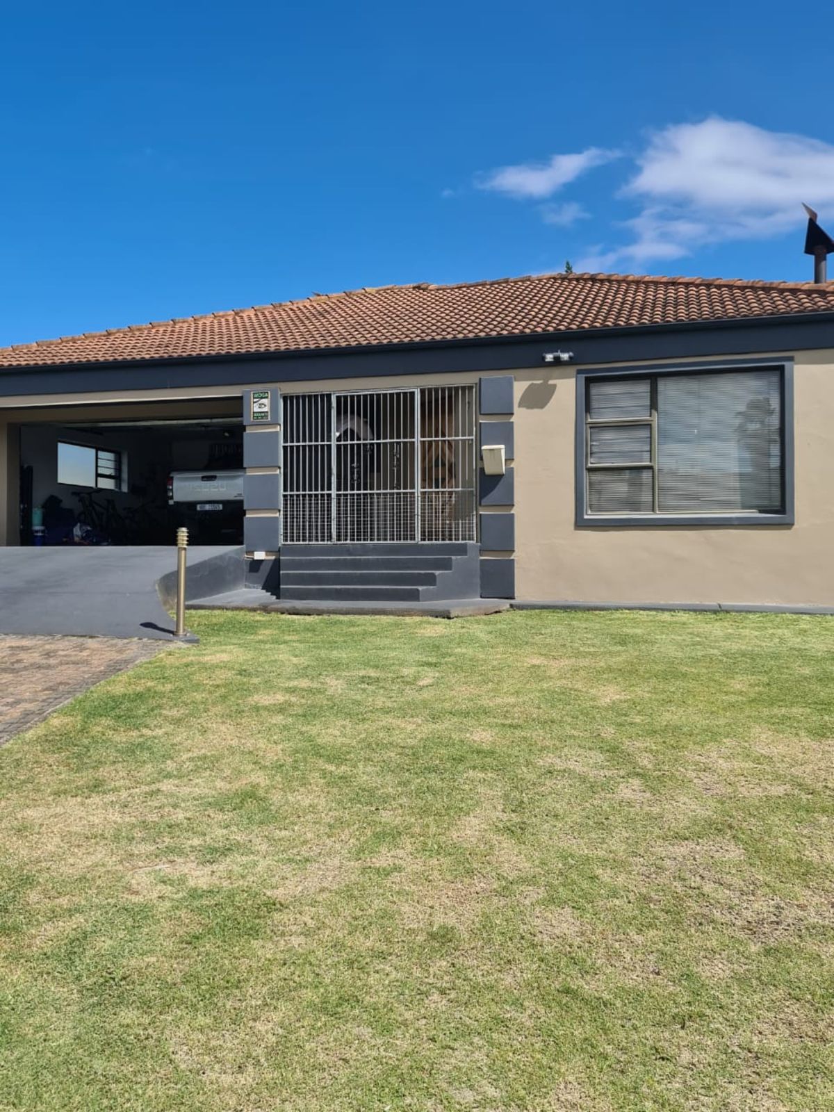 Set on a corner erf the property features green lawns and a large backyard perfect for children and pets to run freely.