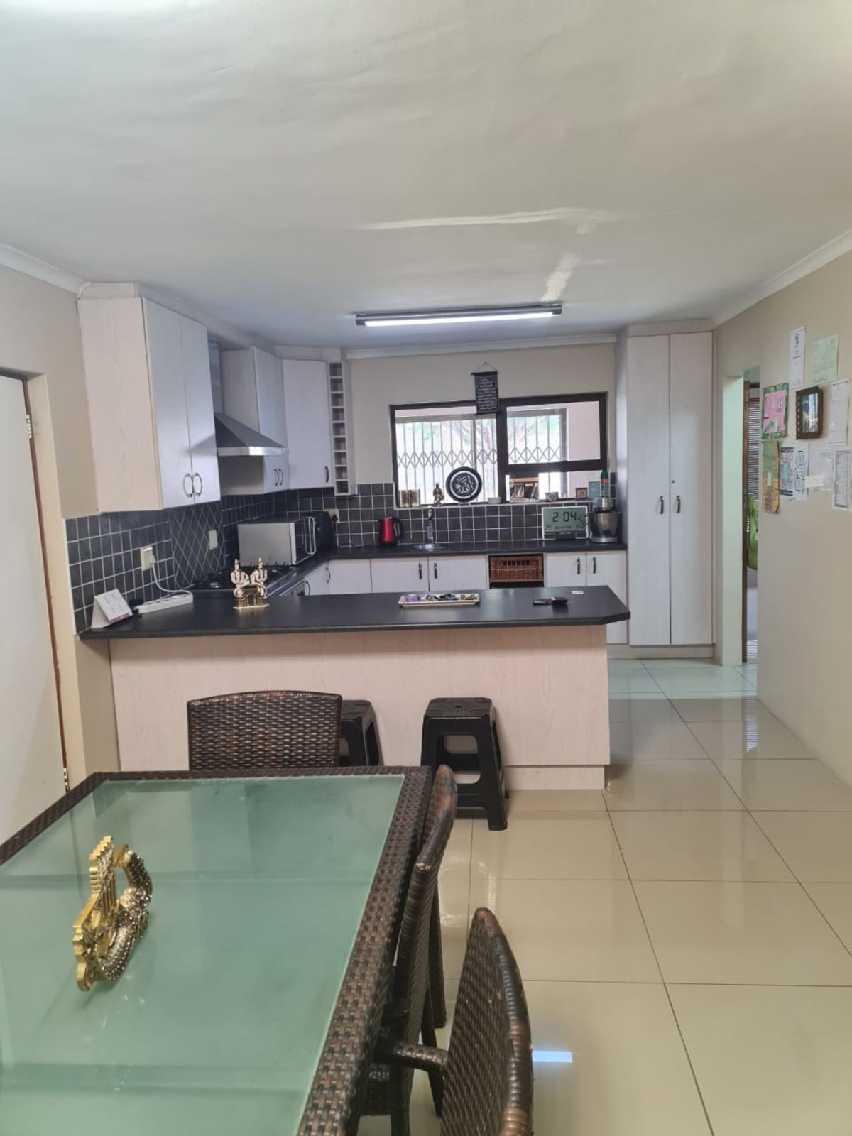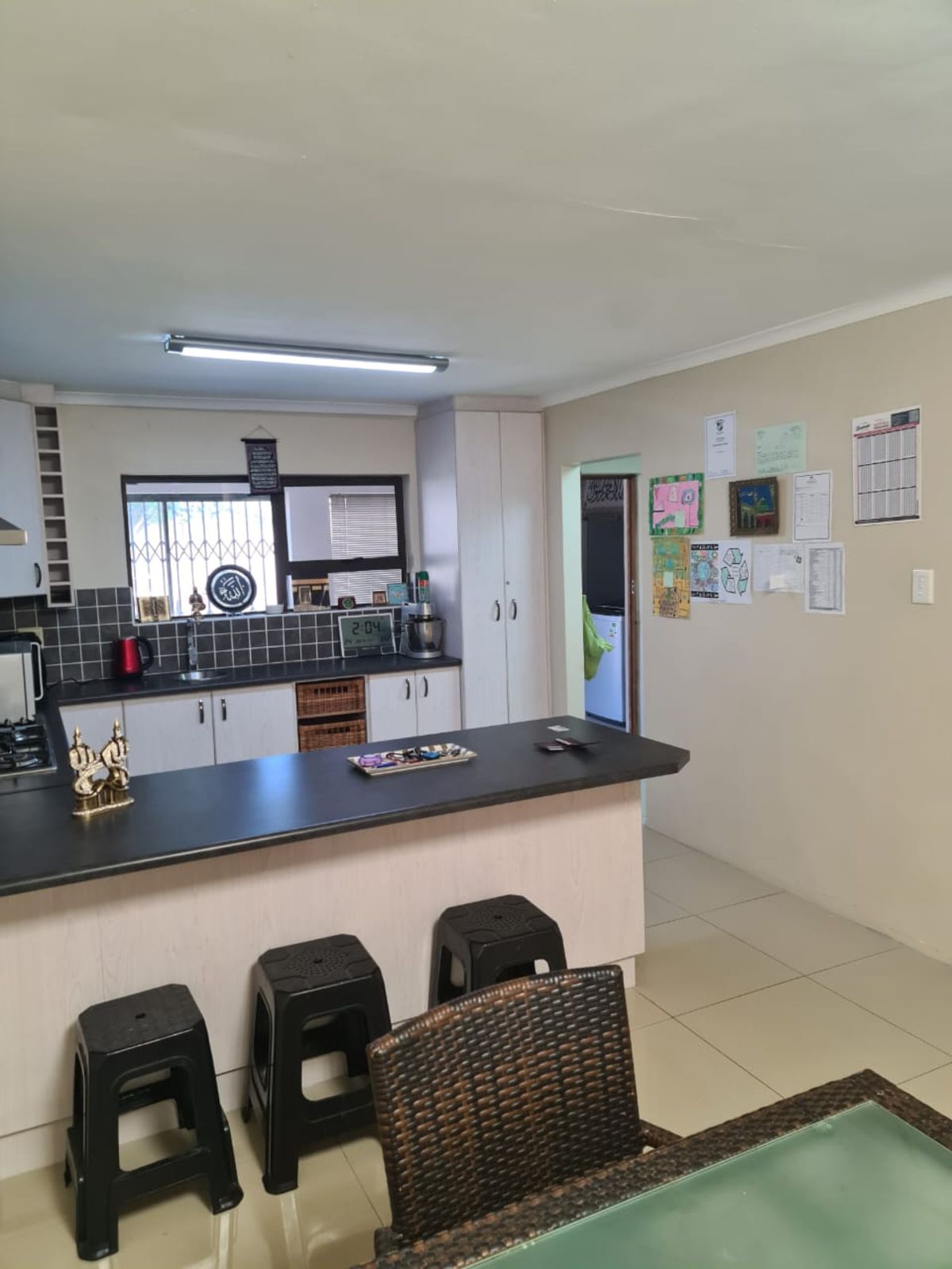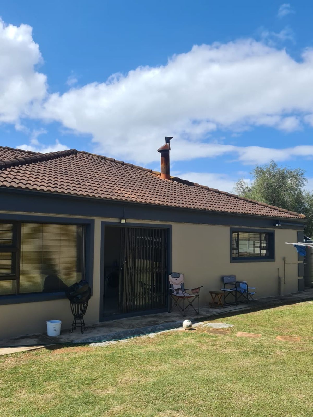 Set on a corner erf the property features green lawns and a large backyard perfect for children and pets to run freely.