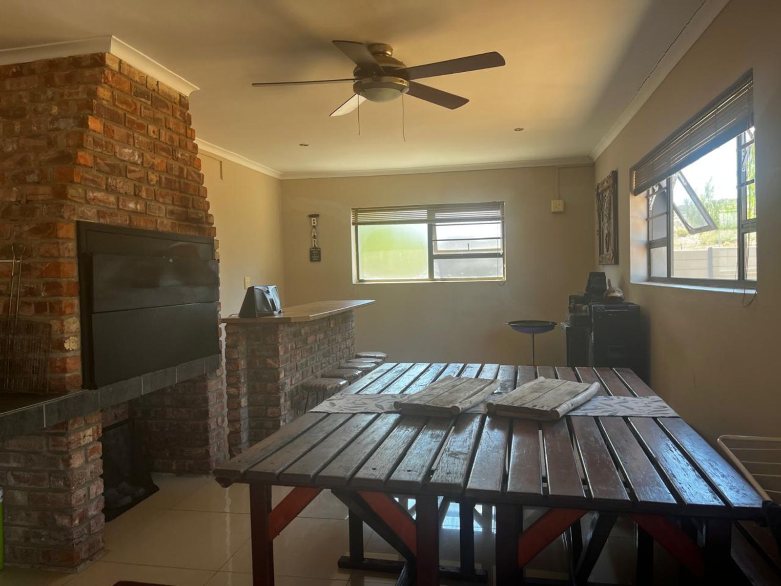 For those who love to host, the dedicated entertainment room features a built-in braai, making it the ideal setting for social gatherings regardless of the weather.