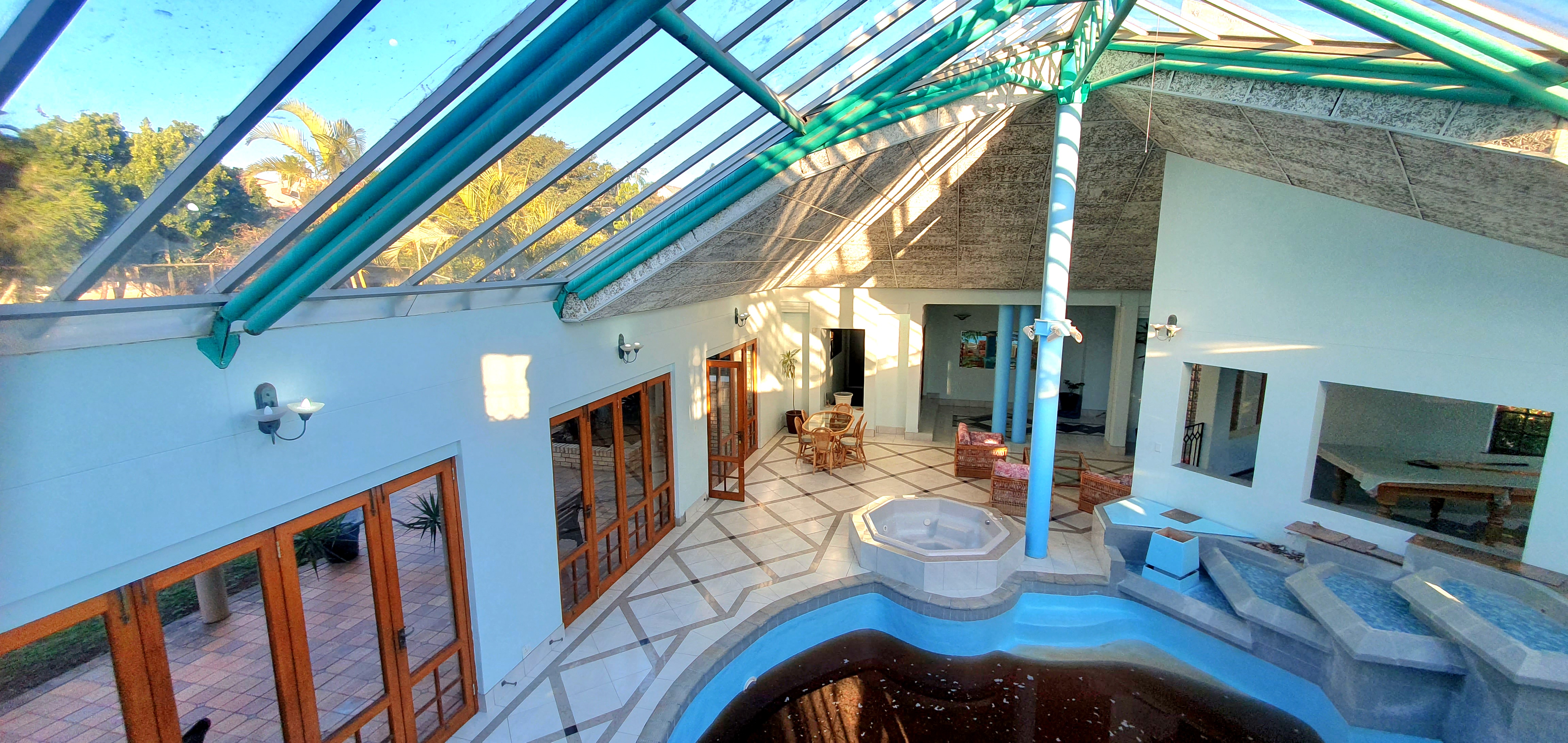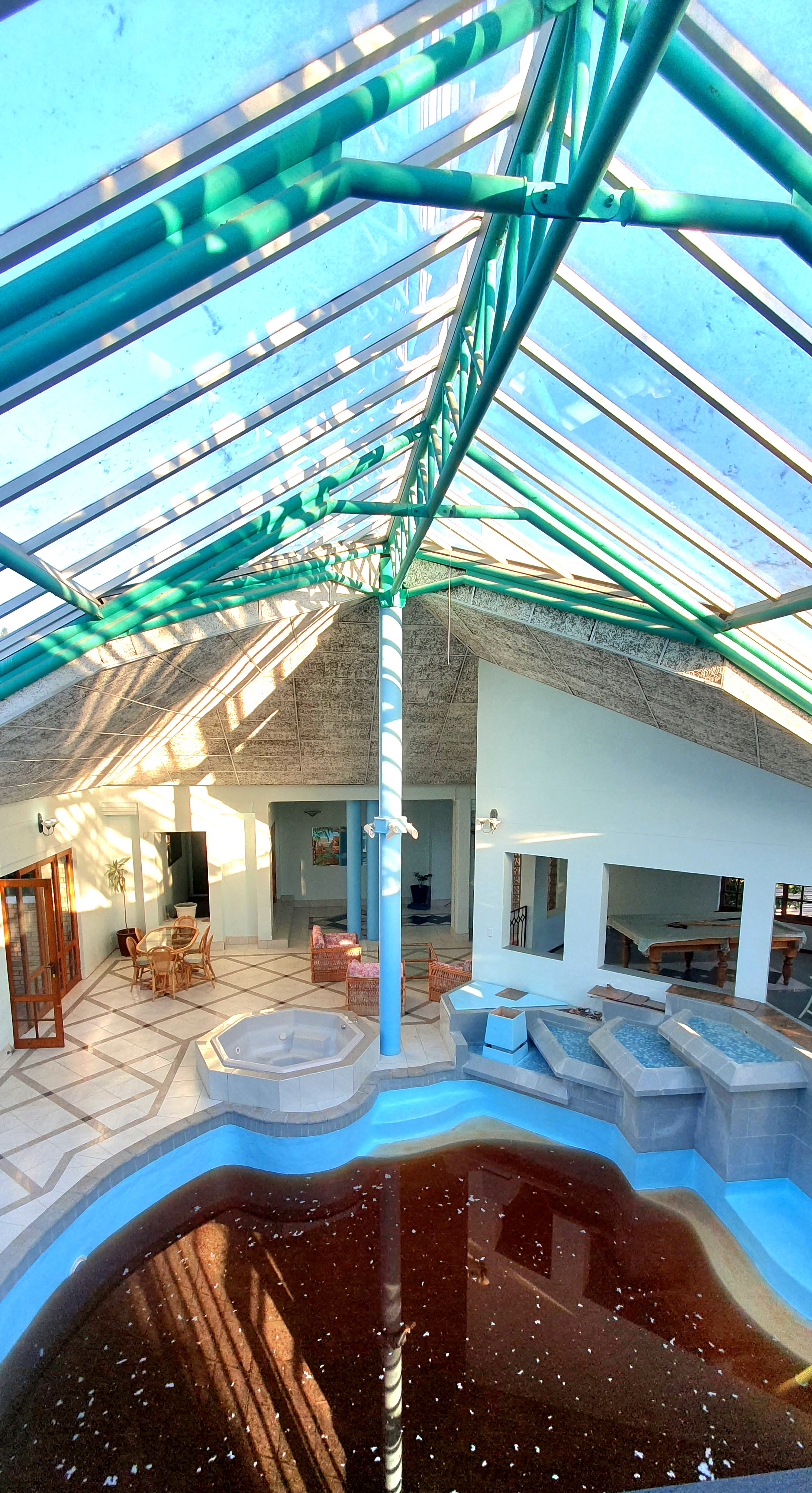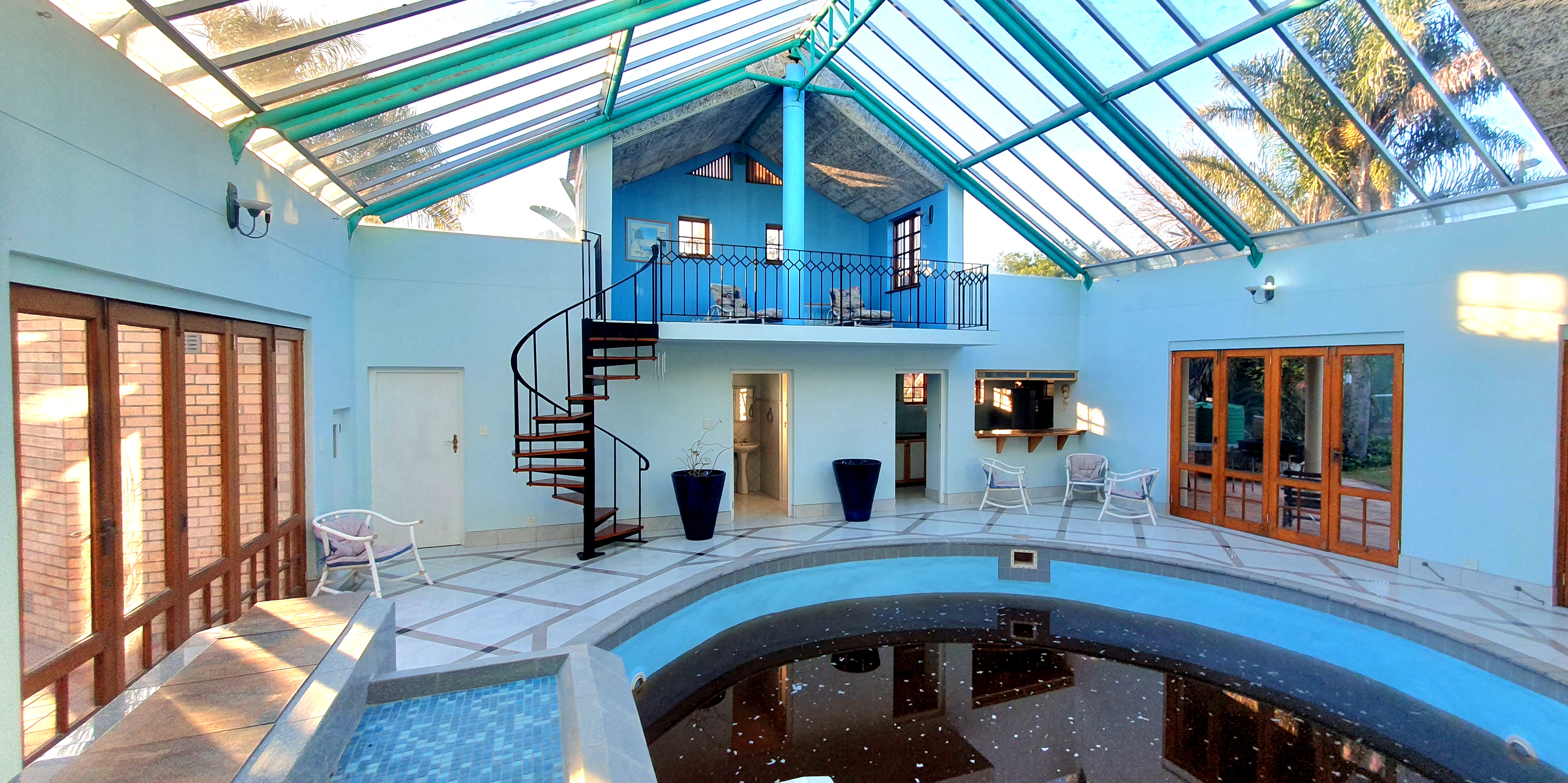 An elevated glass-roof lounge area with panoramic light