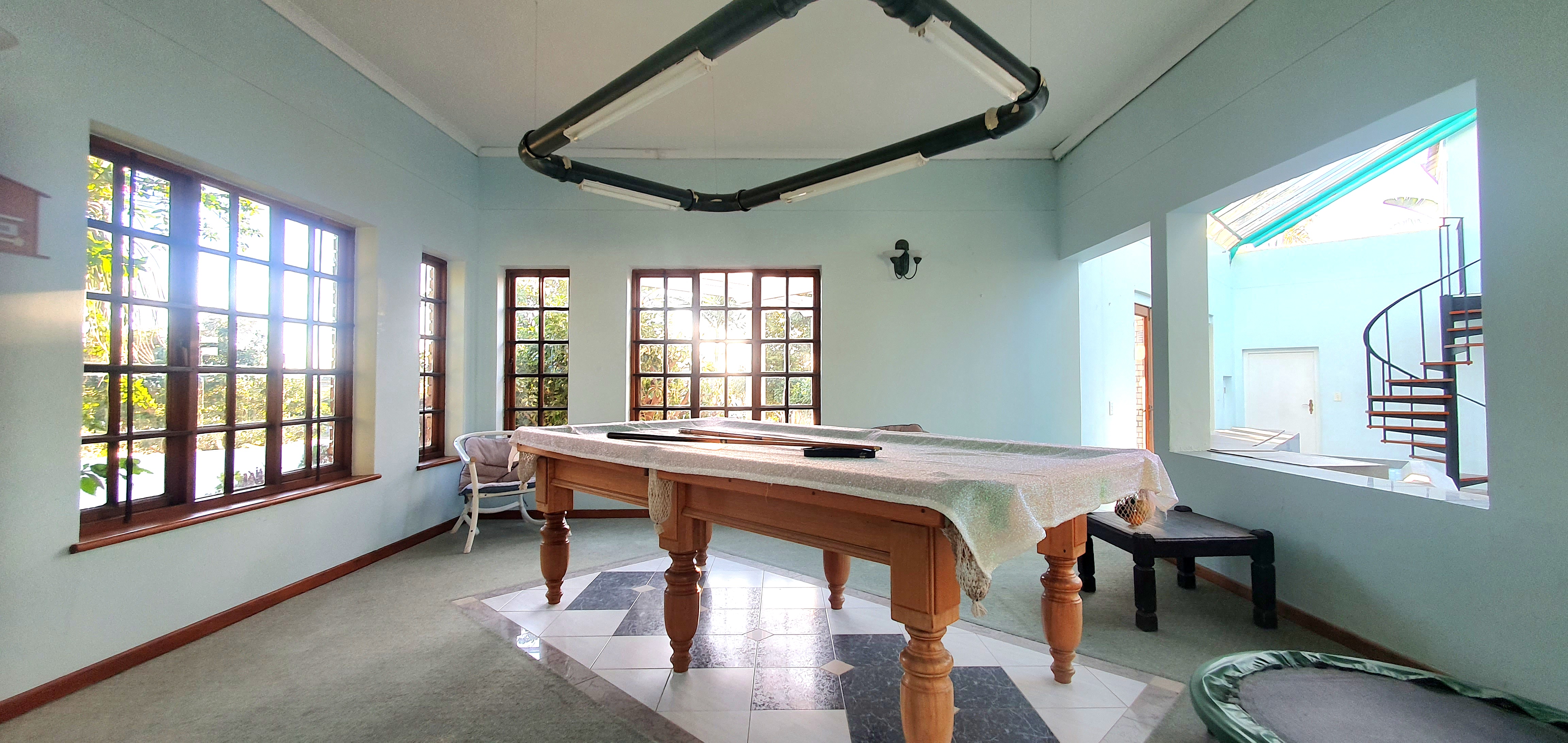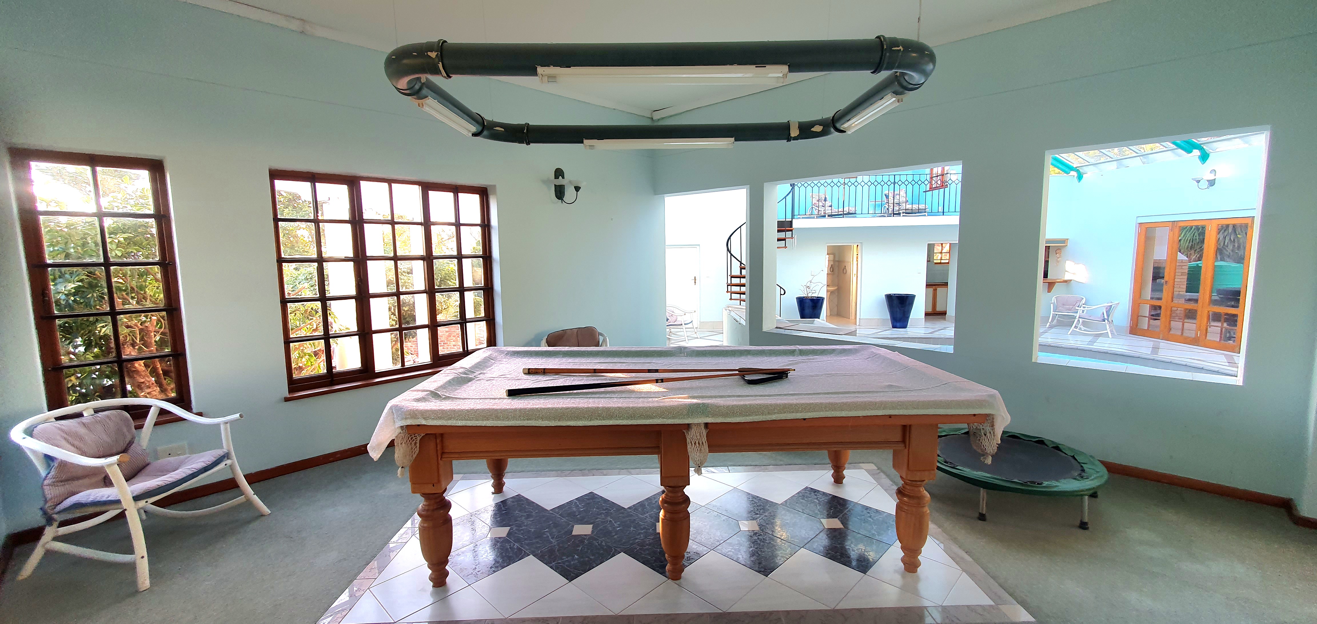 Ample space offers a lounge and pool table areas.