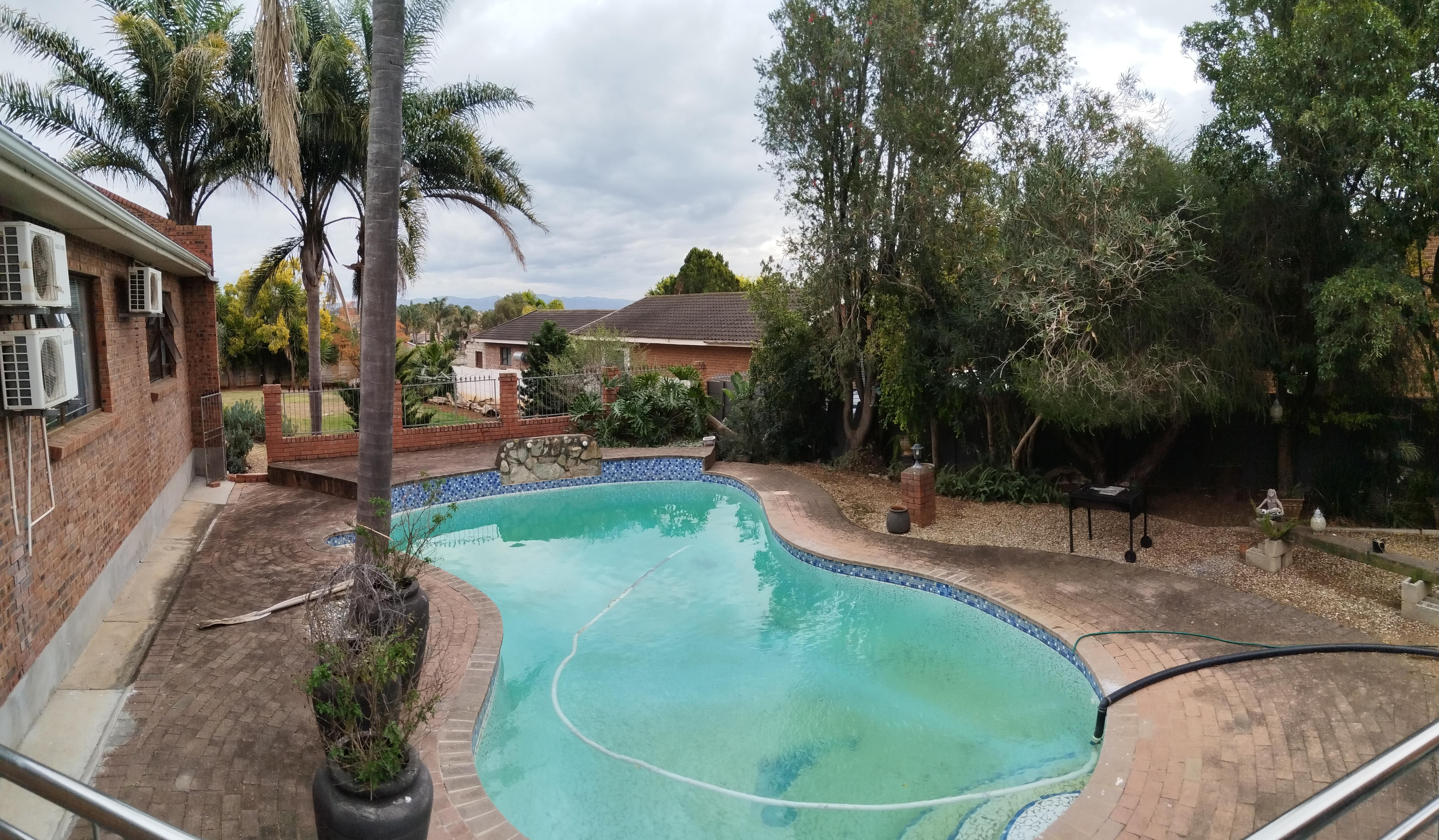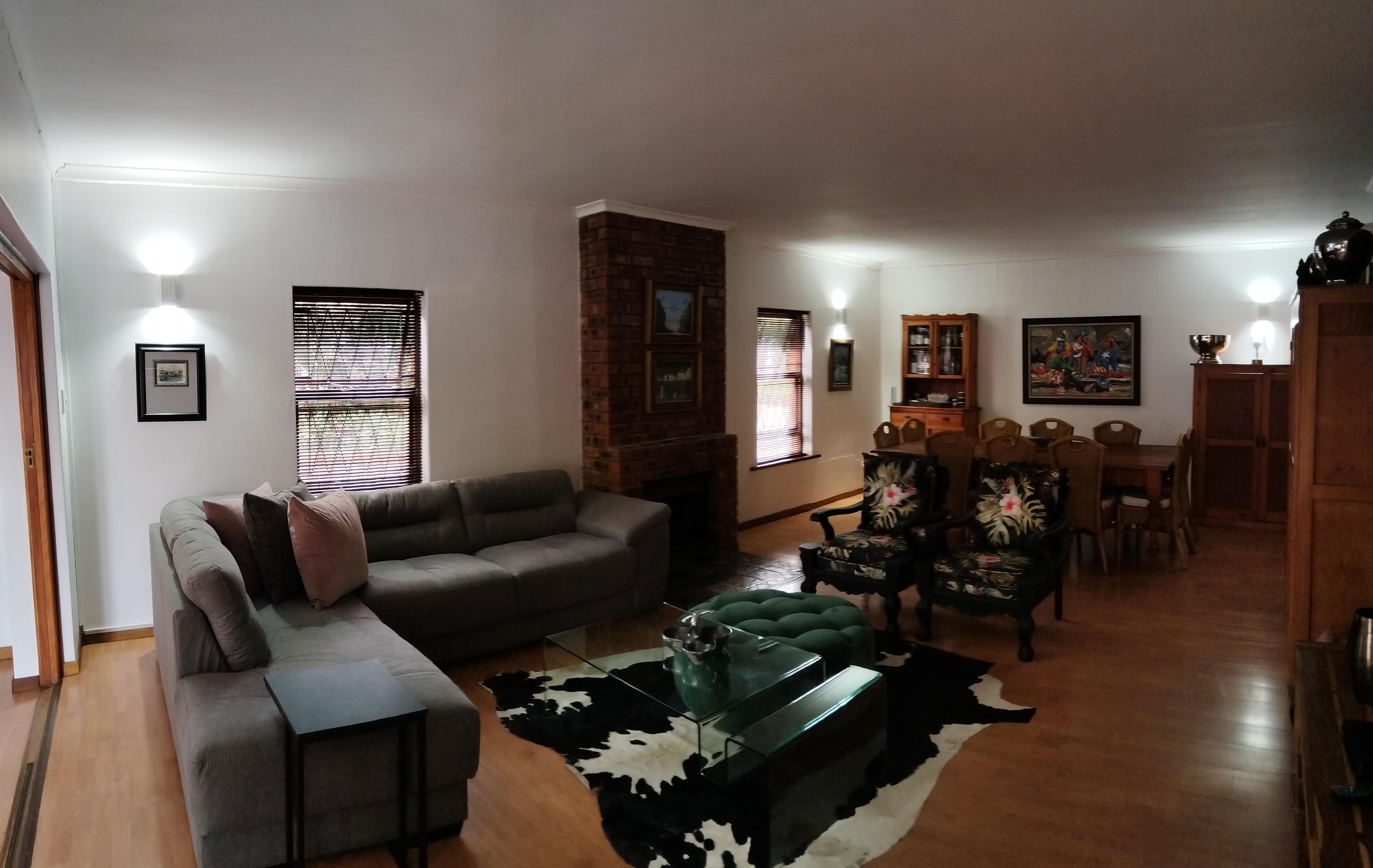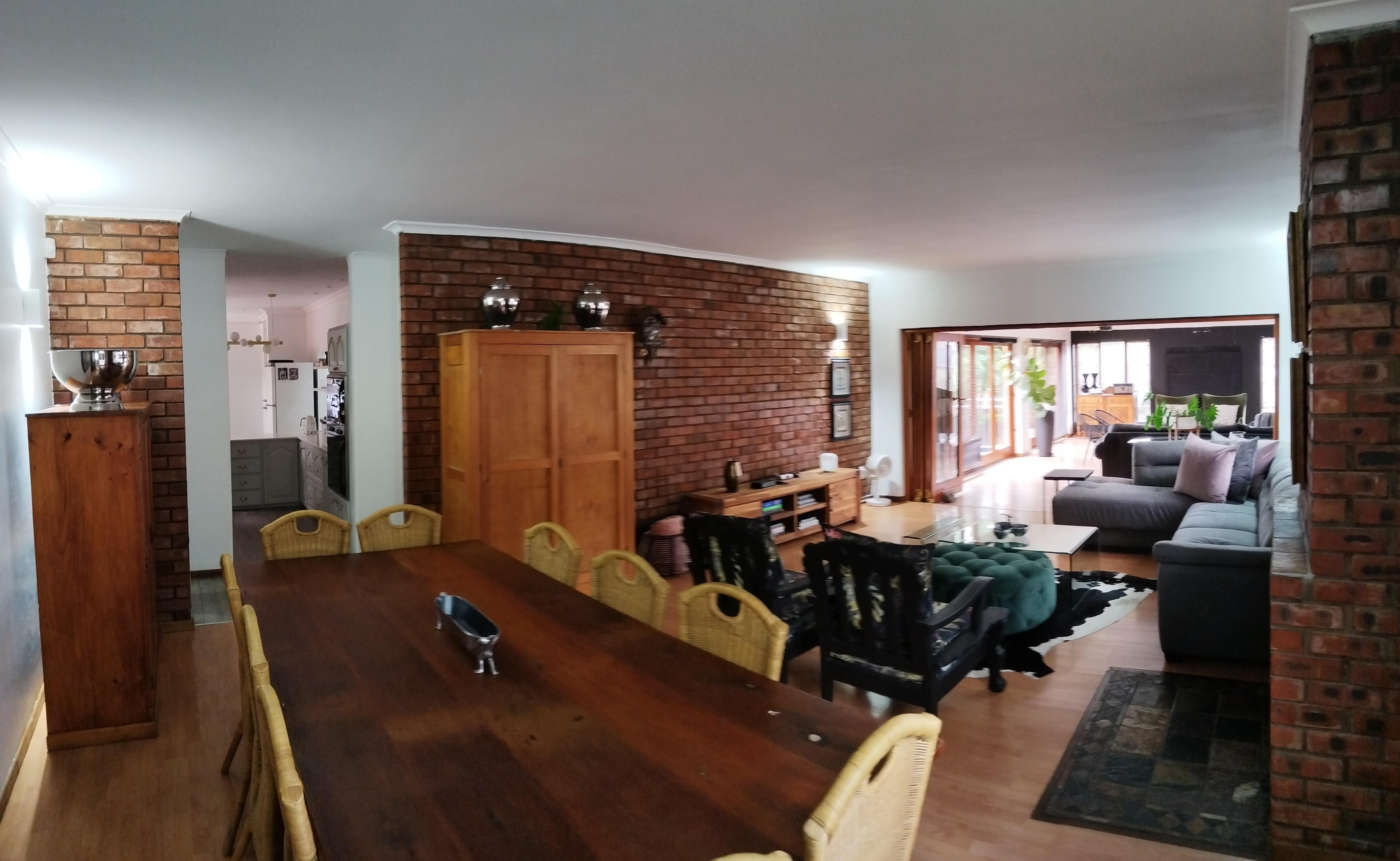 Further down the passage, you'll discover the heart of this home: a spacious open-plan dining/lounge area complete with a fireplace, perfect for those chilly winter evenings. The indoor braai/entertainment area is fitted with an aircon and overlooks the swimming pool and patio — the ideal spot to relax with your morning coffee or unwind after a long day.