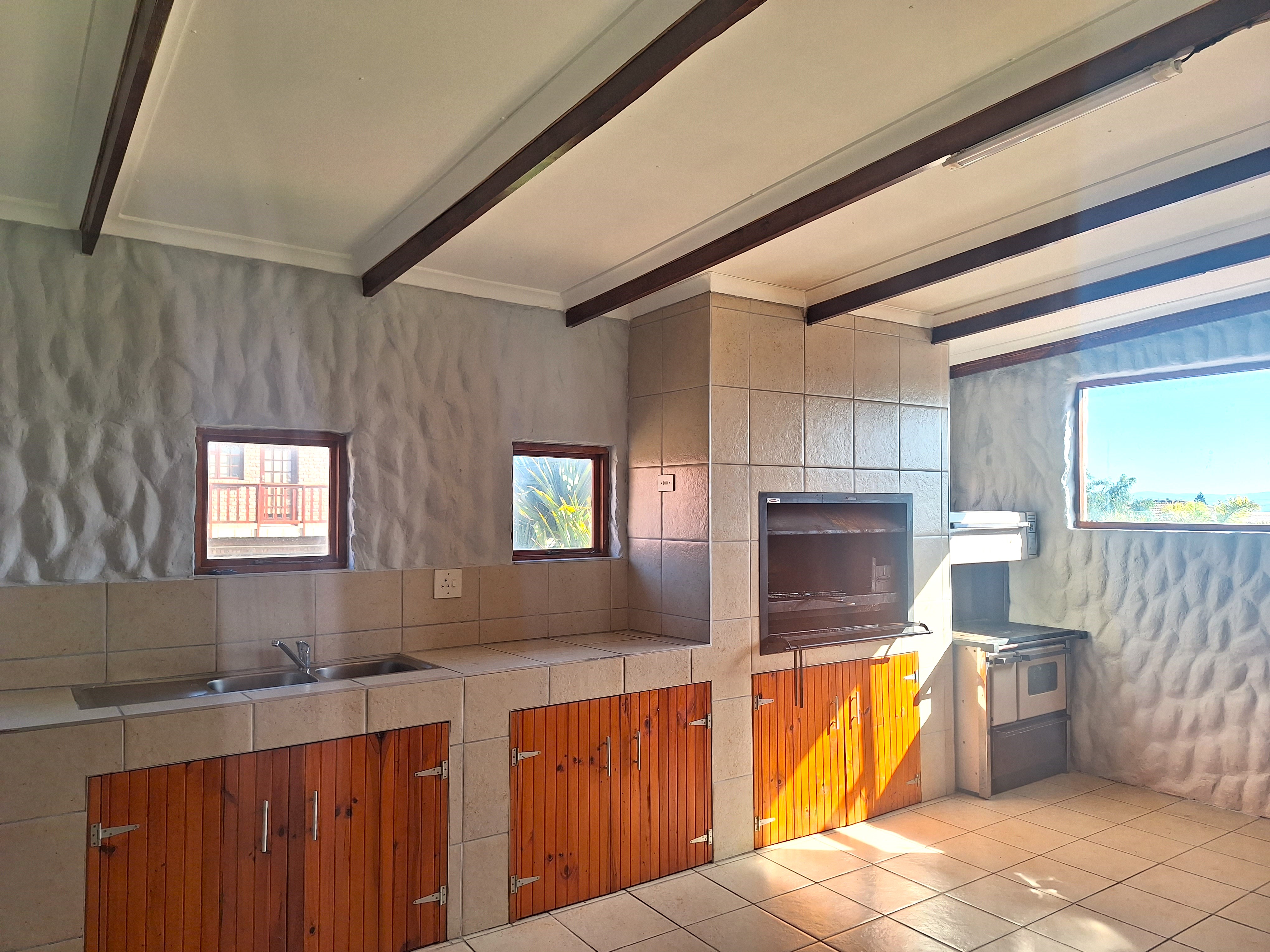 Expansive Lounge with Toilet: This upstairs lounge leads to an indoor braai area with built in wood stove, double sink and storage space, offering breath-taking views of the downstairs sunroom.