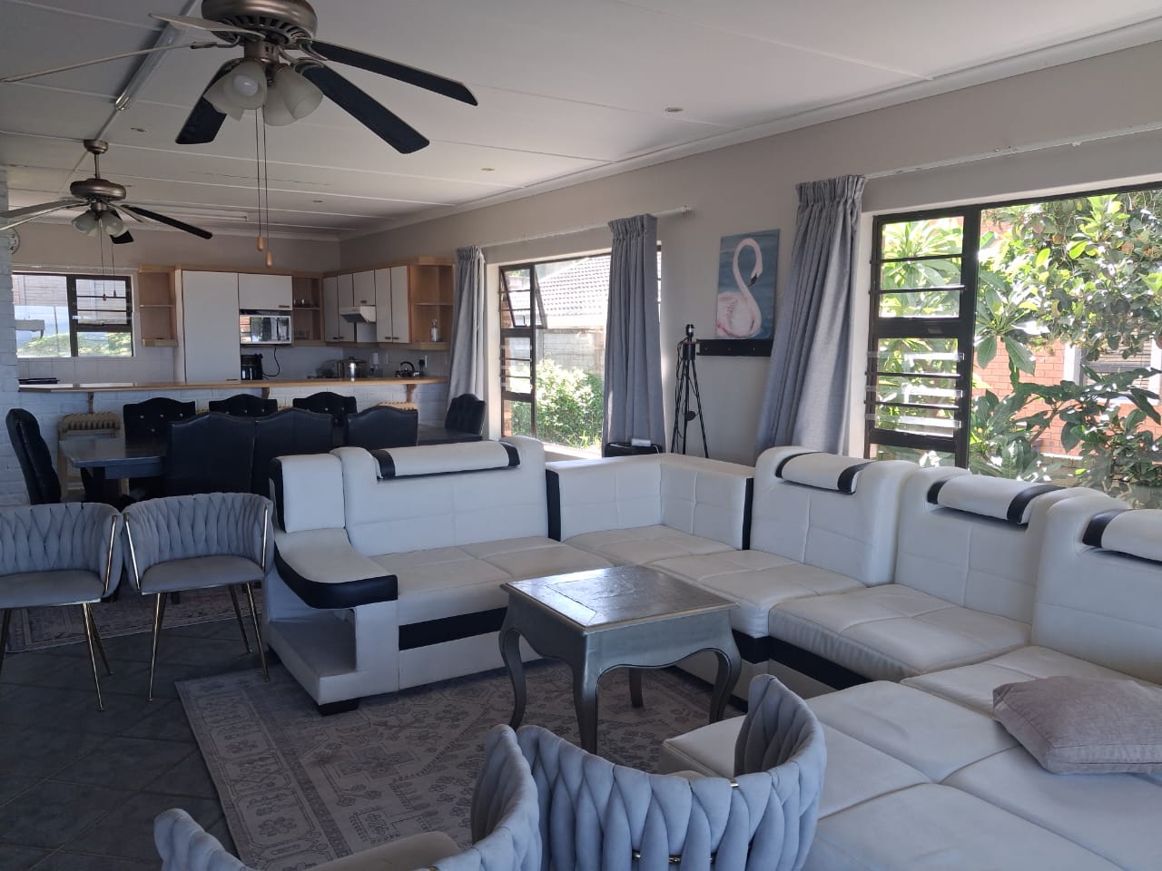 This is a shared property. There are two flats situated at the back of the property which the landlord uses occasionally for stop-overs or holidays. The garage is not included in the rental as it is used by the landlord for storage purposes. However, a dedicated carport is available for the tenant’s vehicle.