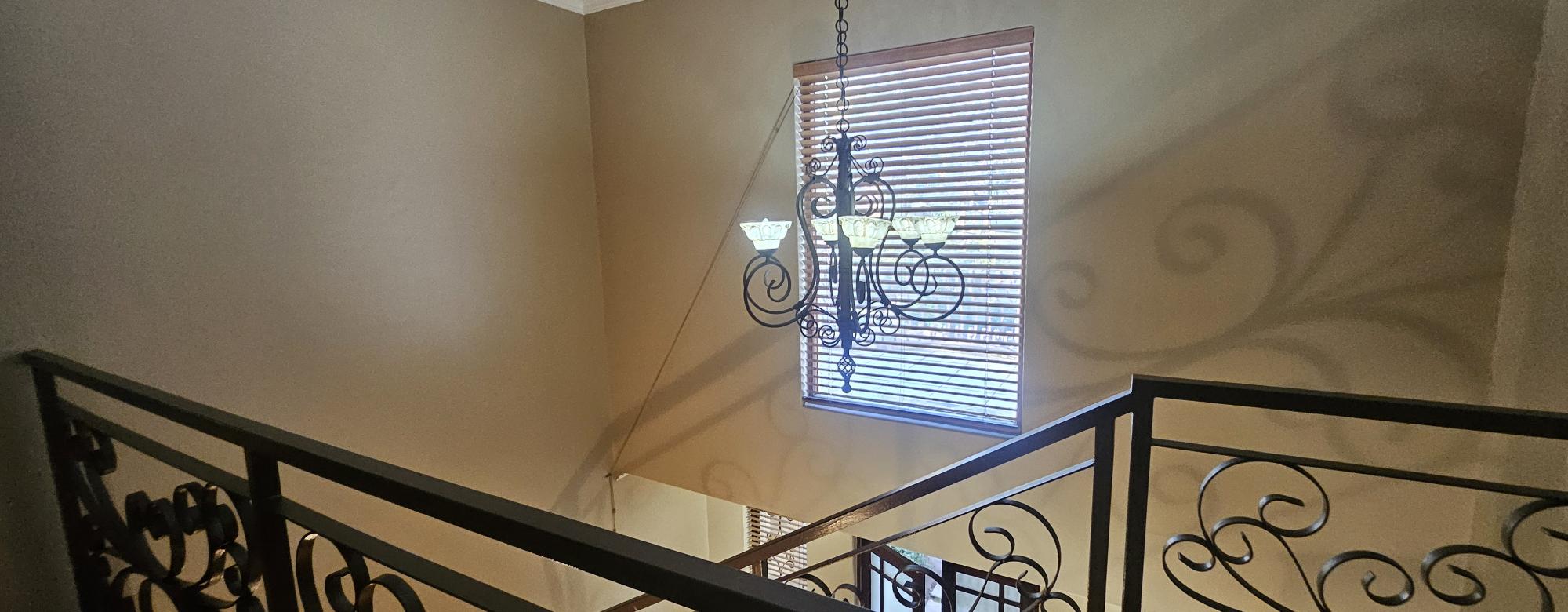 Experience the charm of a Tuscan villa with this exquisite double-storey home, featuring three spacious bedrooms and a versatile study that can easily serve as a fourth bedroom. Enjoy the luxury of two beautifully appointed bathrooms, a guest bathroom, and an open-plan kitchen that flows seamlessly into the dining and lounge areas, perfect for entertaining. Step outside to a generous balcony overlooking a stunning garden, or host gatherings in the dedicated braai room. The elegant staircase adorned with a stunning chandelier adds a touch of sophistication, while practical features like a scullery, double garage, carport, and a water tank ensure convenience and sustainability. This home is a perfect blend of style and functionality, ready to welcome you.