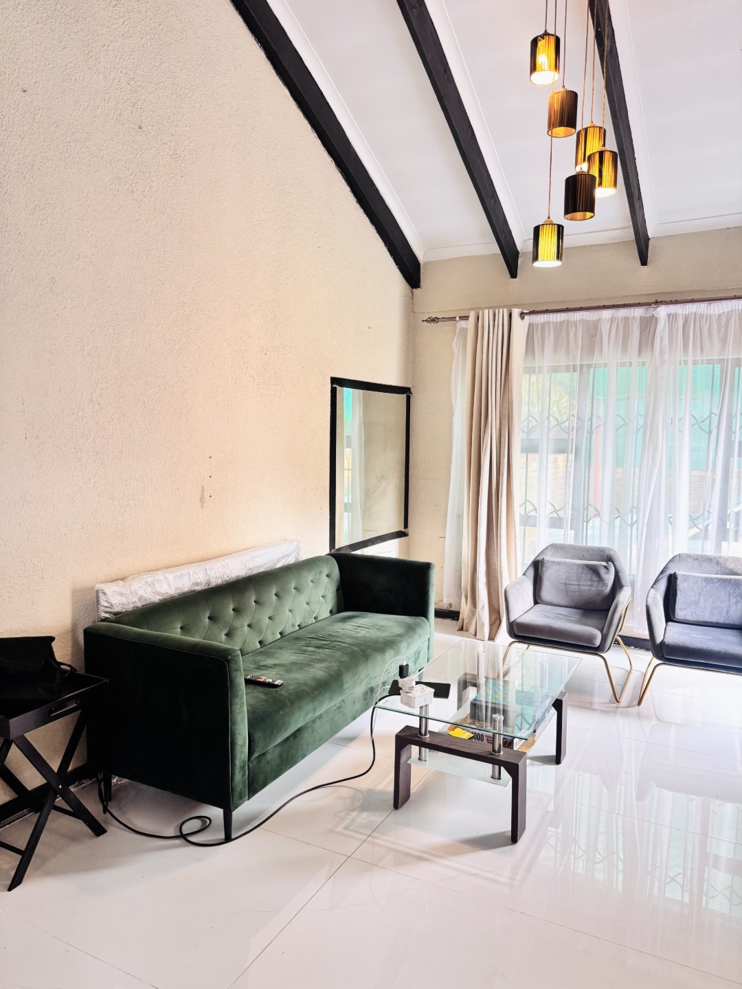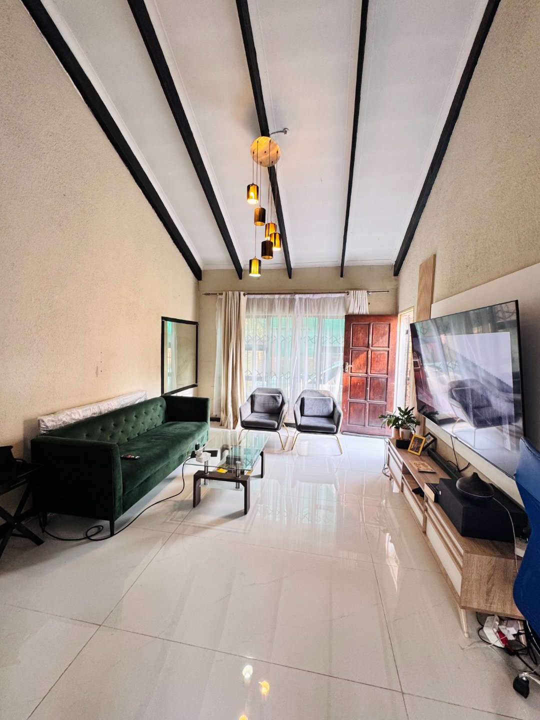 Welcome to this beautifully maintained 2-bedroom duplex situated in a safe and quiet area. Perfect for families or first time buyers, this home offers a newly renovated kitchen with ample cupboard space and gas stove, ideal for modern living. The high ceilings bring in natural light and enhance the spacious feel throughout.