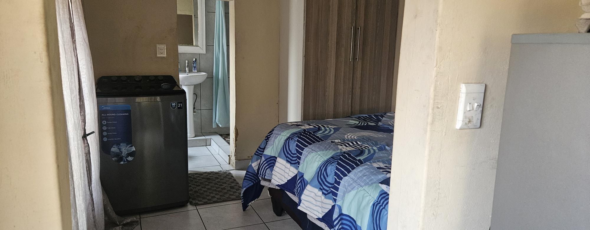 1 Unit: Bathroom and bedroom with cupboards. Rental income R3100.