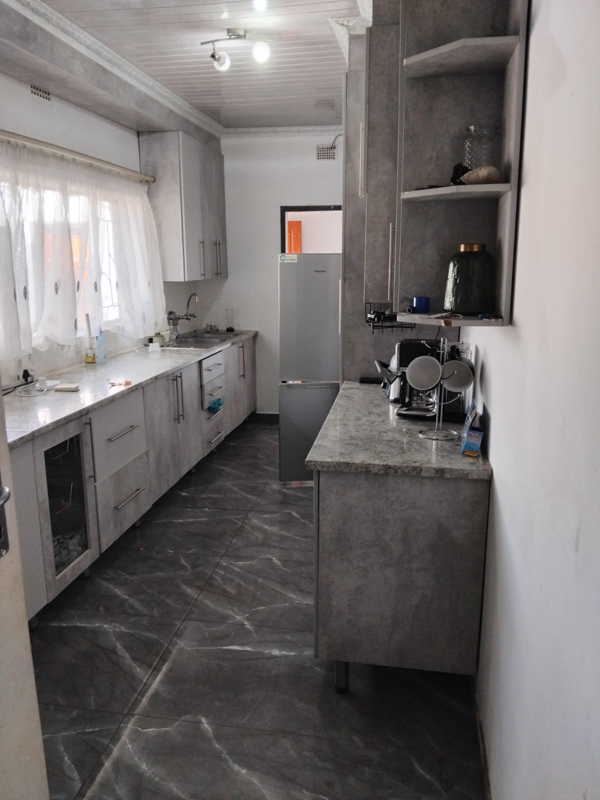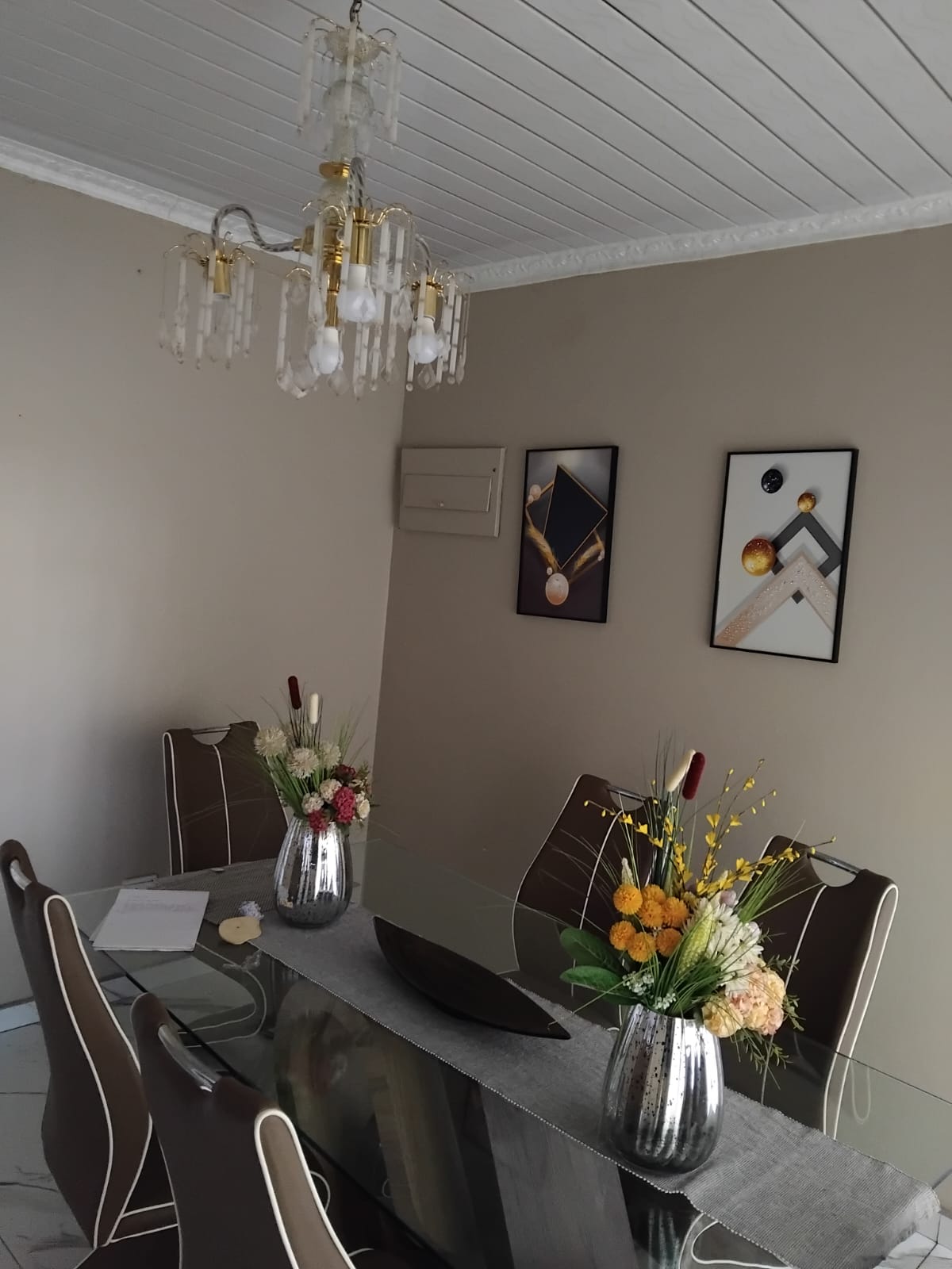This property features three bedrooms, with an additional flatlet serving as a fourth bedroom. The fitted kitchen is designed for convenience, and the entire house boasts tiled flooring throughout. There are two bathrooms for added comfort. The spacious yard offers ample potential for expanding with additional rooms or structures. Enjoy the luxury of a swimming pool, along with a double garage for secure parking.