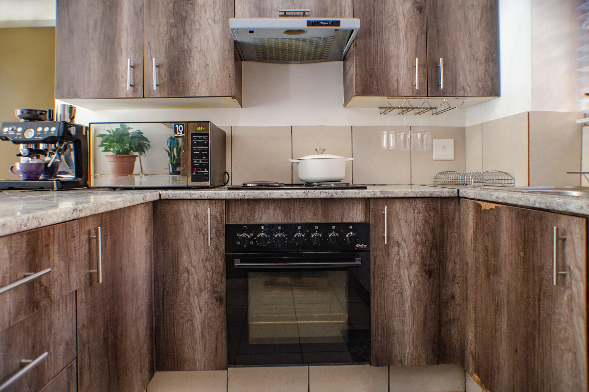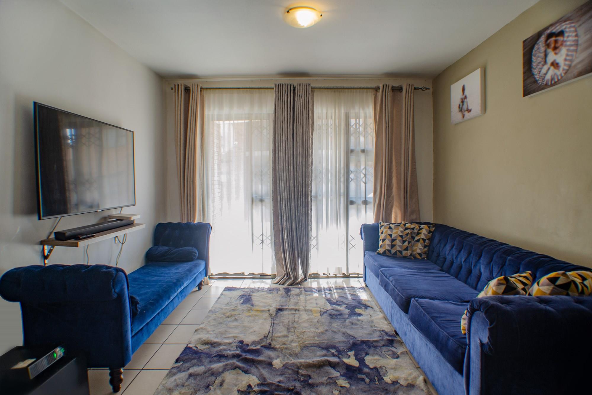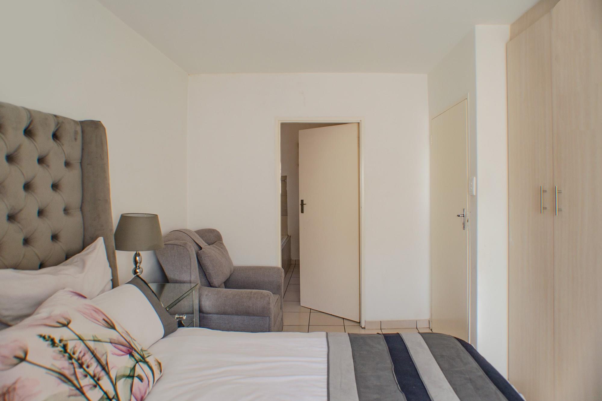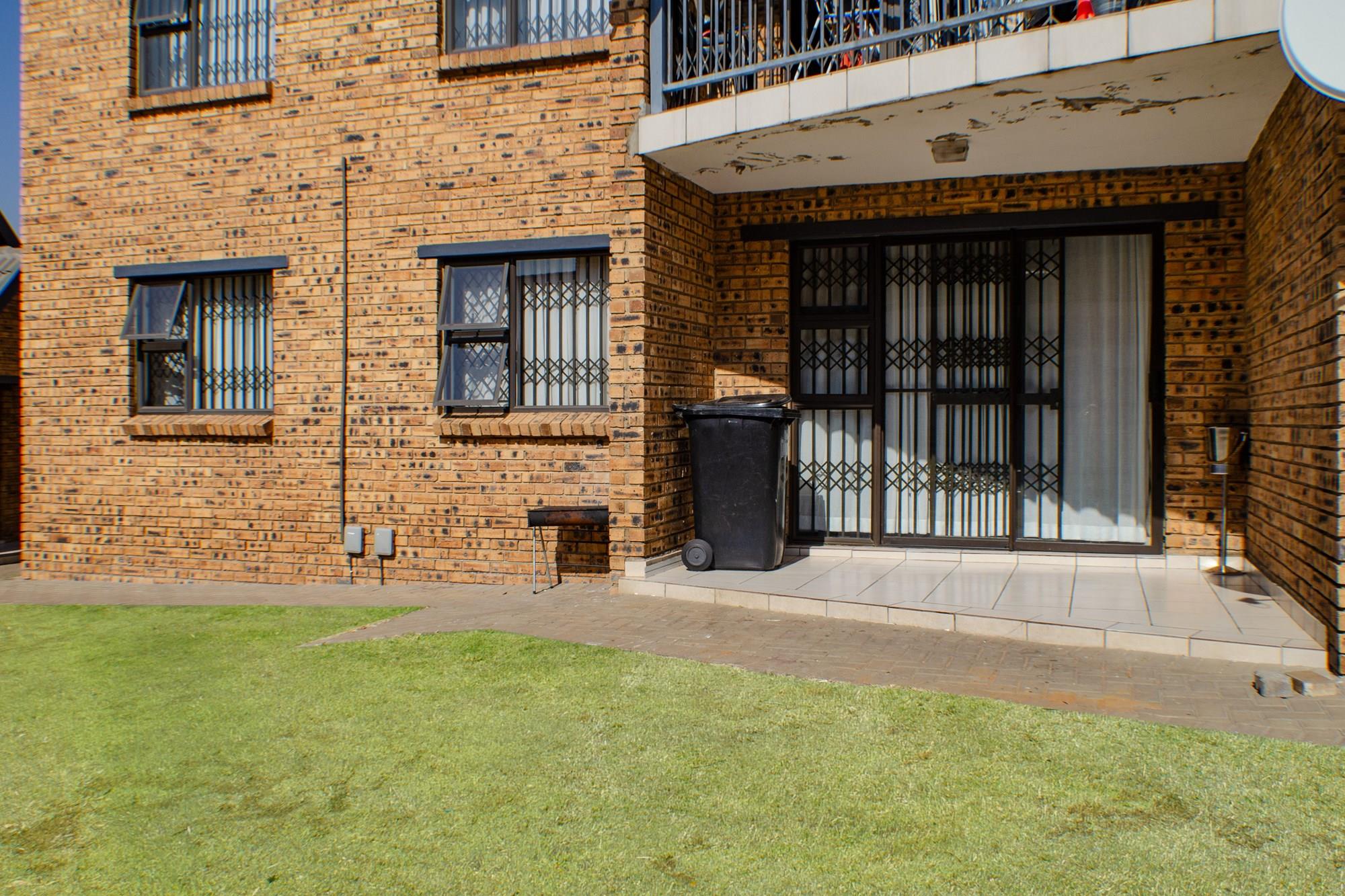 Lovely ground floor unit available. Three bedrooms all with built-in cupboards, can fit queen sized beds. Main bedroom has an en-suite bathroom with shower, bath, toilet and basin. Family bathroom has a bath, toilet and basin. Modern kitchen with lots of cupboard space and place for a top loader washing machine. Kitchen and lounge are open plan and leads out onto a covered patio and opens up to a large common area in front of the unit where kids can play. The unit has security gates on all doors and windows. The unit has prepaid electricity. Water, refuse and sewerage will be billed monthly as per usage. The unit is fibre-ready. There is one undercover parking, one open parking and lots of visitors parking. The complex has 24hour security. Close to schools, shopping malls and easy access to highways and OR Tambo International. NOT PET FRIENDLY