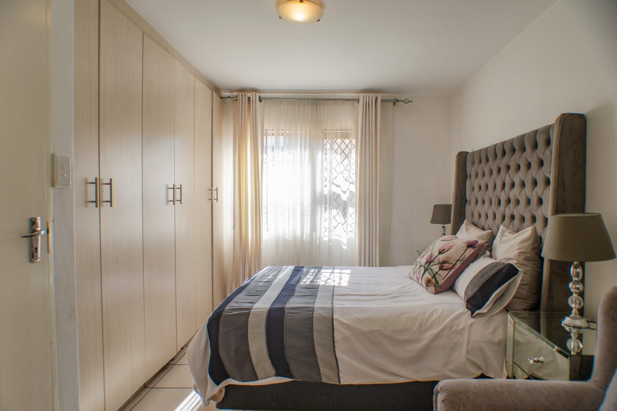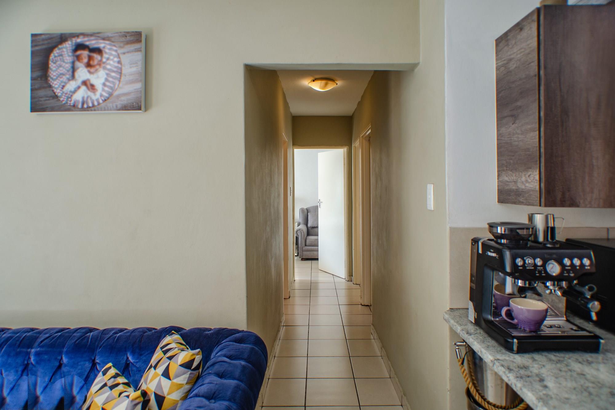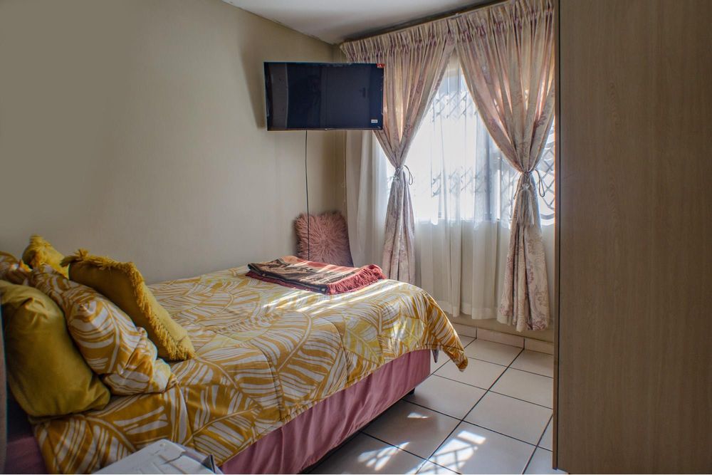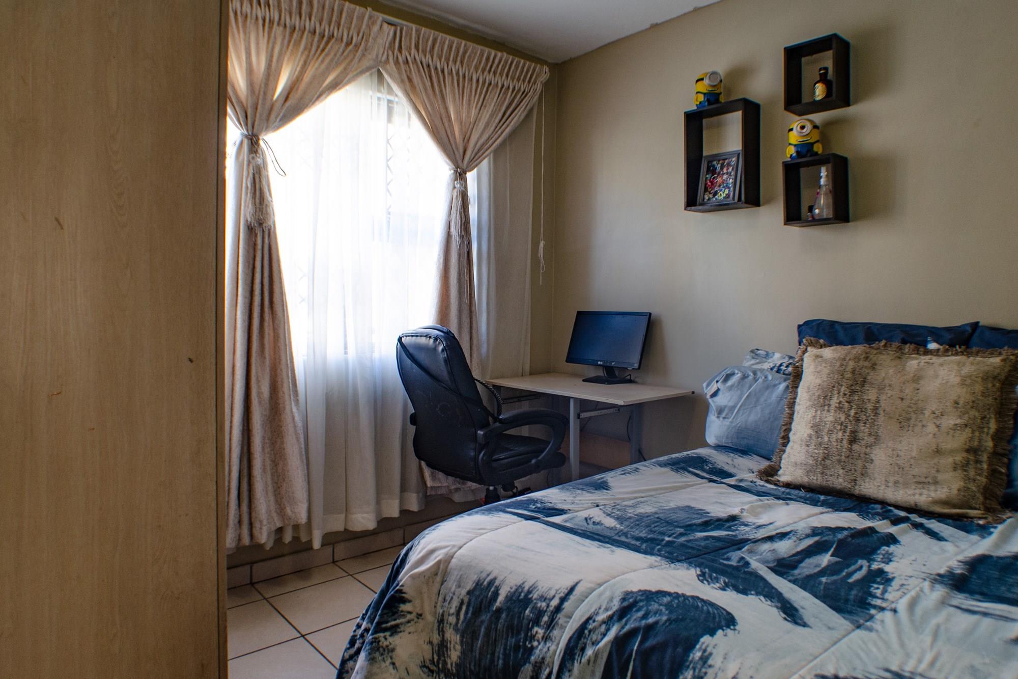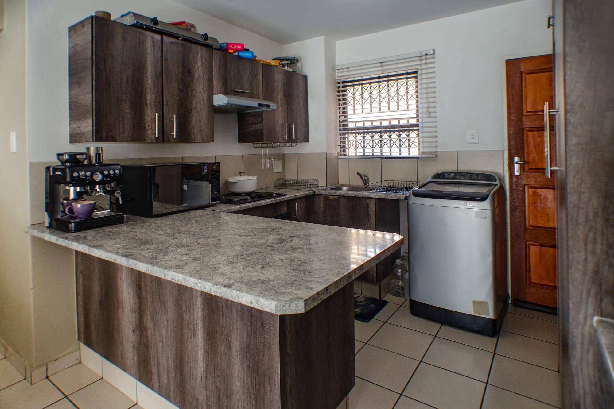 Lovely ground floor unit available. Three bedrooms all with built-in cupboards, can fit queen sized beds. Main bedroom has an en-suite bathroom with shower, bath, toilet and basin. Family bathroom has a bath, toilet and basin. Modern kitchen with lots of cupboard space and place for a top loader washing machine. Kitchen and lounge are open plan and leads out onto a covered patio and opens up to a large common area in front of the unit where kids can play. The unit has security gates on all doors and windows. The unit has prepaid electricity. Water, refuse and sewerage will be billed monthly as per usage. The unit is fibre-ready. There is one undercover parking, one open parking and lots of visitors parking. The complex has 24hour security. Close to schools, shopping malls and easy access to highways and OR Tambo International. NOT PET FRIENDLY