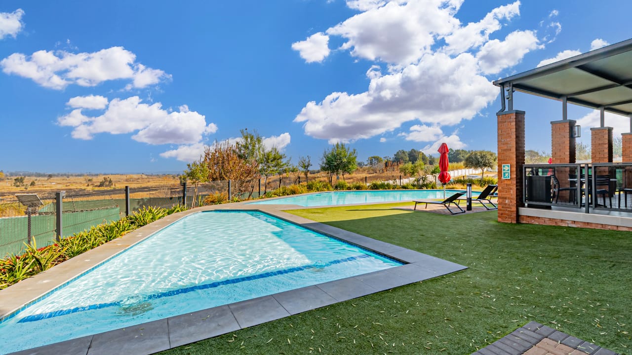 Discover refined living in this bright first-floor apartment in the sought-after Greenpark Lifestyle Estate – a pet-friendly sanctuary built for the modern family. Nestled in Boksburg’s Greenpark, this estate is more than just somewhere to live — it’s a lifestyle. Enjoy round-the-clock security, beautifully landscaped communal gardens, and a soon-to-open indoor gym (currently in final stages of preparation), in addition to a full lifestyle centre boasting outdoor gym facilities, swimming pools (including a kiddies’ splash pool), jungle gyms, sports fields, and a pizzeria / social lounge area. The estate integrates eco-friendly design features and high-speed fibre connectivity.