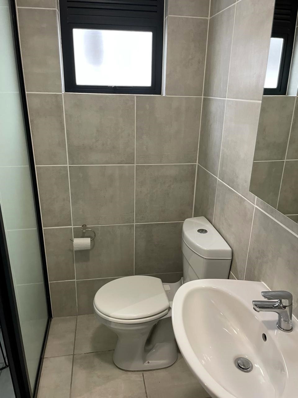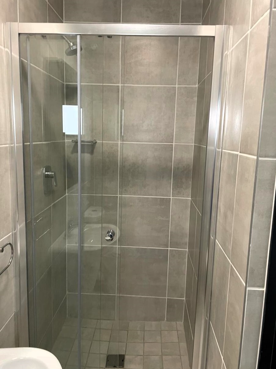 The bedroom, adorned with tasteful tiling and ample built-in cupboards, boasts an En-Suite bathroom with a modern shower creating a comfortable haven for rest and rejuvenation.