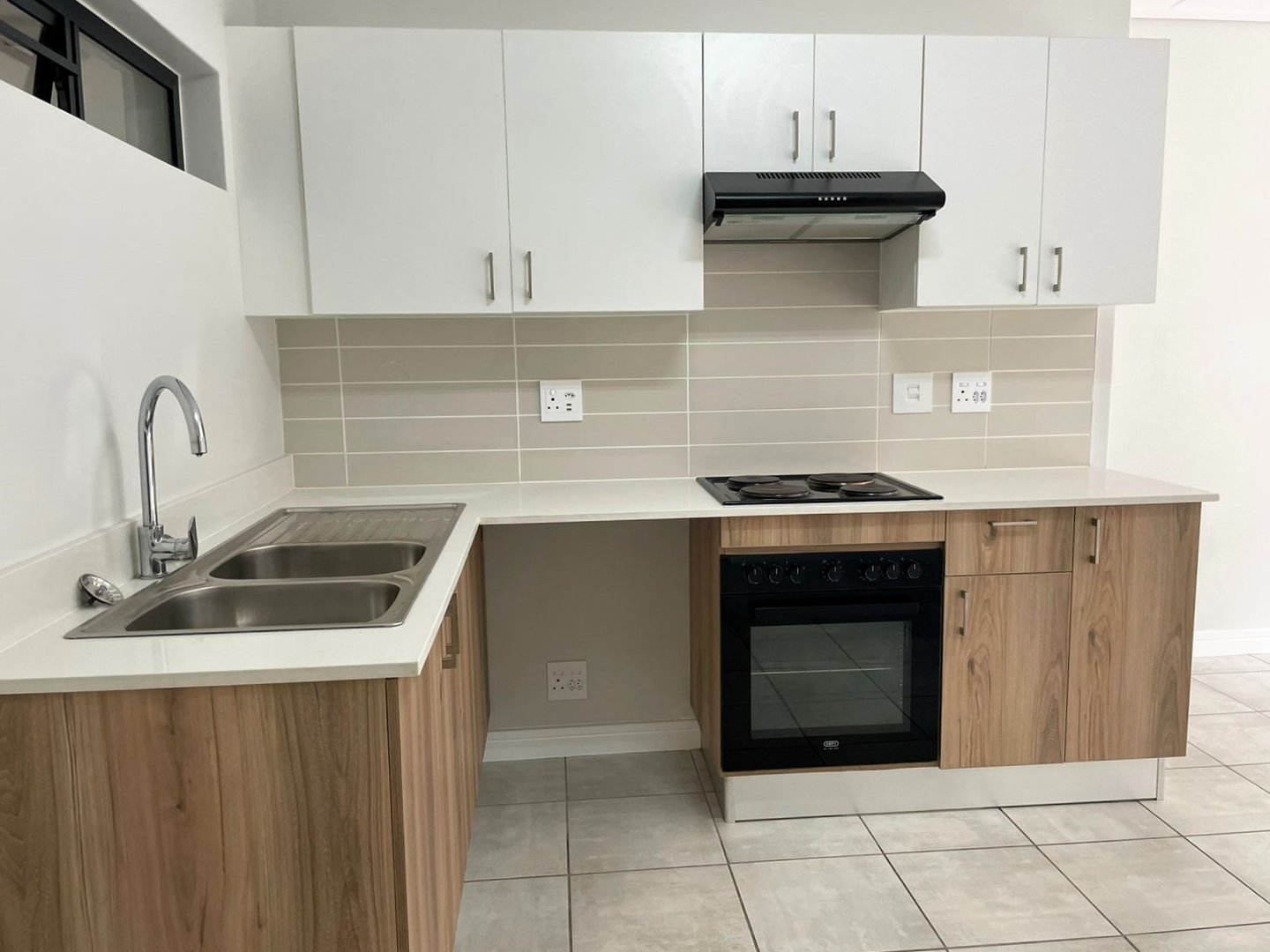 Step into a world of modern elegance as you enter the kitchen, adorned with quartz stone countertops, contemporary built-in cupboards, including an electric oven, hob, and extractor.