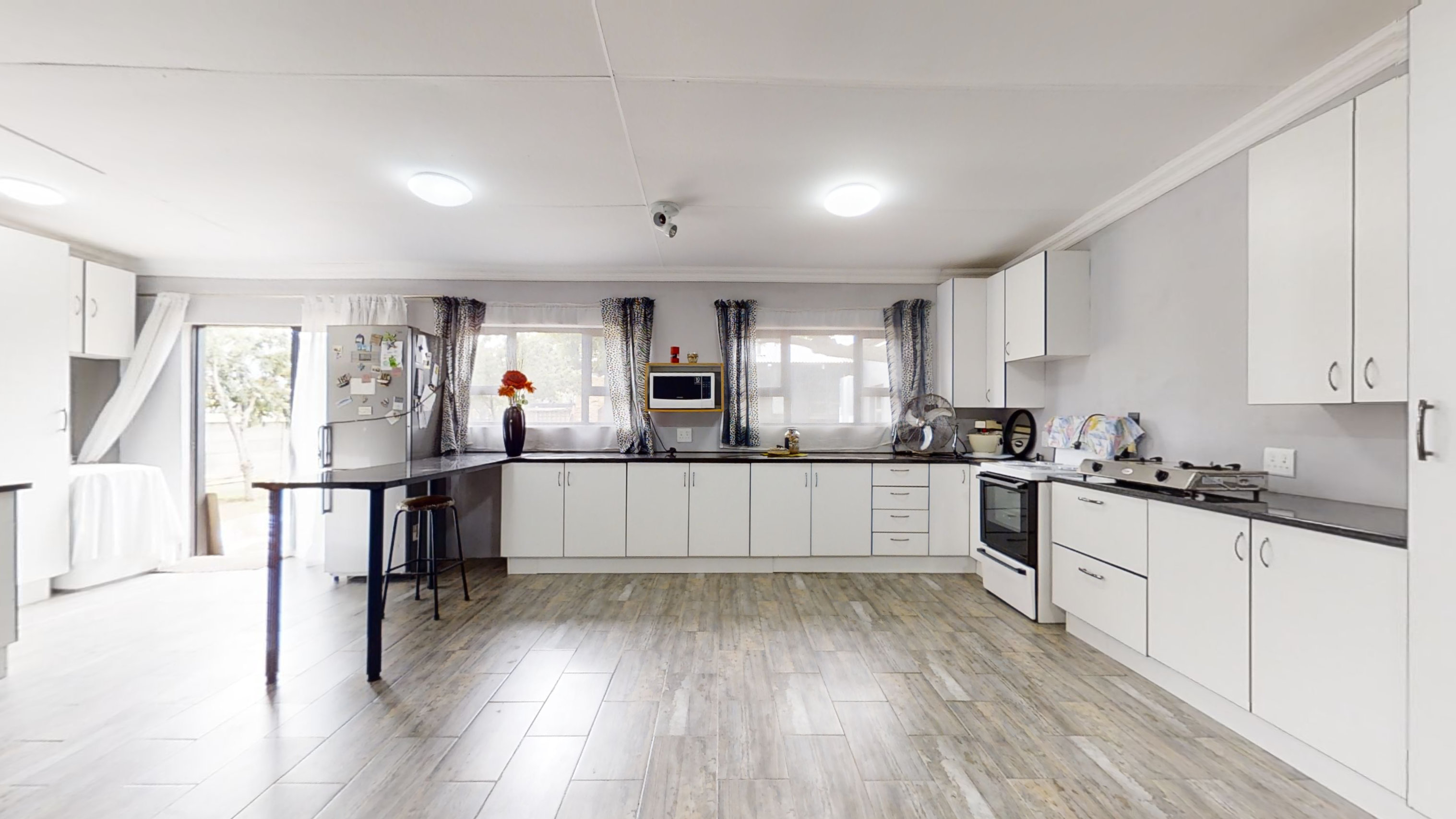 Adding exceptional versatility, the property includes a separate one-bedroom flatlet with an open-plan kitchen, lounge, and dining area. The flatlet offers a spacious bedroom with wall-to-wall cupboards, along with a bathroom and its own laundry area — ideal for extended family, guests, or rental income.