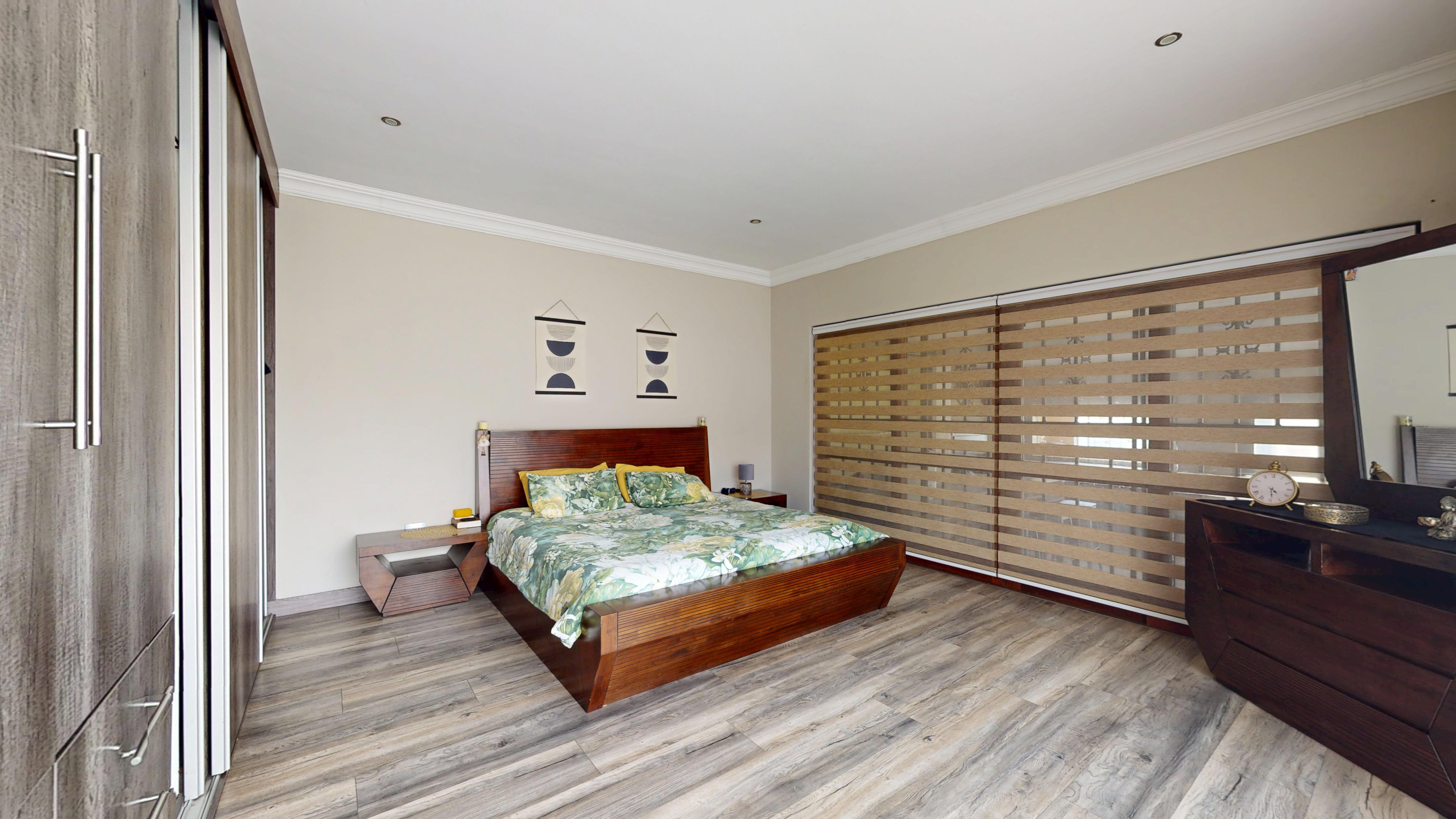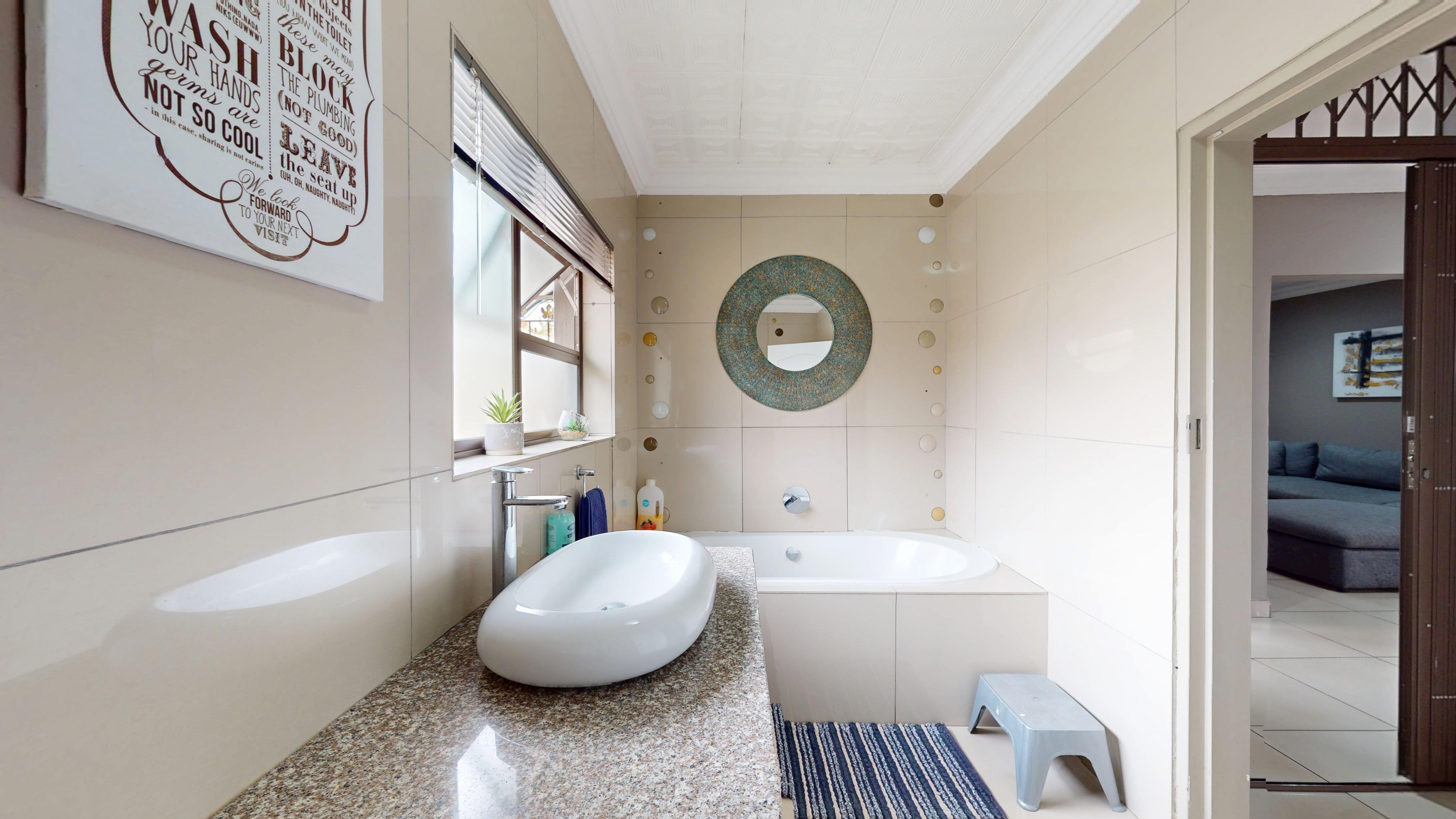 3 Spacious Bedrooms with built-in cupboards (Master bedroom with en-suite: freestanding shower, bath, basin & toilet).