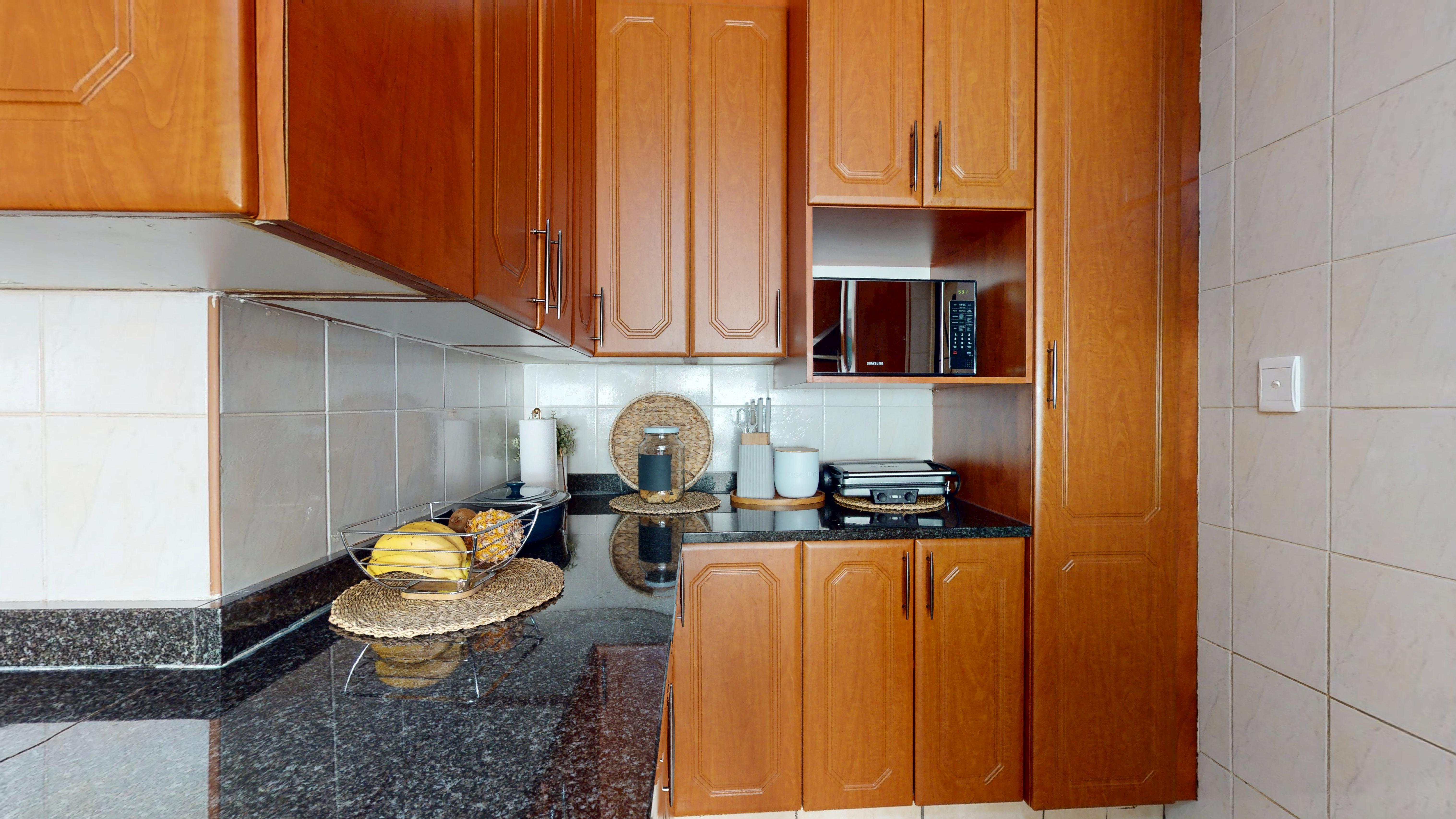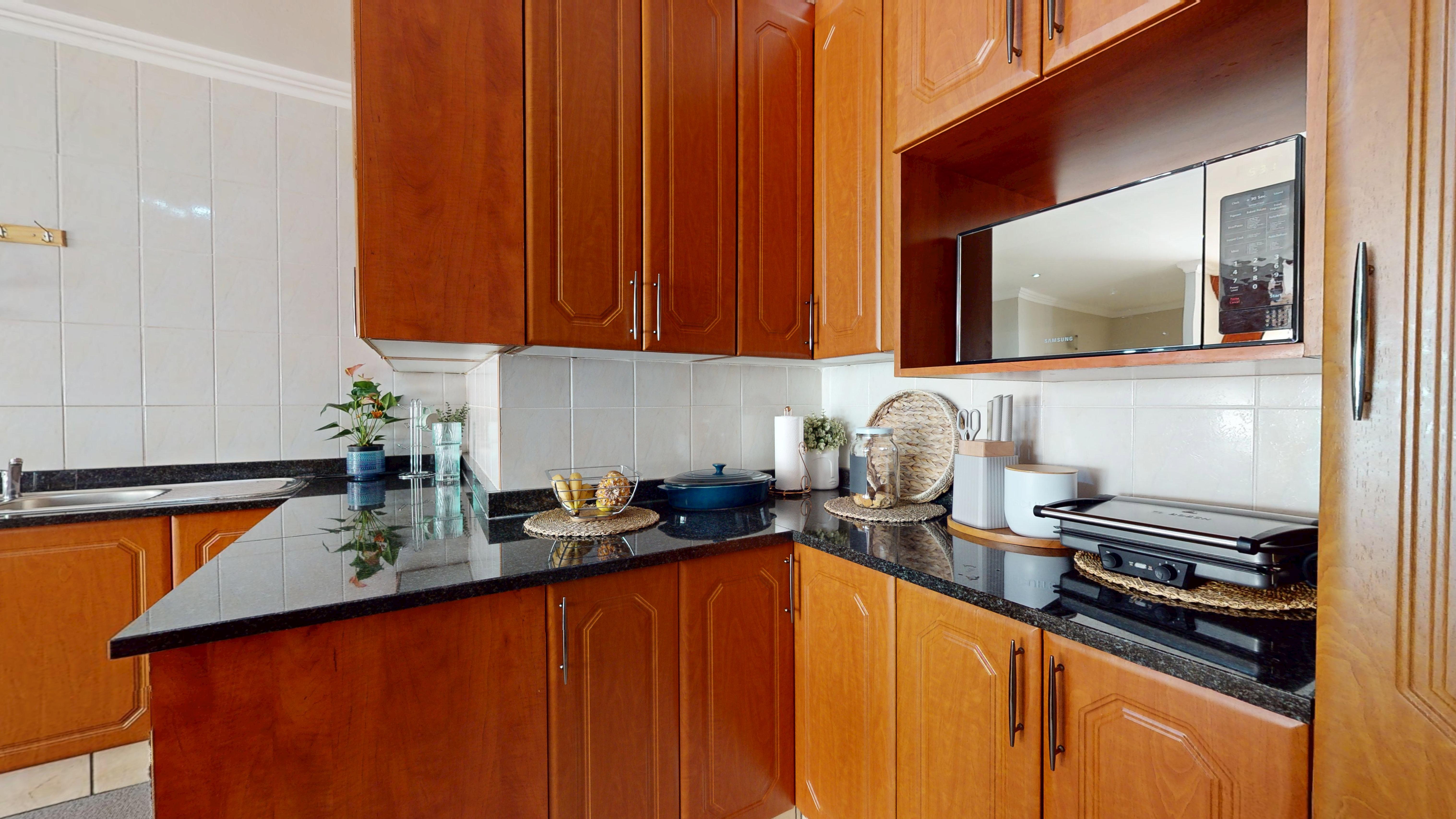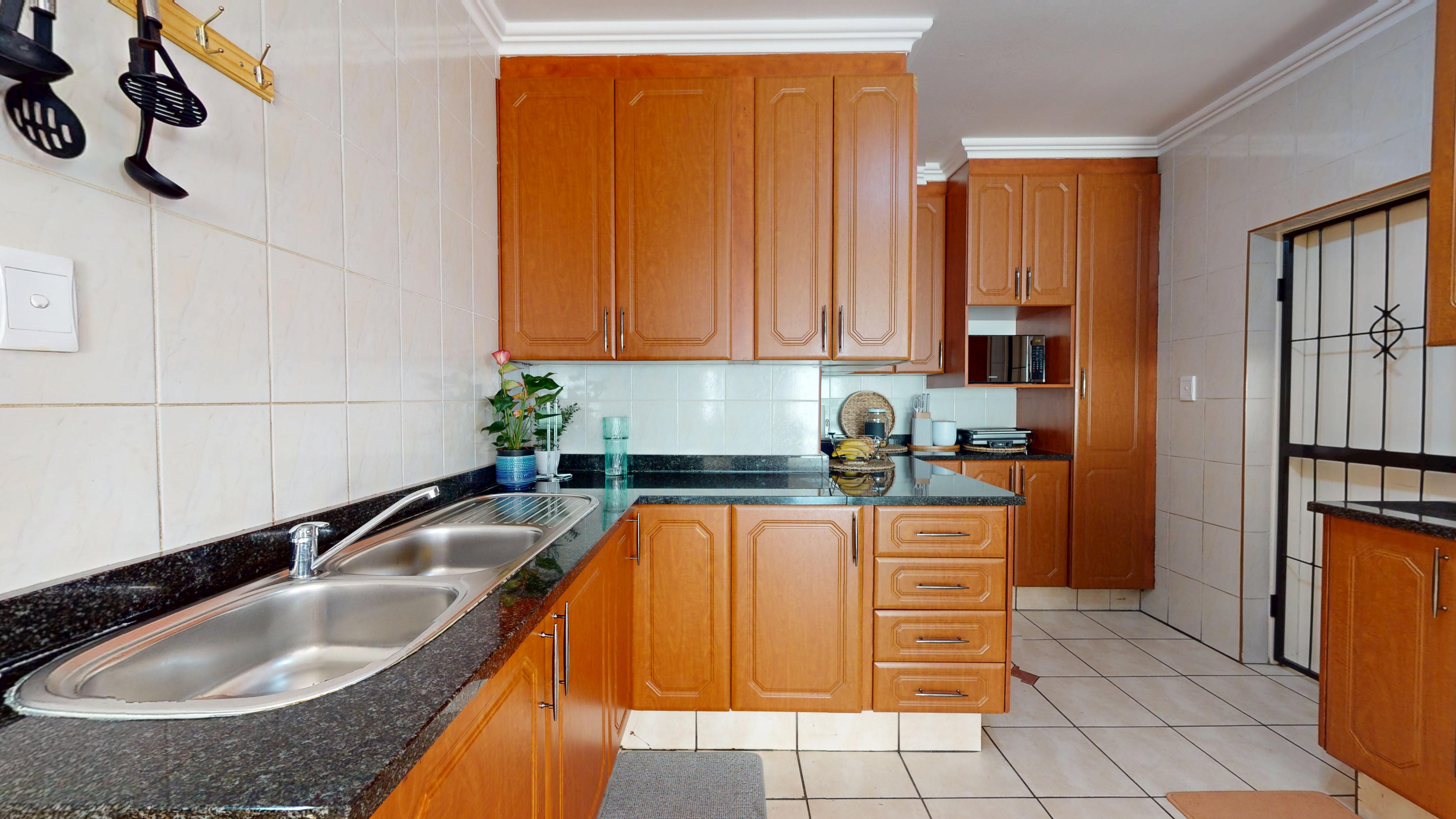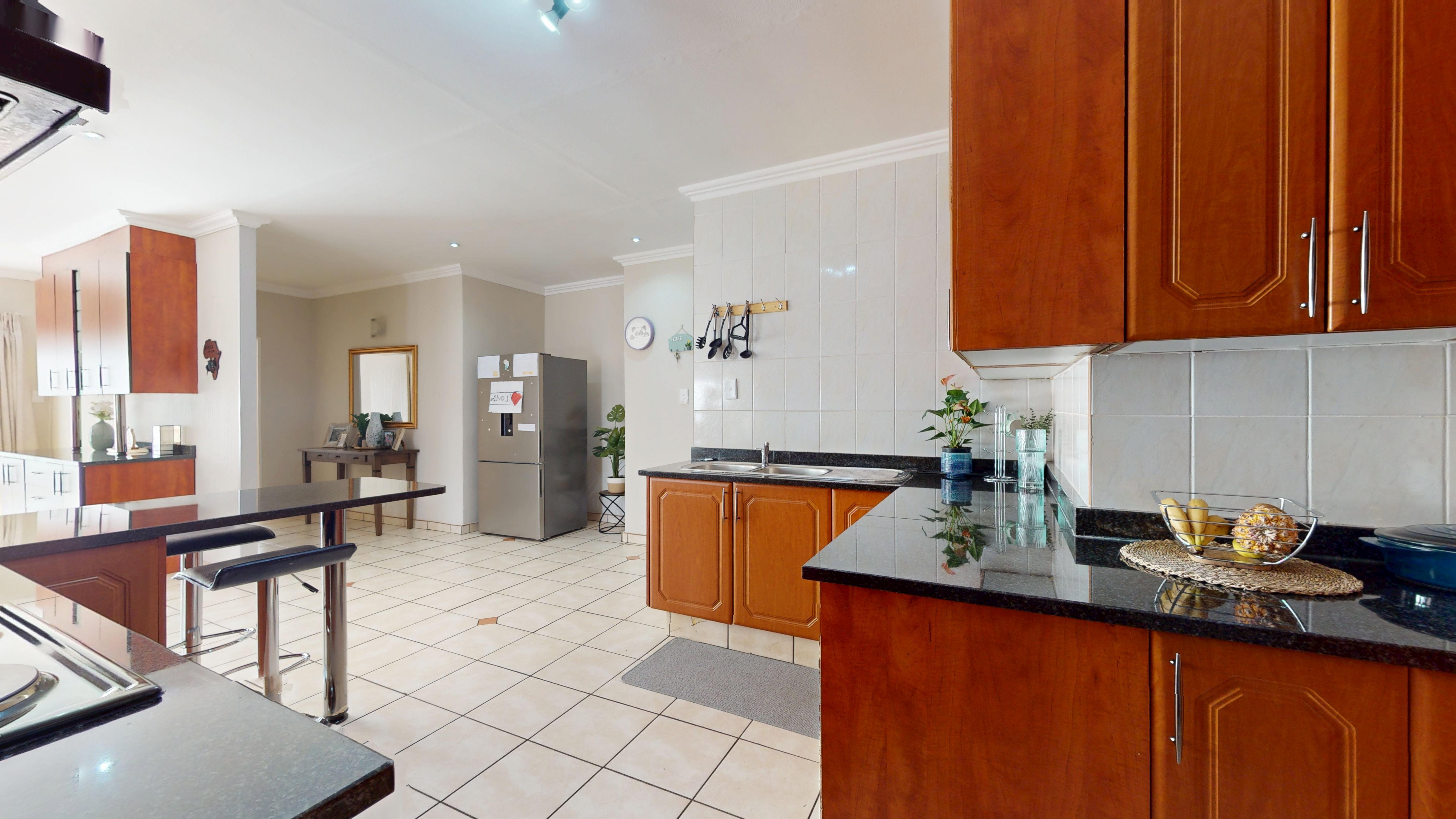 The kitchen is a showstopper—sleek granite countertops, ample cupboard space, and a separate scullery for added functionality make it a dream for any home chef.