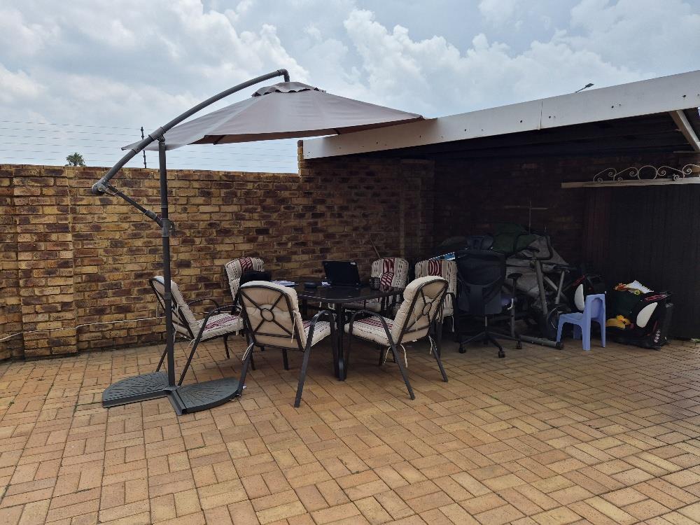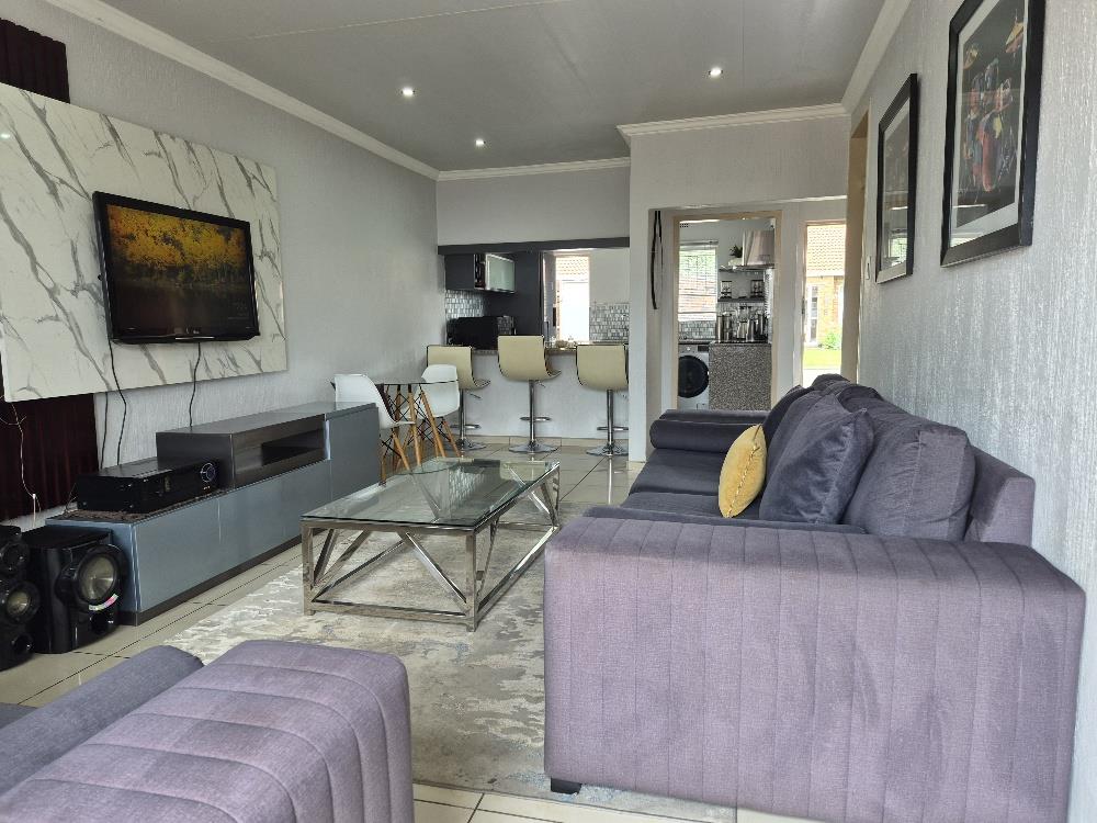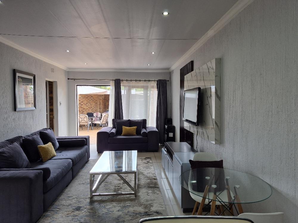 Enjoy the spacious, open-plan lounge that seamlessly extends to a private patio through sliding doors. This outdoor space is perfect for entertaining, complete with a built-in braai area, ideal for hosting friends and family.