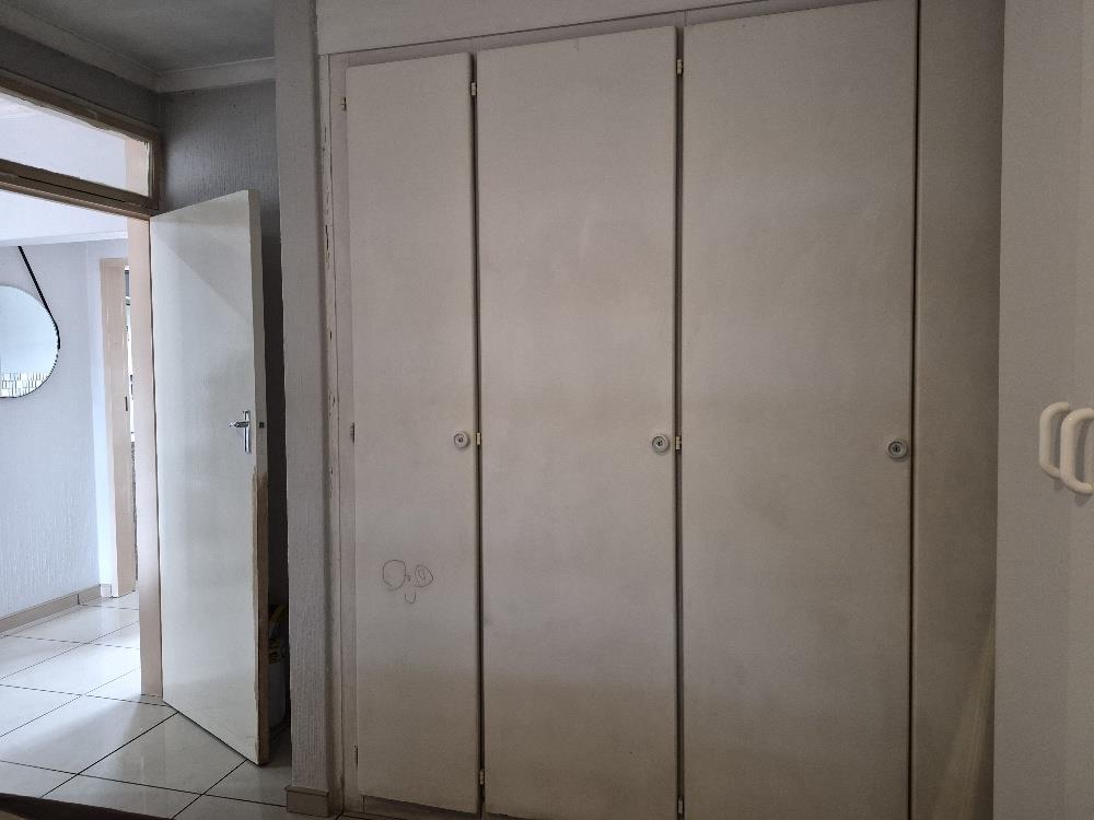 The main bedroom comfortably accommodates a king-sized bed, while the second bedroom is suitable for a double bed. Both bedrooms are equipped with built-in cupboards, providing ample storage space.