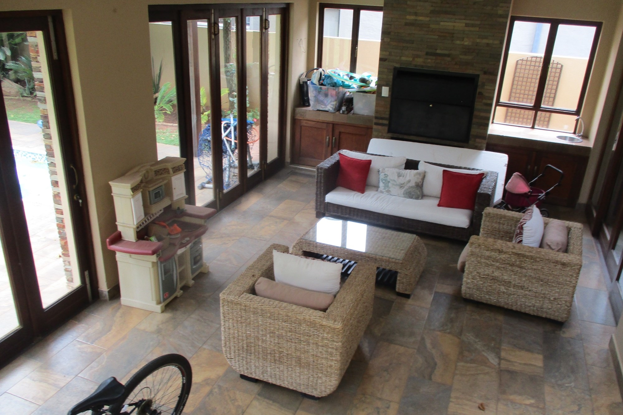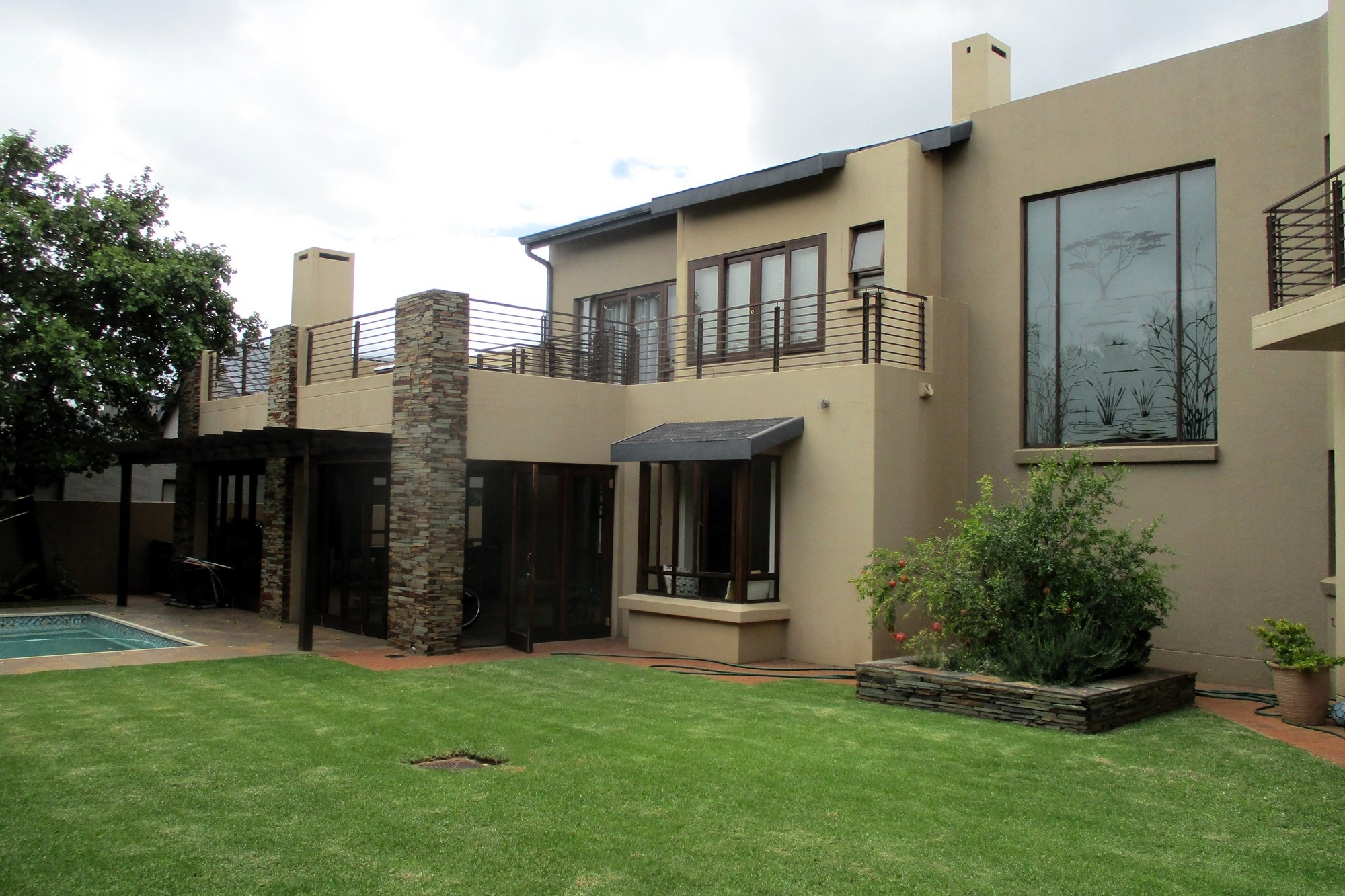 Discover the epitome of luxury living in this stunning home located within the prestigious Serengeti Golf Estate. Upstairs, the master bedroom features a jacuzzi-style bath, double shower, his/hers basin, and walk-in closet, opening into a large balcony with a jacuzzi. Two additional bedrooms, one with a shower, basin, and toilet, and another with a basin, bathtub, and toilet, also boast balconies. Built-in cupboards are conveniently located in the passage.
