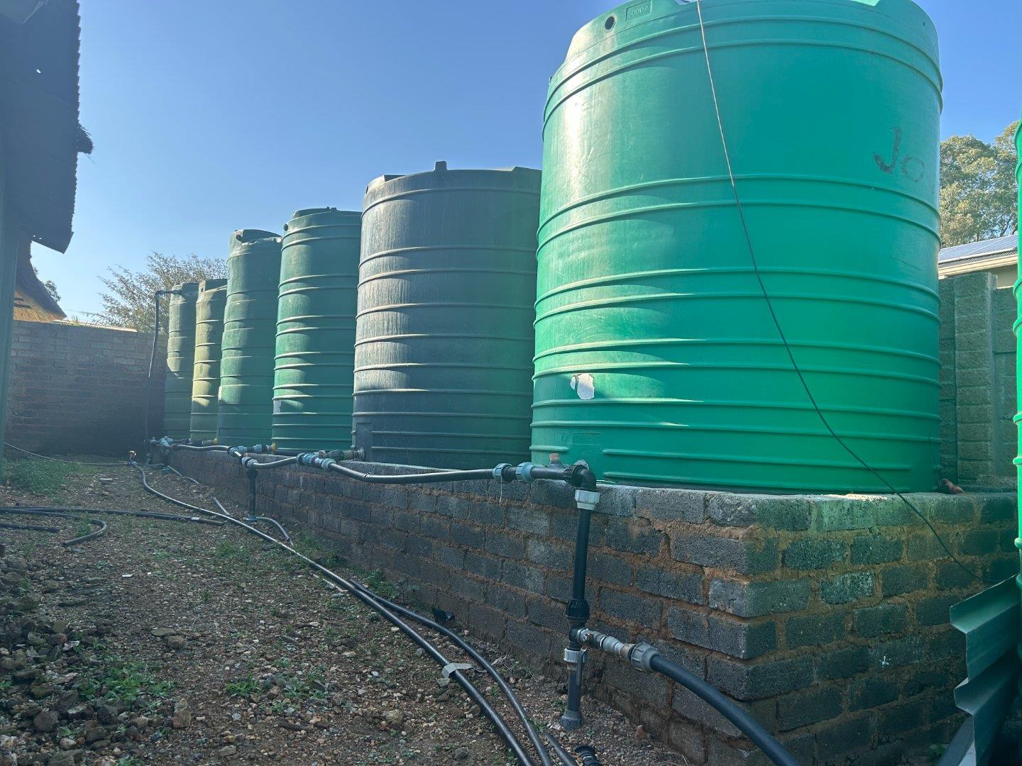 -Seven Jojo tanks of 5000l each which are connected to high pressure pump and borehole system. Additional irrigation and supplies to all seedling areas.