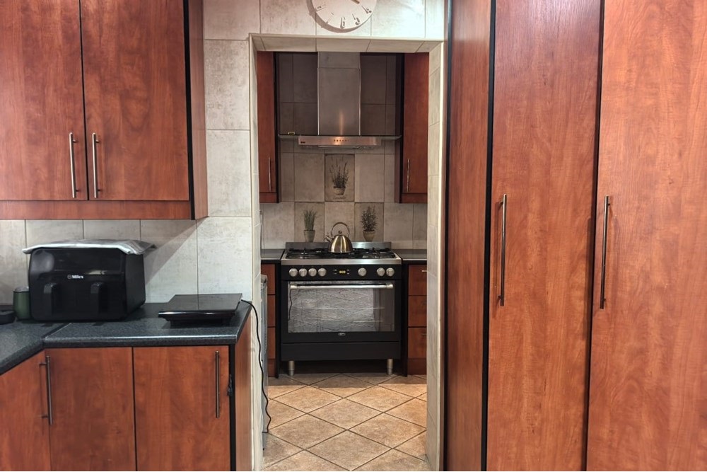 This exquisite home features a sparkling swimming pool, making it the ideal oasis for relaxation and entertainment. The meticulously maintained garden, complete with a water feature and a sturdy fence, provides a private haven for both family and pets. Enjoy al fresco dining with a built-in braai and a generous patio area, all designed for the ultimate outdoor living experience.