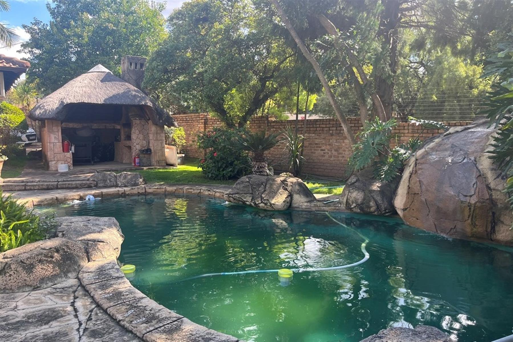 ·Large, lush garden with irrigation, sparkling pool, lapa with built-in braai, and boma area