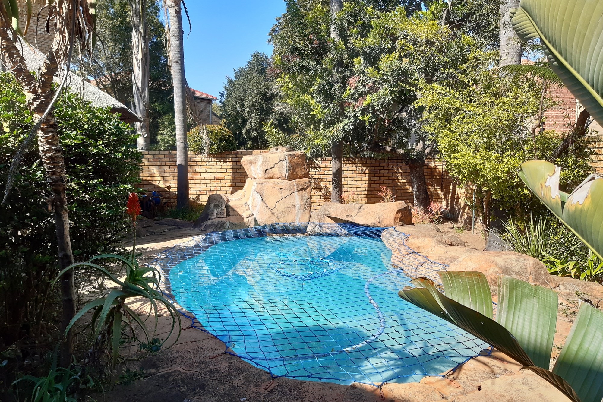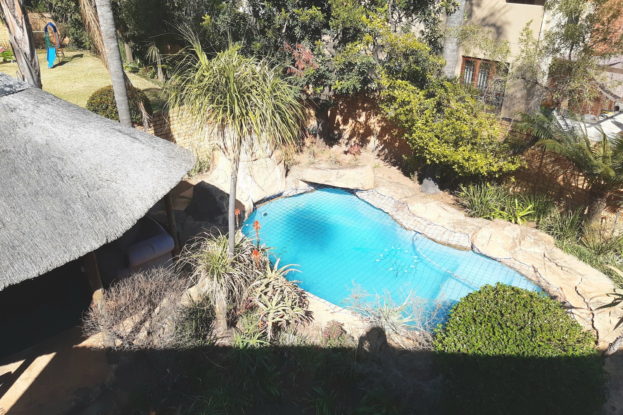 Step outside to indulge in South Africa’s sunny climate with a stunning swimming pool, beautifully landscaped garden, and a charming roof terrace perfect for relaxation. The large balcony provides panoramic views, while the garage with an automatic door comfortably houses two cars—a true haven for car enthusiasts.