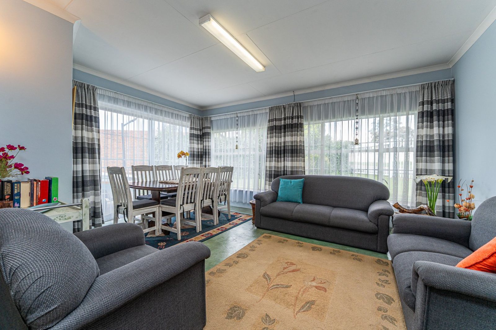 The kitchen is functional and well laid out, with a separate laundry area that keeps your appliances tucked away and your home organised. The open-plan lounge, dining room and TV room create a connected atmosphere ideal for family time, gatherings or simply relaxing after a long day.