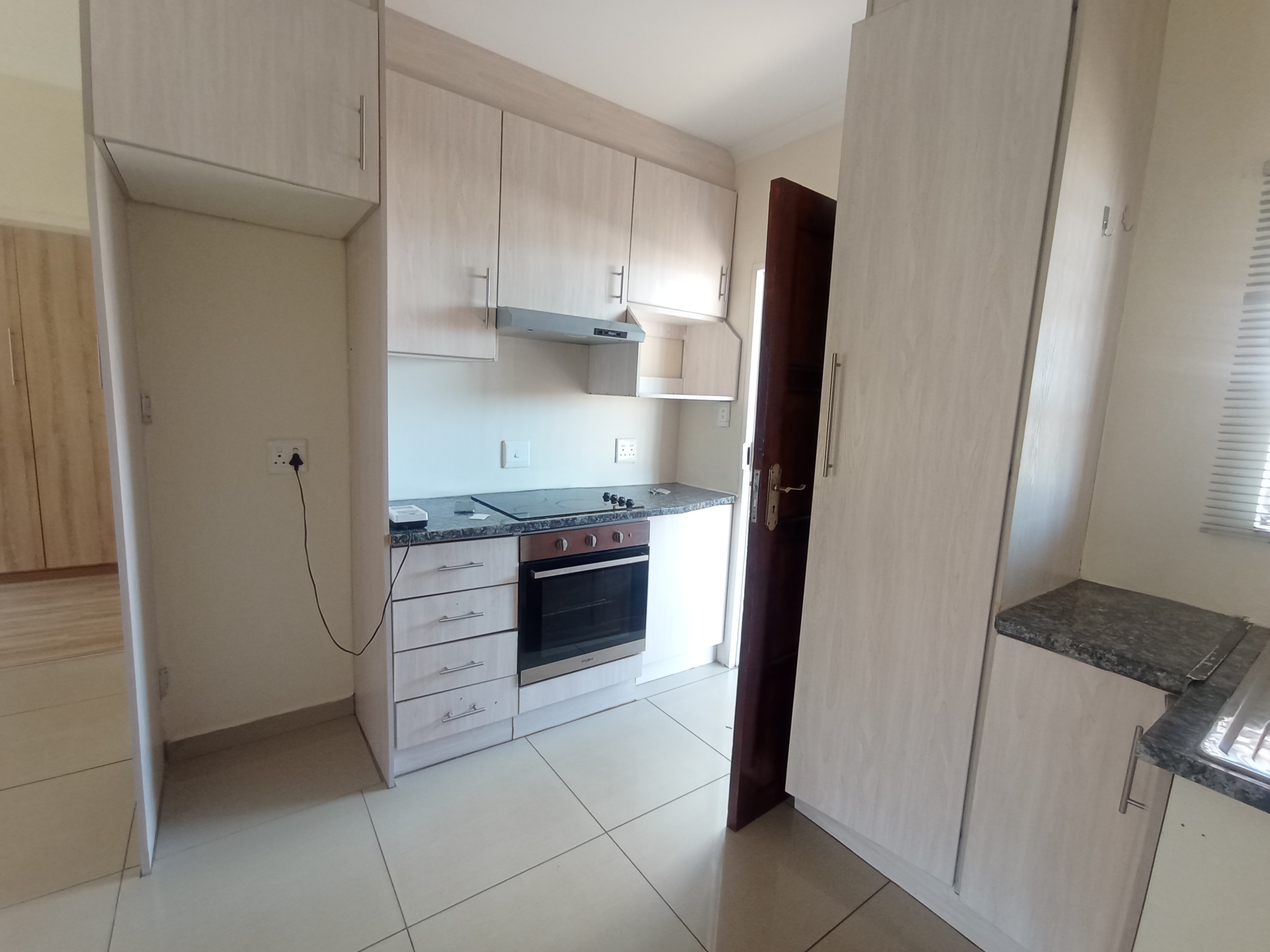 The open-plan living area creates a welcoming atmosphere, seamlessly connecting the lounge and kitchen to provide a practical and comfortable space for everyday living. The kitchen offers ample cupboard space and functionality.