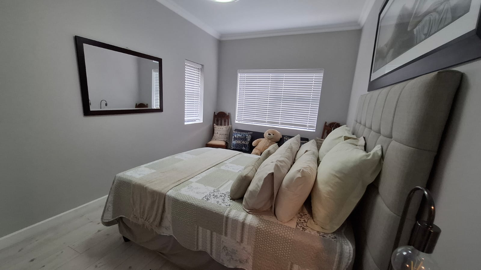 Sleek laminate flooring, refined detailing, and an abundance of natural light define the interiors. A sophisticated kitchen with a statement island anchors the home, ideal for both everyday living and elegant entertaining.
