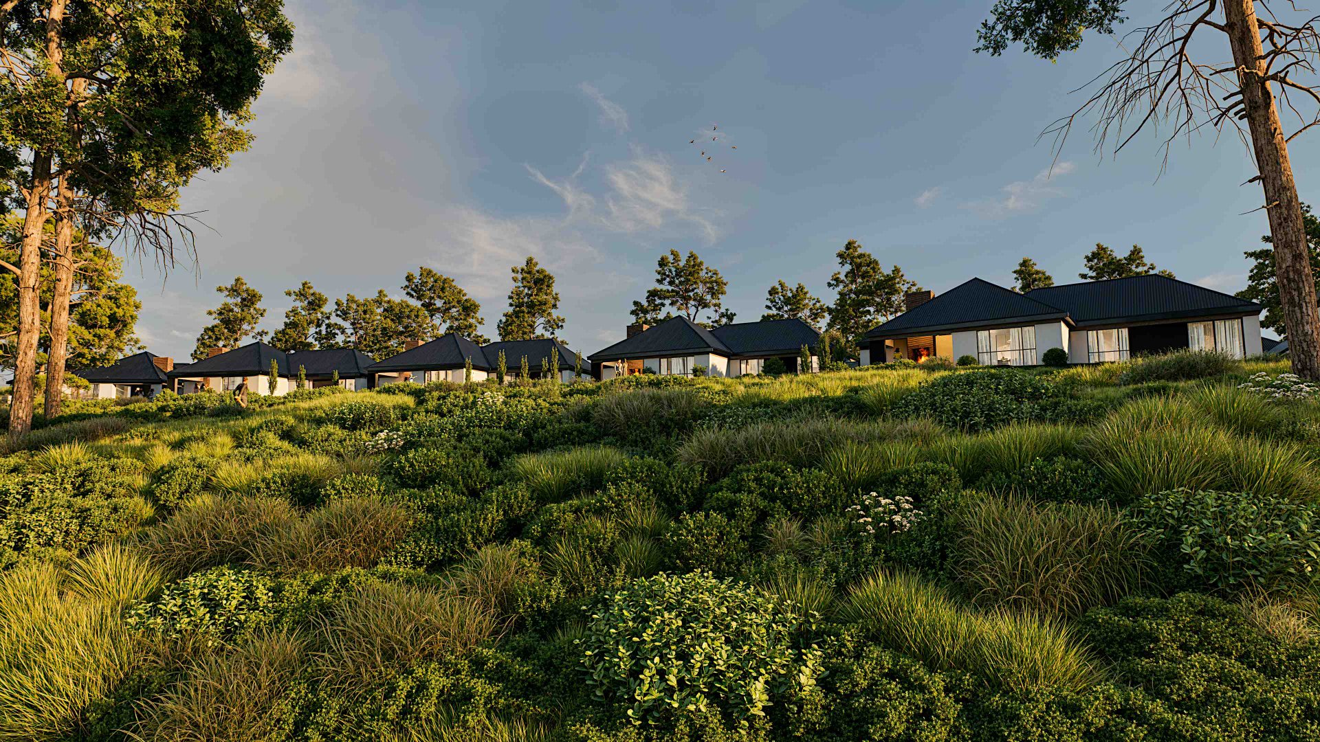 The modern, north-facing homes are thoughtfully designed with light-filled interiors, practical layouts, and a strong emphasis on indoor–outdoor living. Approximately one-third of the estate remains a protected natural area, featuring a raised boardwalk through indigenous vegetation leading to a stream and gazebo—perfect for birdwatching and relaxed outdoor living.