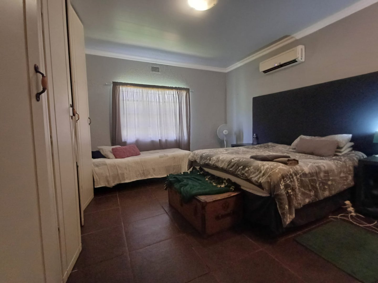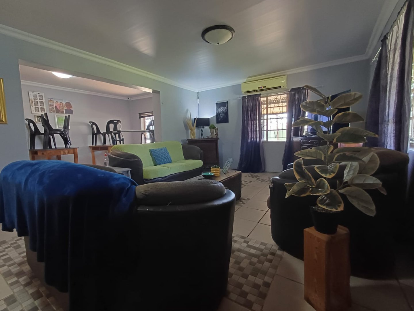 Featuring three generously sized bedrooms, the main bedroom includes an air conditioner and a private en-suite bathroom. A second bathroom ensures ample convenience for the rest of the household. The inviting living room, complete with air conditioning, flows seamlessly into the dining area and a well-equipped kitchen, which boasts built-in cupboards and an air conditioner for added comfort. A scullery and laundry room add to the practicality of this thoughtfully designed home.
