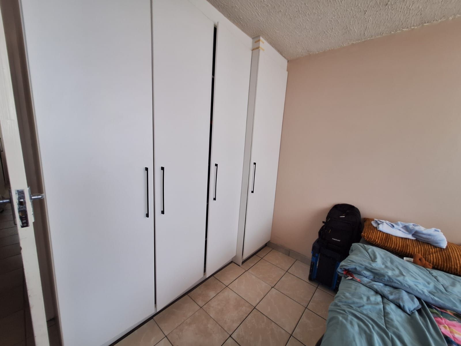 The flat is in excellent condition, featuring a neatly tiled floor, stylish kitchen cupboards, and built-in cupboards in the bedrooms for convenient storage.