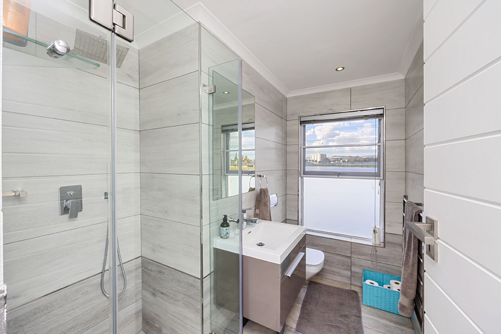 - Ensuite Bedrooms, Main suite with balcony and breathtaking Table Mountain and lagoon views. Full en-suite with double vanity, two additional guest bedrooms, each with modern en-suite bathrooms. All bathrooms include heated towel rails.