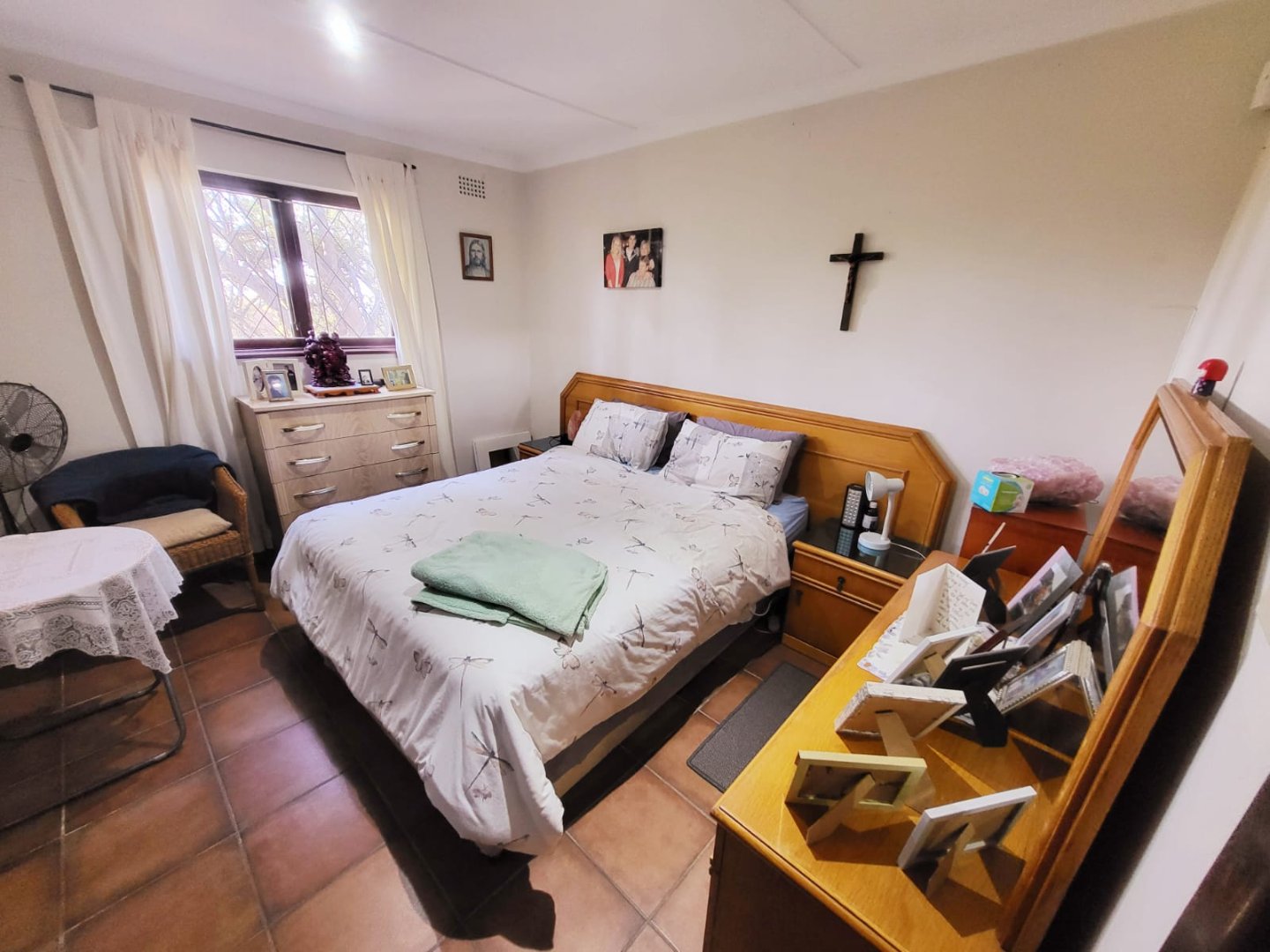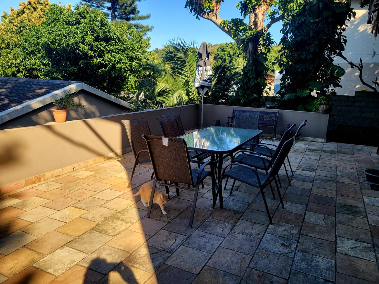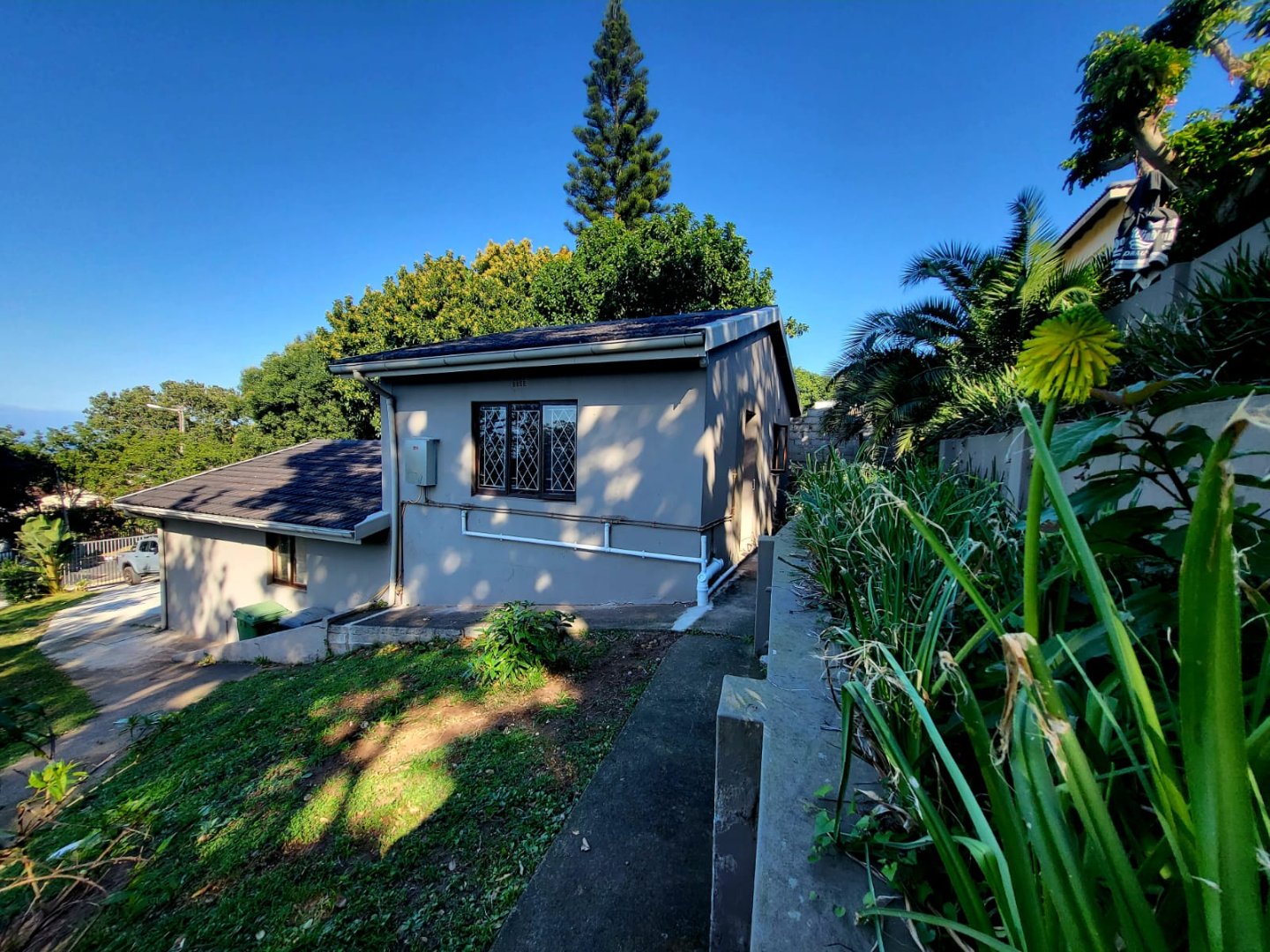 The property is serviced with electric fence and has 2 entrances, one in front and the other at the back. Large shade trees grace the neat garden.