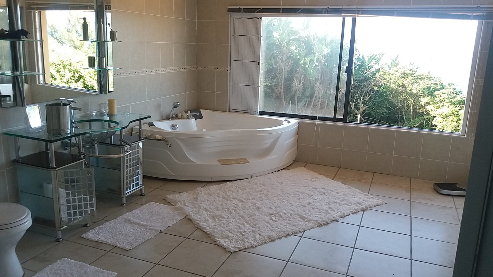 There are 6 bedrooms and 4 bathrooms with the huge main bedroom with en-suite on the upper level! On this level is also a lounge that leads to a balcony with breathtaking views of the coastline!