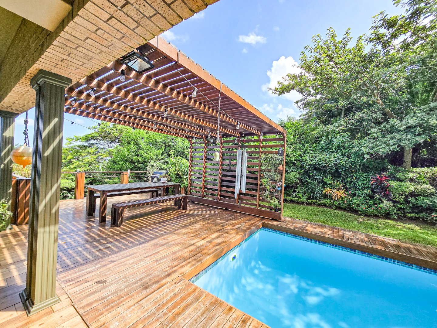 Outside, the pool is set in a beautiful wooden deck, offering amazing views of the ocean—ideal for unwinding or entertaining.