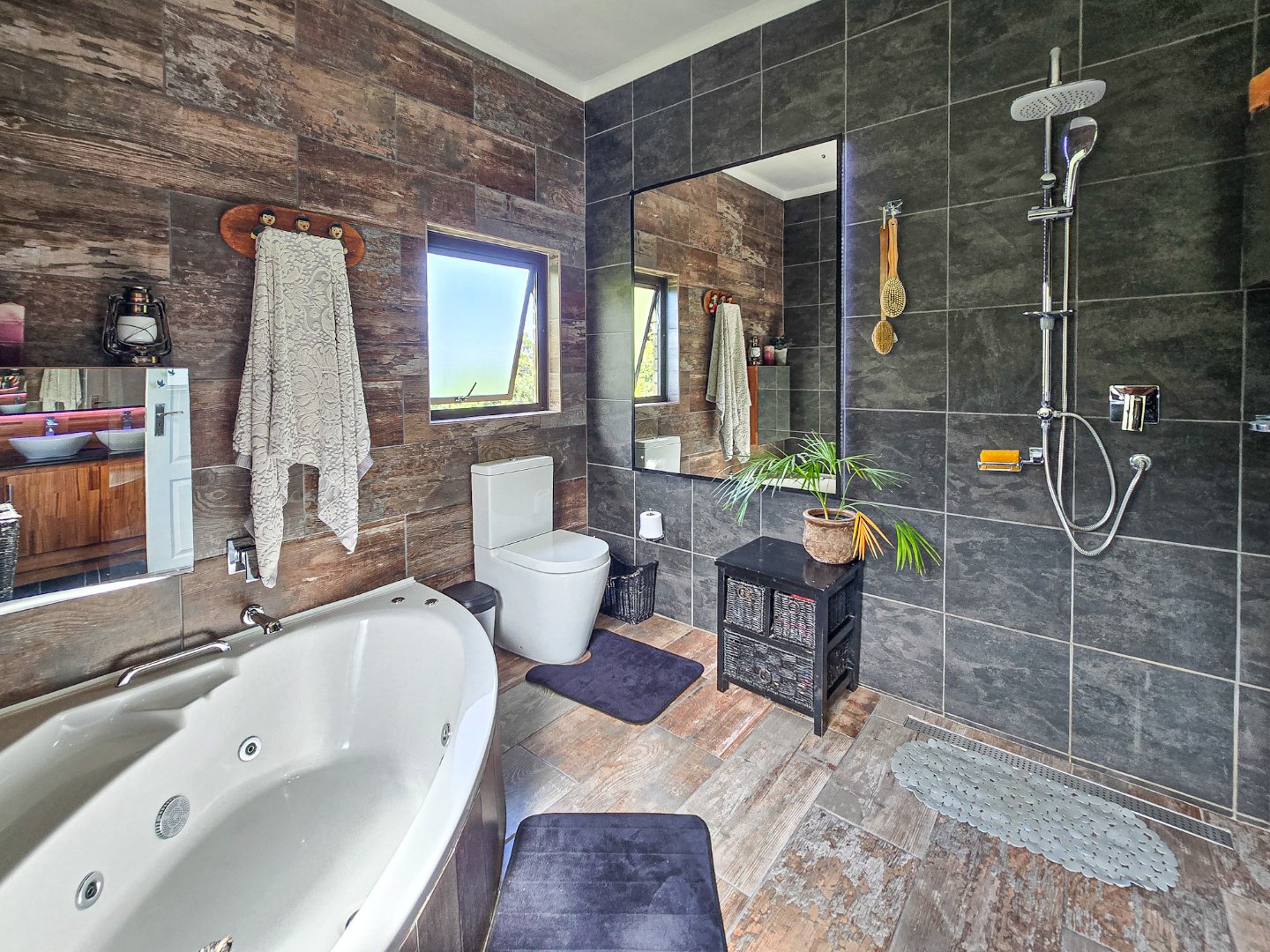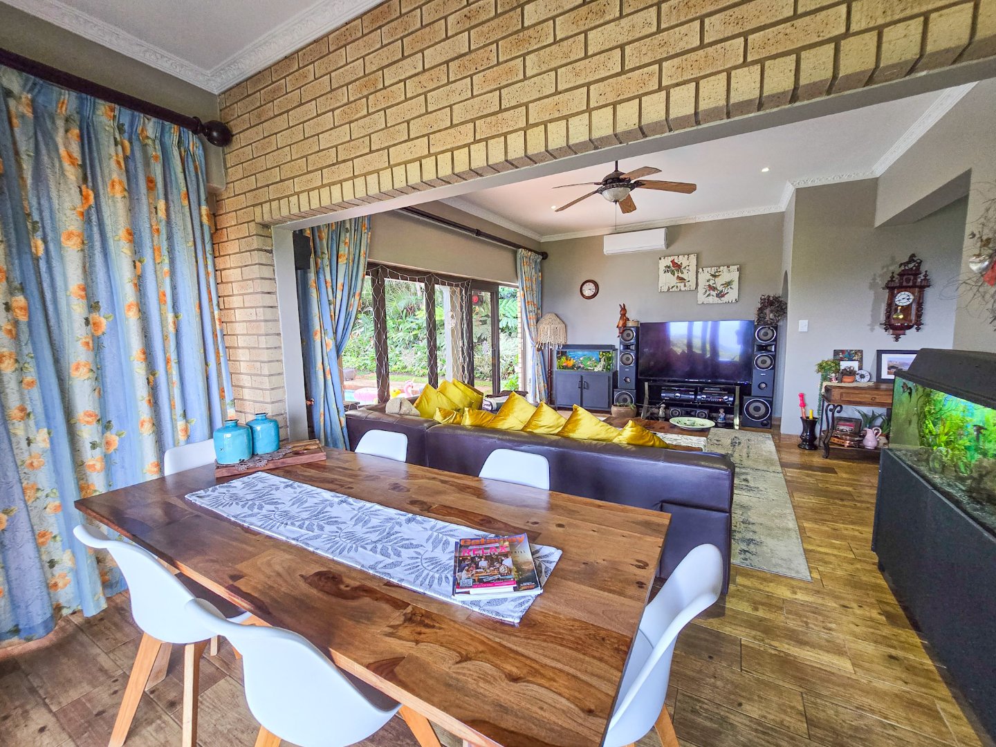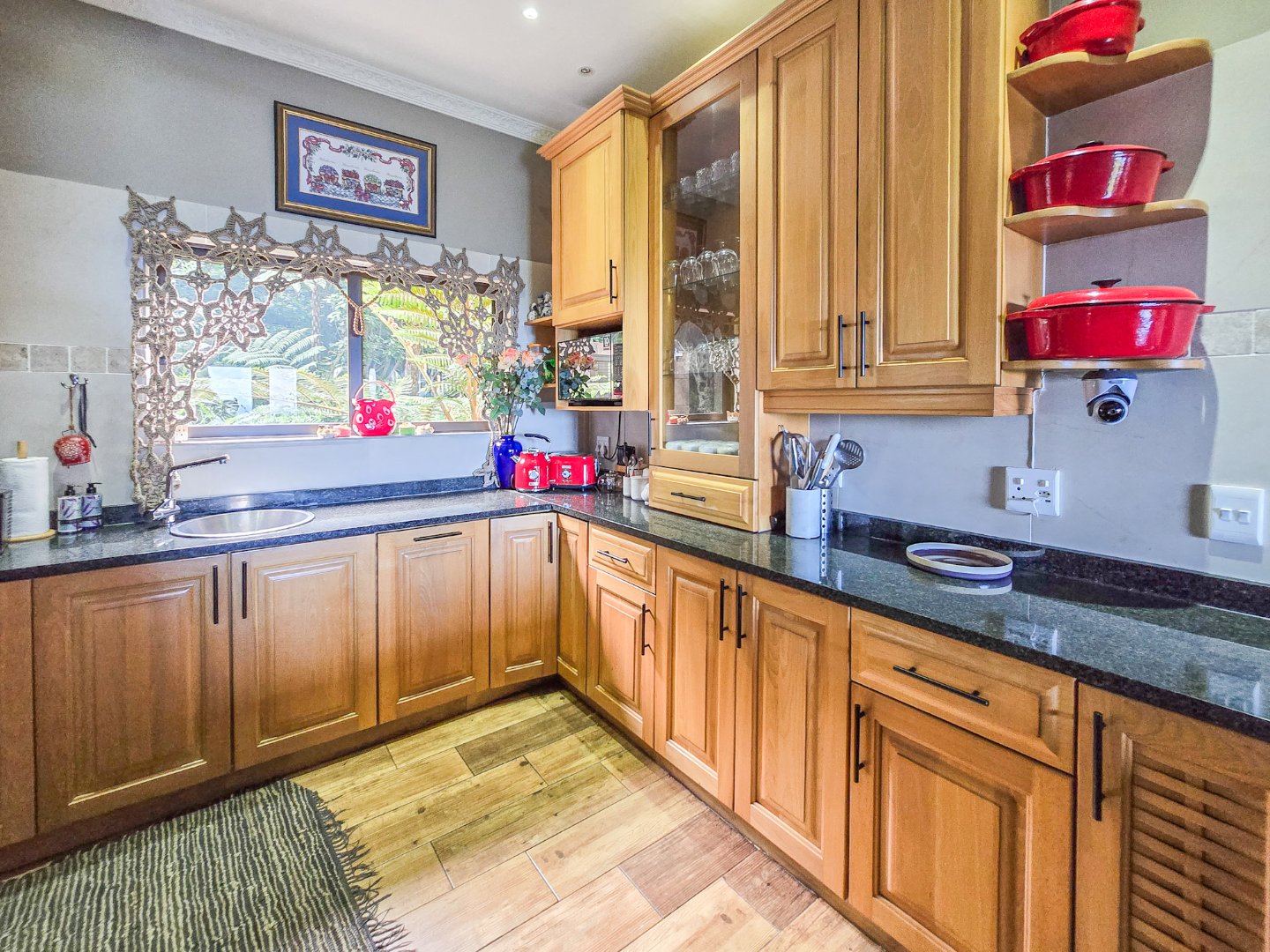 The property is set with a lovely garden and benefits from sustainability features, including a 5000-litre JoJo tank connected to a borehole pumping 14,000 litres per hour, as well as 18 solar panels and a 100kW battery system for energy efficiency and peace of mind.