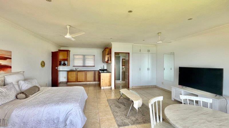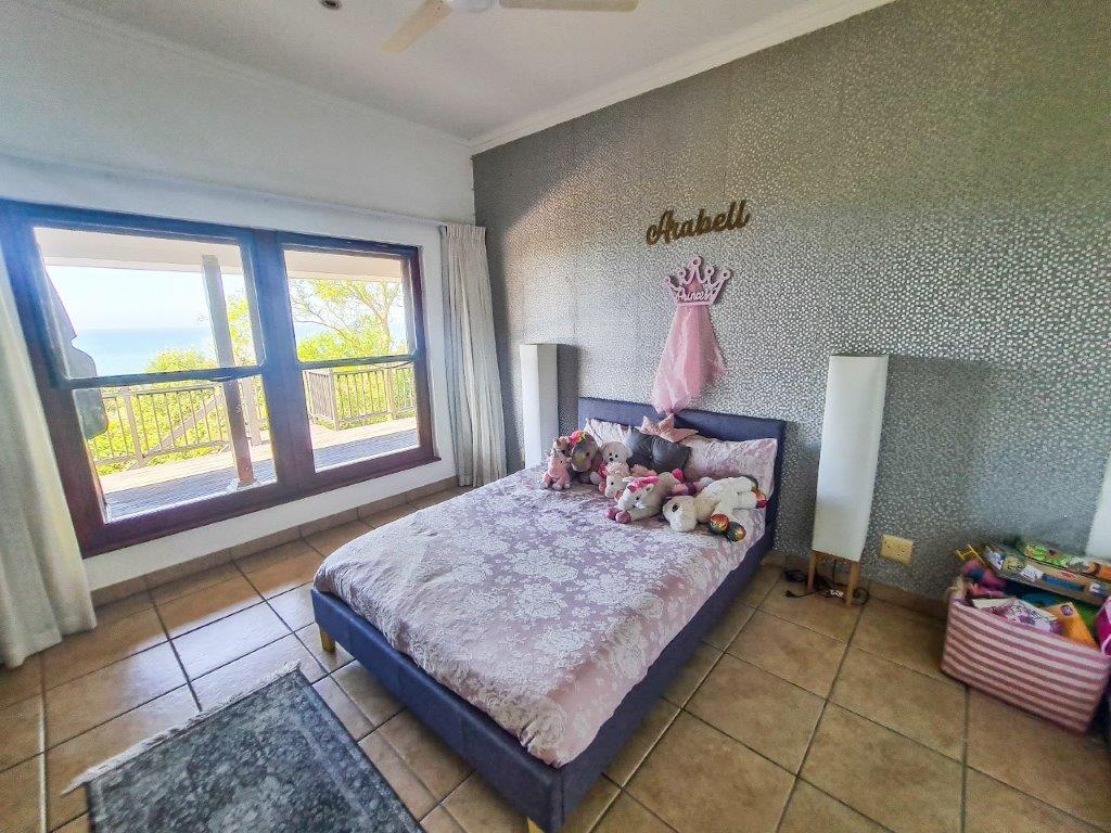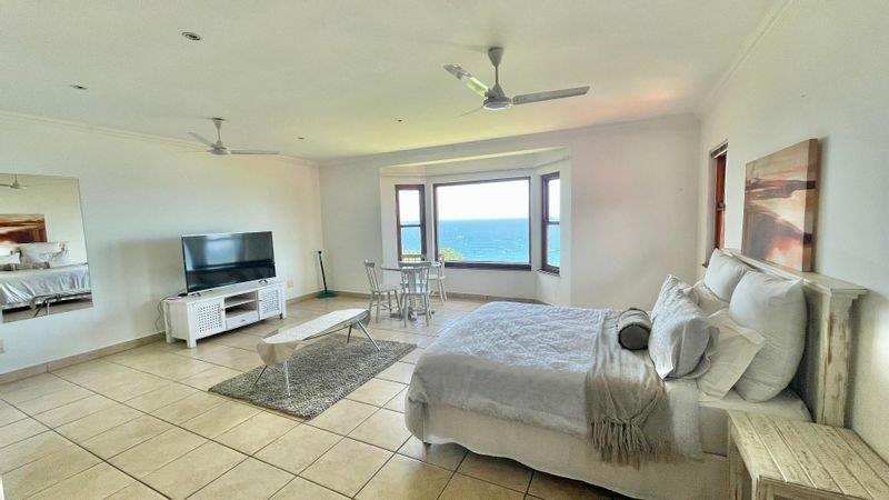 The main part of the house consists of three spacious bedrooms all with en-suites, as well as all having stunning sea views. The main bedroom has built in cupboards as well as a full en-suite, and access to the balcony. The living area opens up to a covered entertainment balcony with incredible sea views via stack doors. On the balcony is a Jacuzzi to relax in and take in your views as well as a large built-in braai. The lounge / dining area boasts a central fireplace. The kitchen has granite tops, hob and oven, ample cupboard space and lovely solid wood finishes.