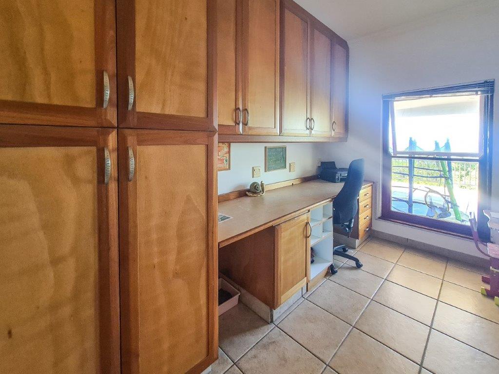 There is a 7000-litre water harvesting system and the estate also has a borehole. The property is 429m2 under roof and the basement below the house is 300m2, that can be utilized in whatever way needed. This is one of the most beautiful nature estates where people don't live on top of each other, and the beach is a short drive away.