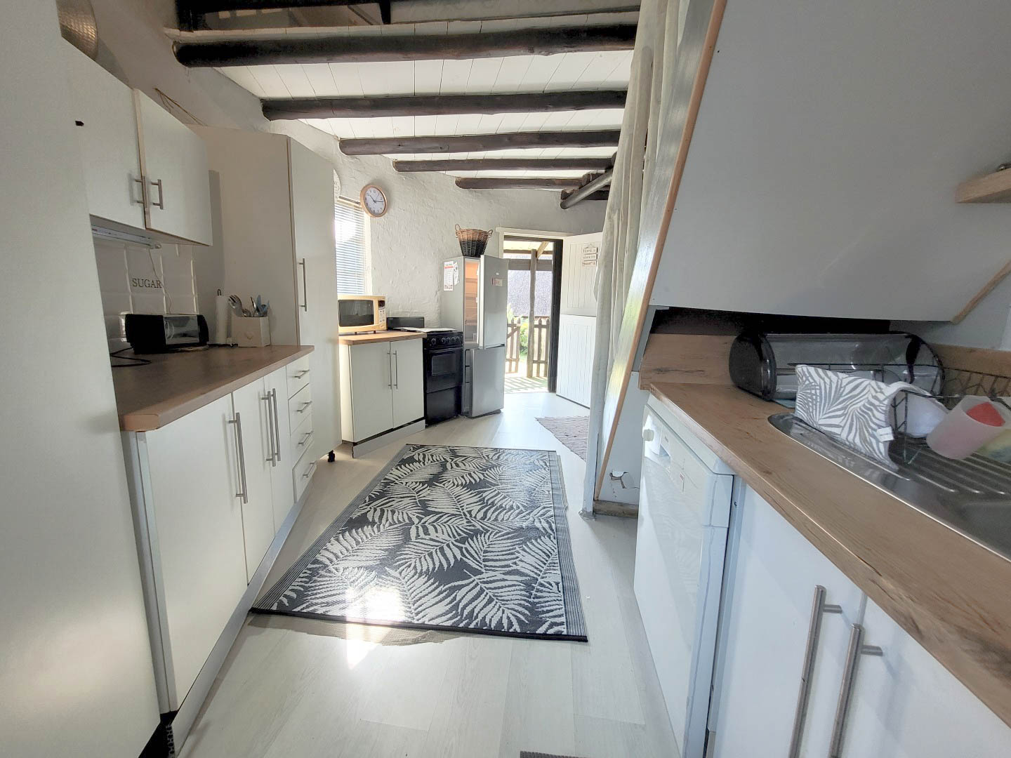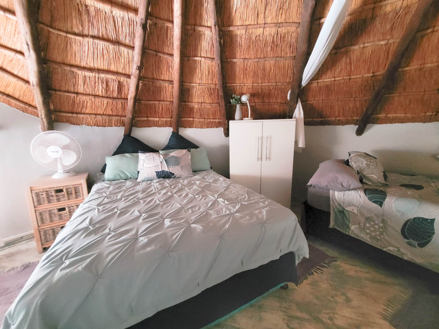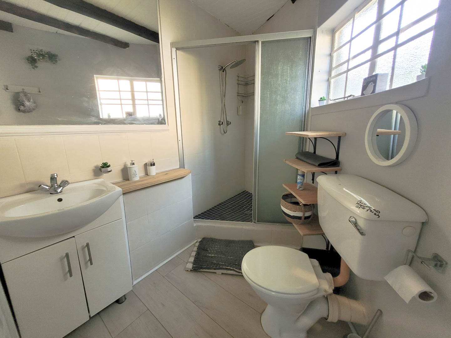 The unit consist of the loft that accommodates 2 x double beds and 1 3/4 bed. There is a room divider to give each other privacy. The neat bathroom has a shower, toilet and basin. There is also an open plan lounge and very well-appointed kitchen. The owners have also made a covered patio which is perfect for friends and family to enjoy lazy days having braais.