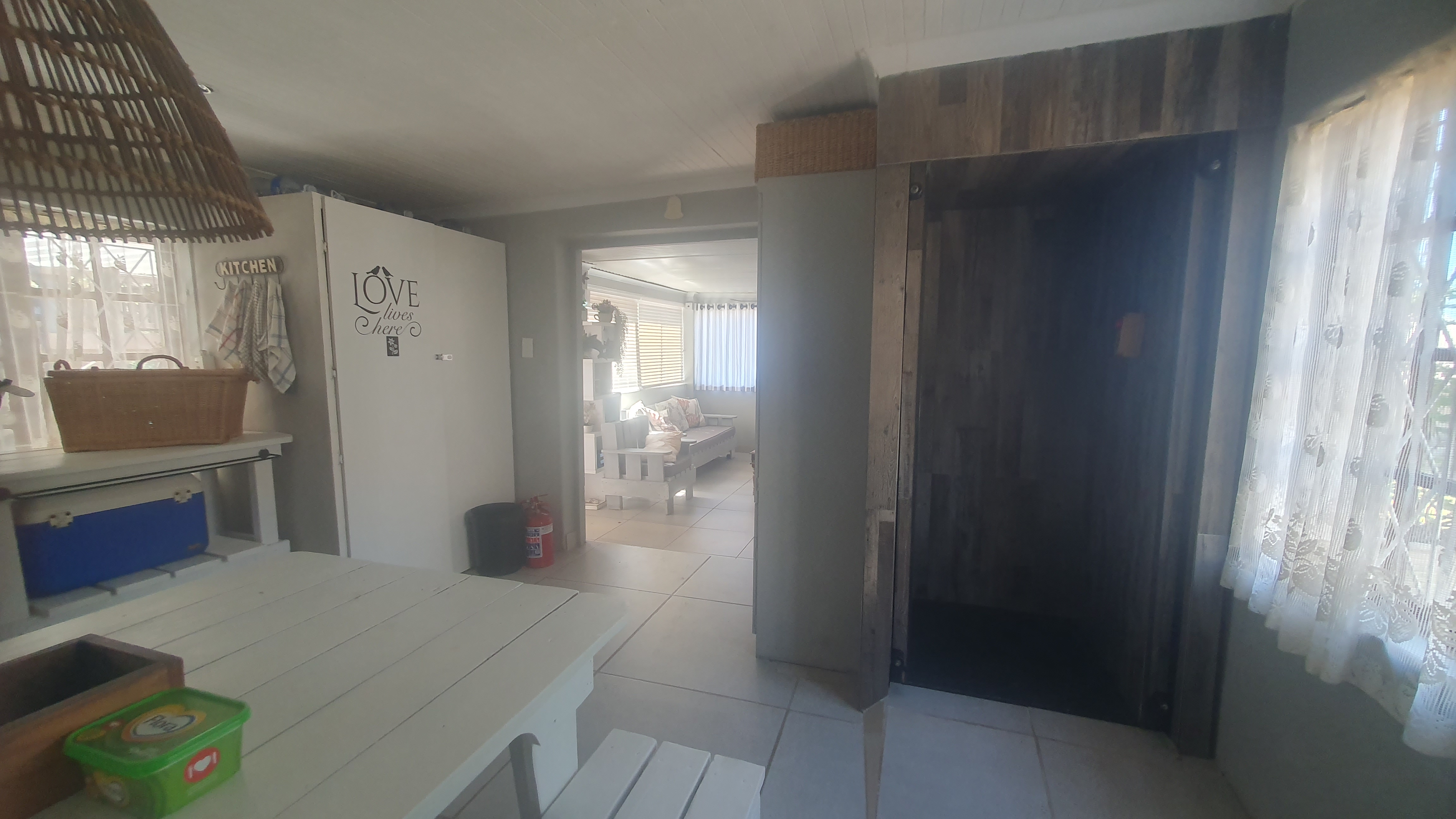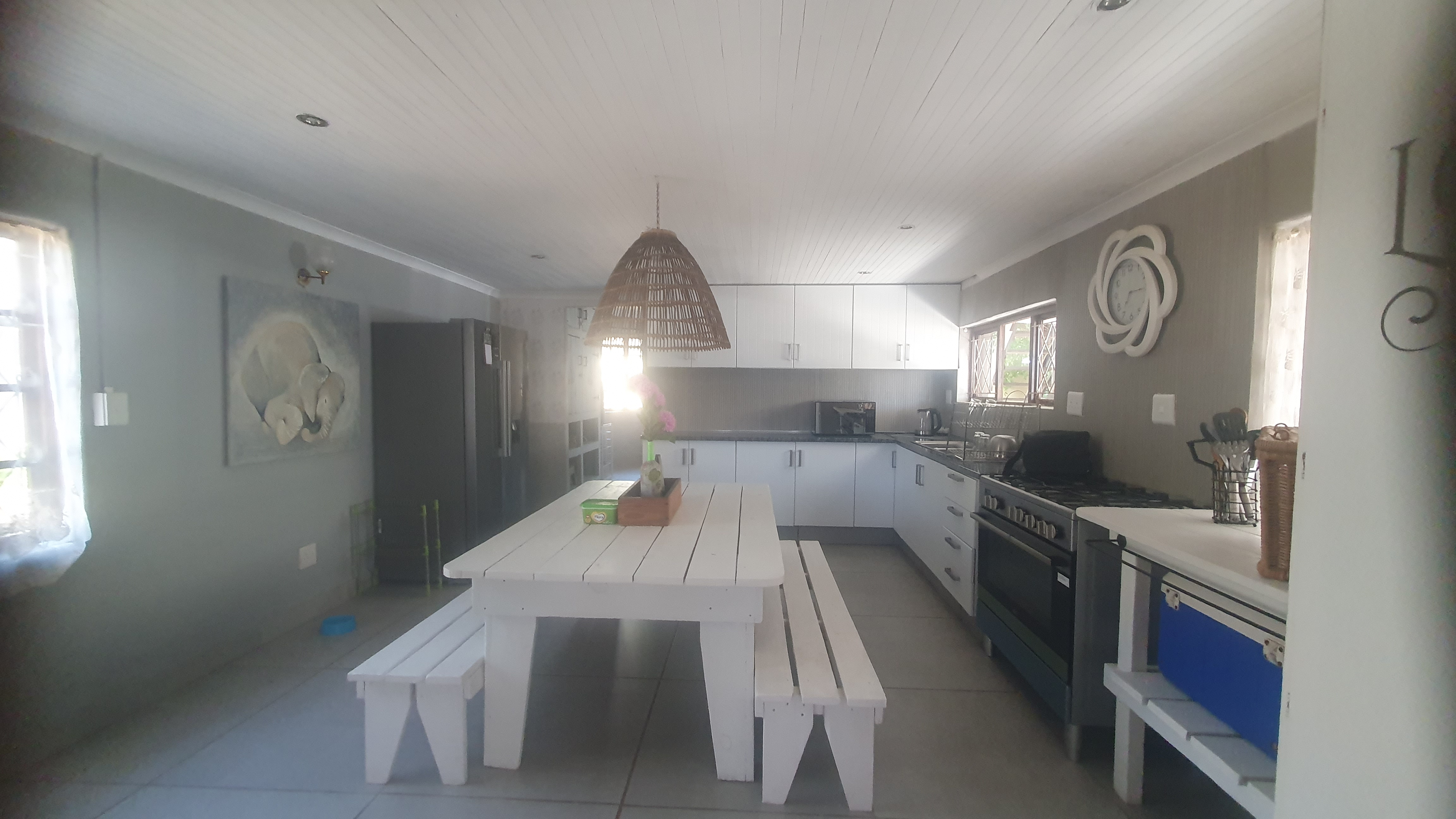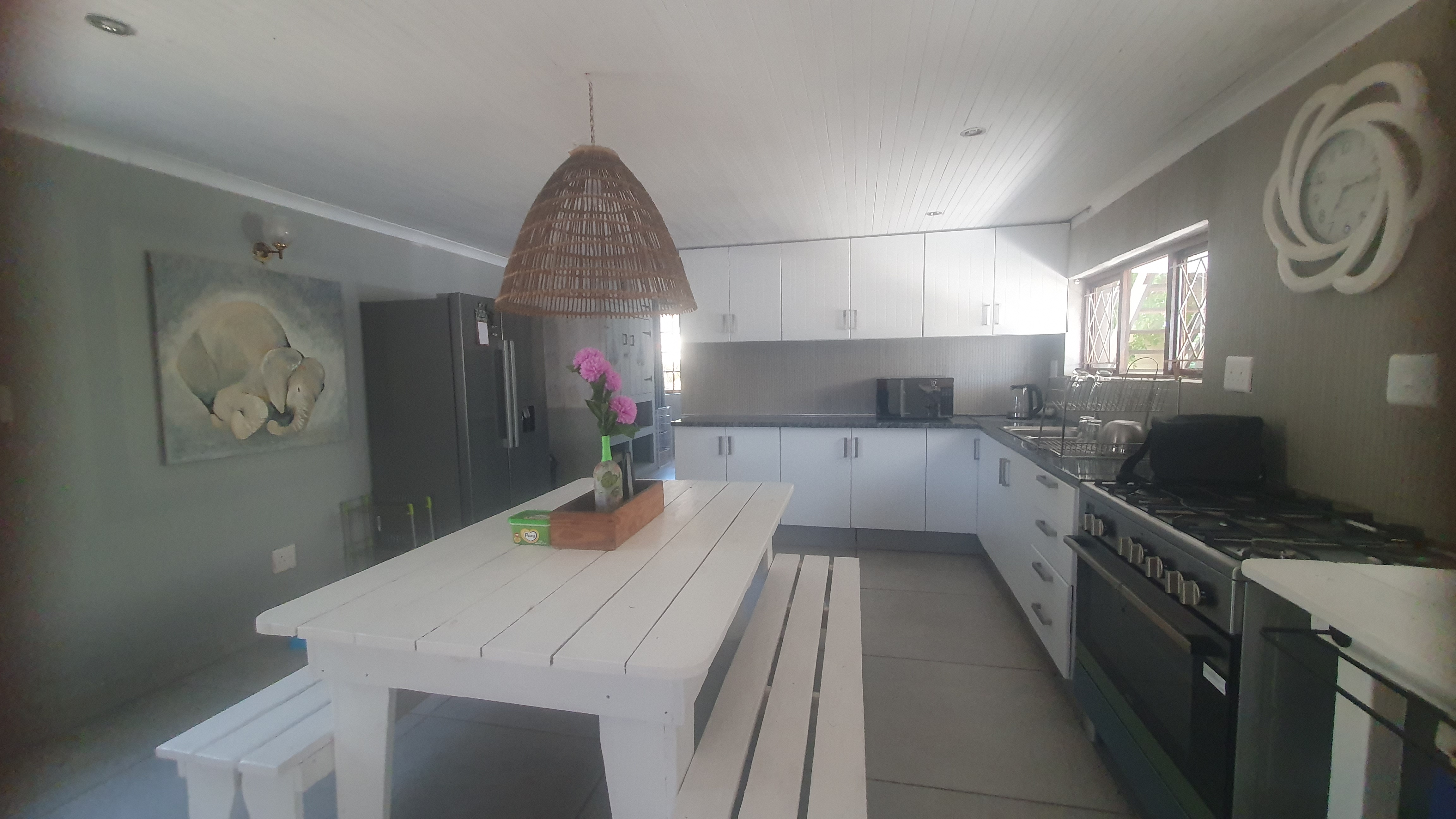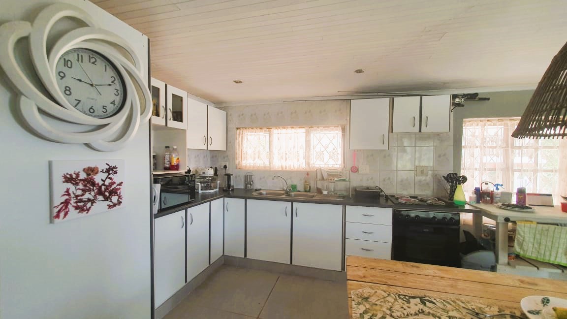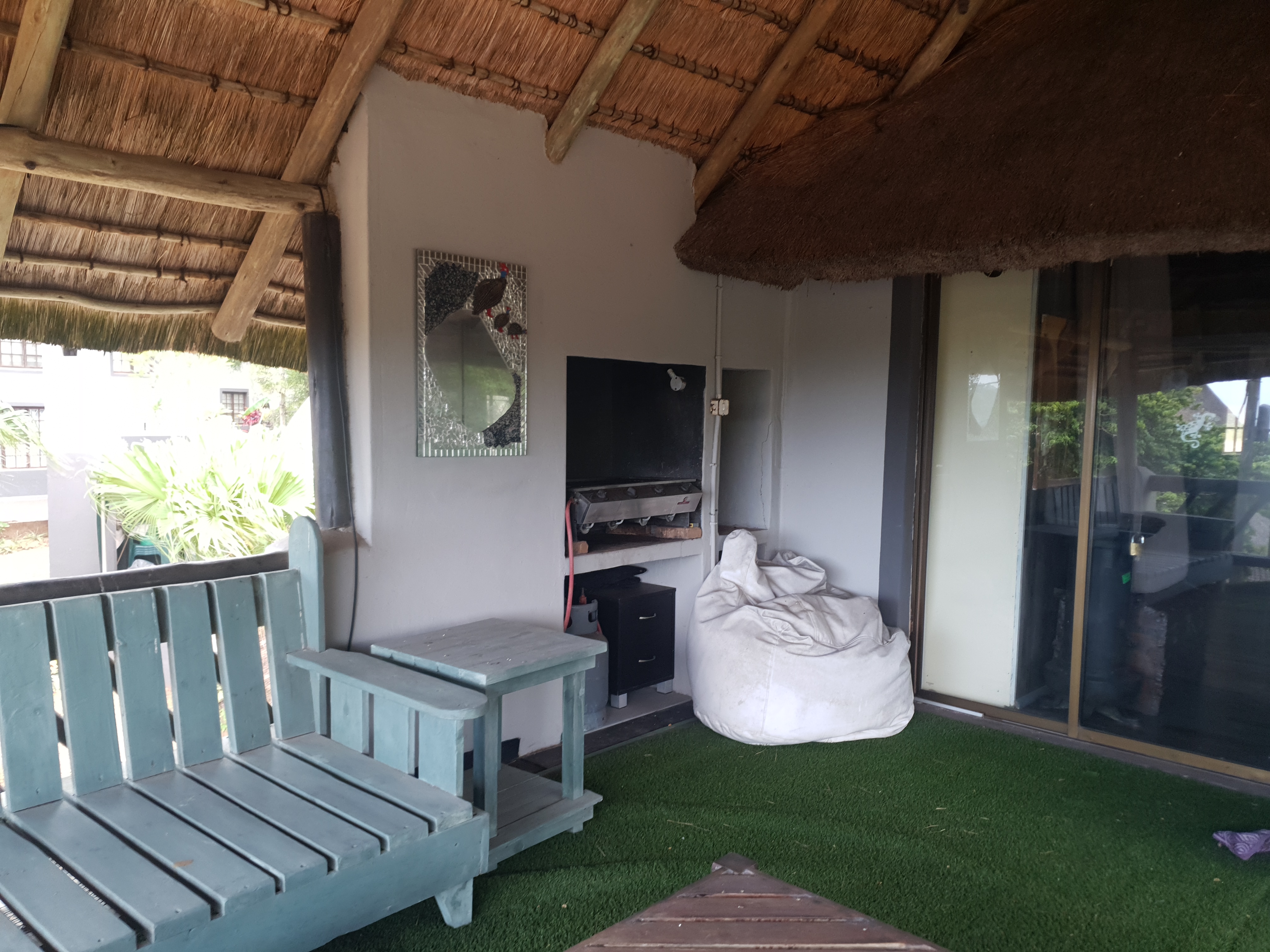 Spacious deck with Braai facilities, Living area and beautiful kitchen.